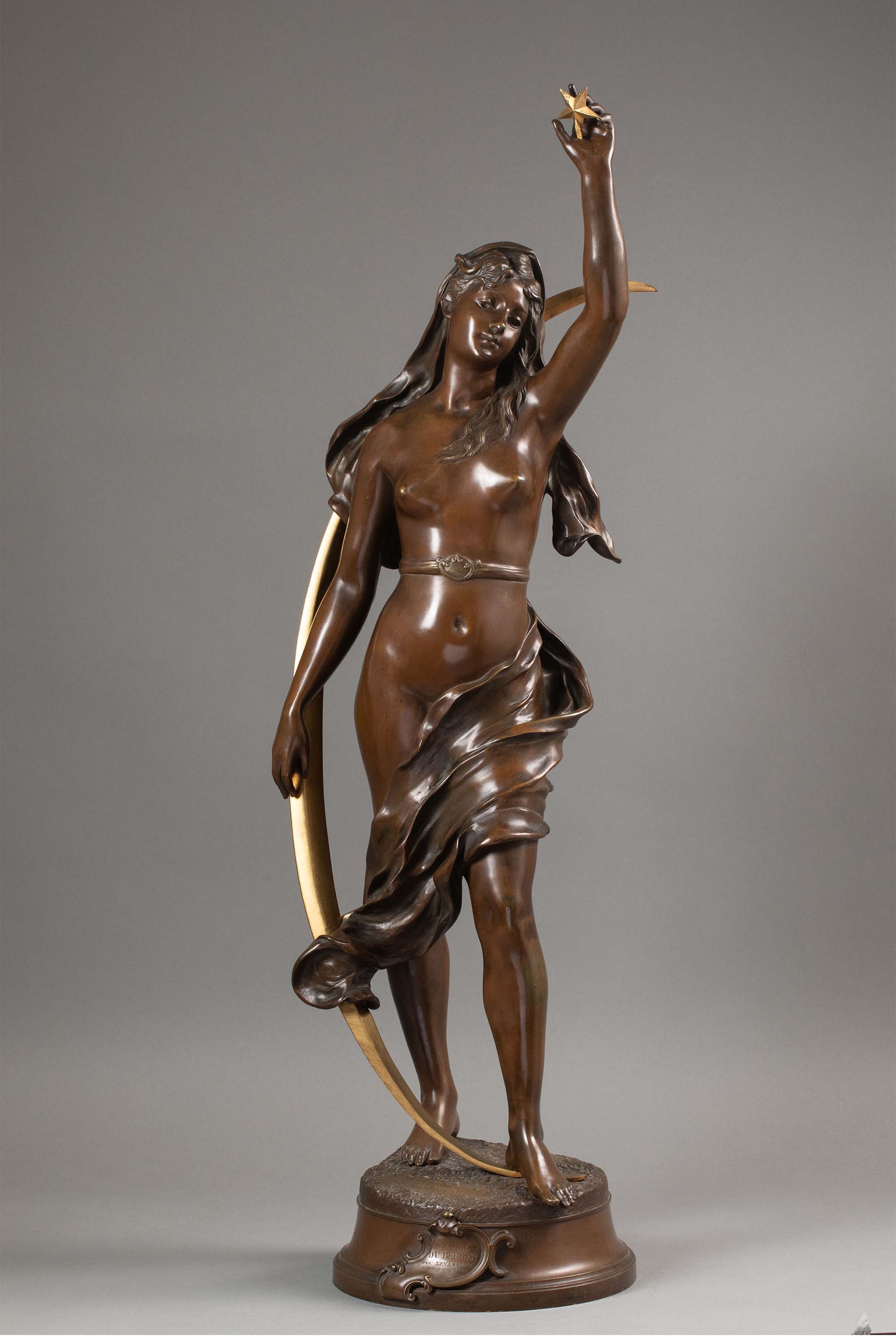 19世纪法国雕塑艺术家Henri Levasseur签名创作出品人物主题青铜鎏金雕塑作品《牧羊人之星》