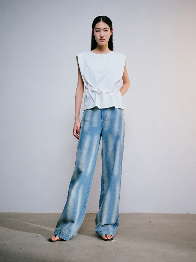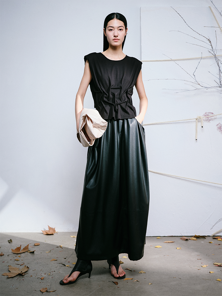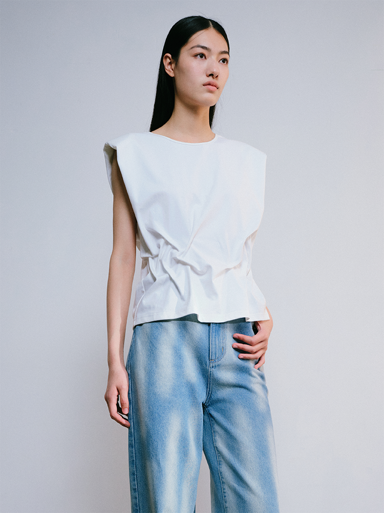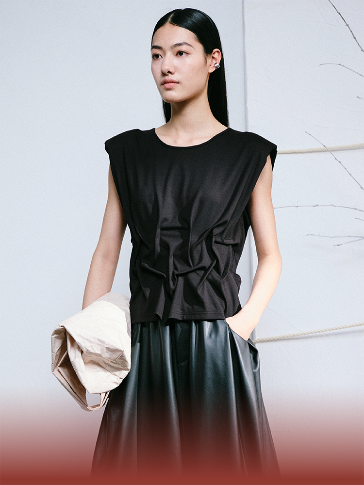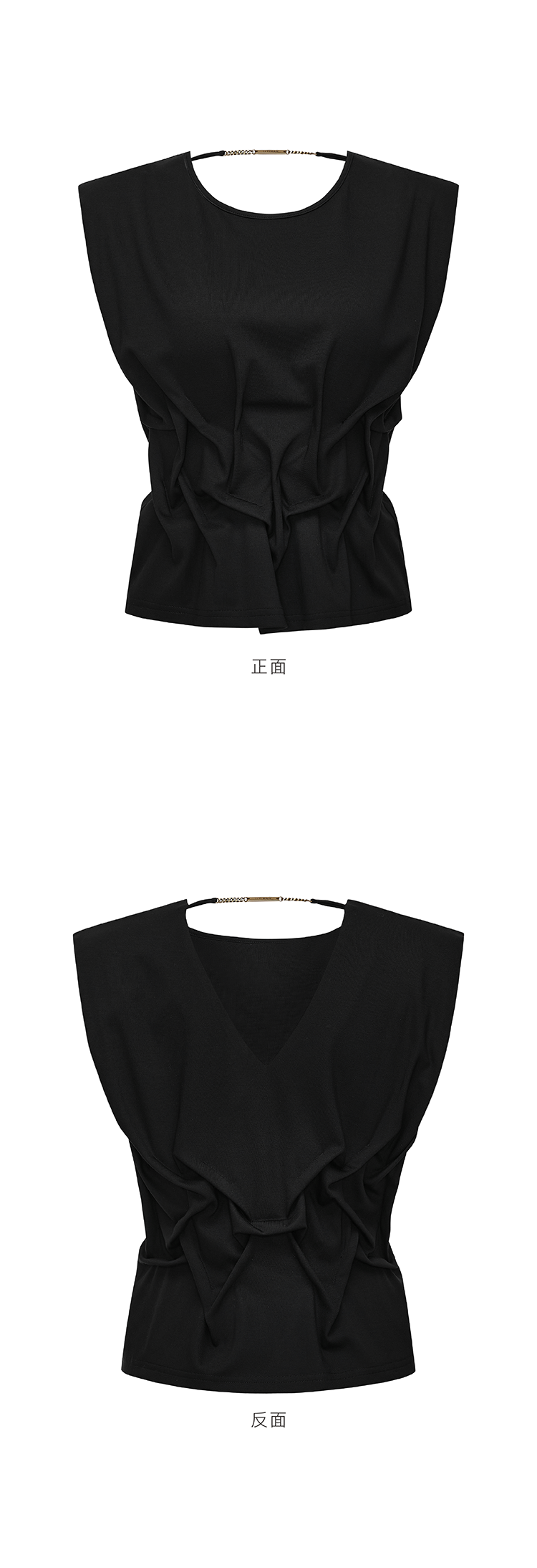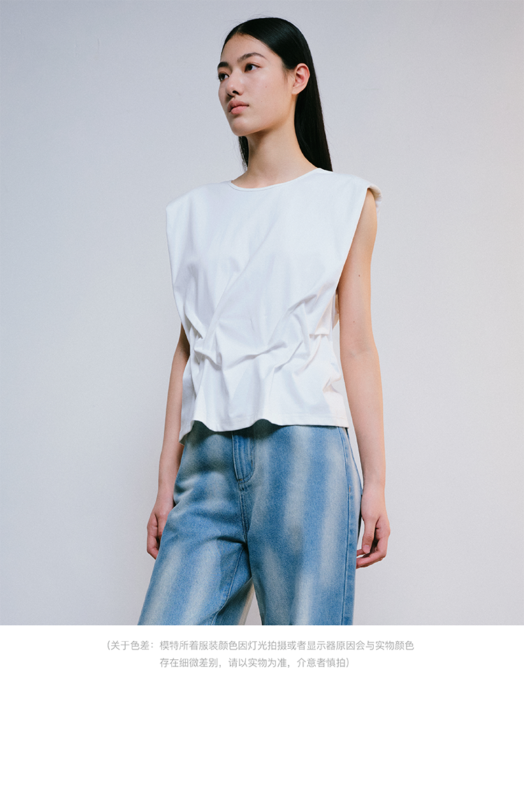LIYIHAN设计师品牌 2024春夏新款套头宽松百搭褶皱无袖背心上衣
