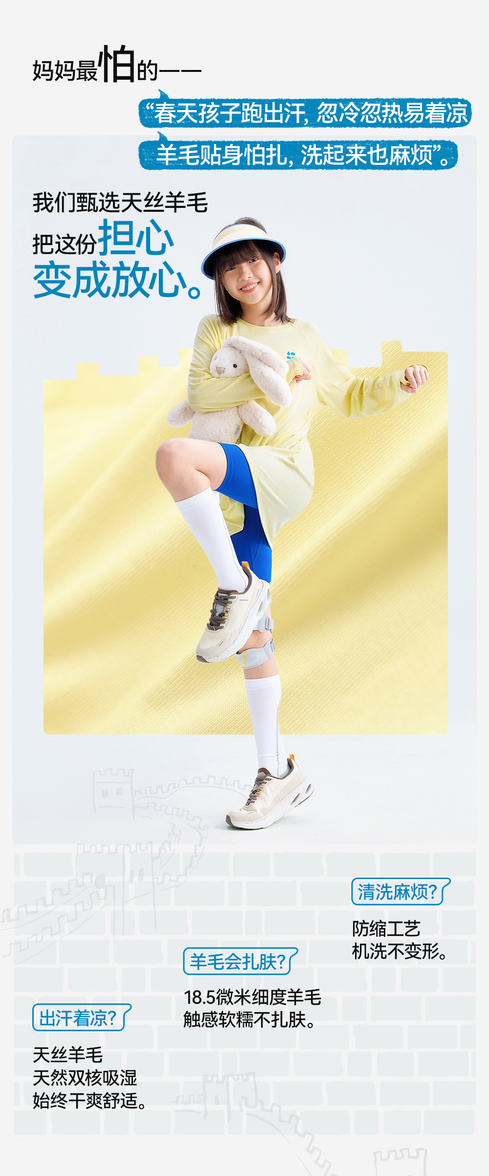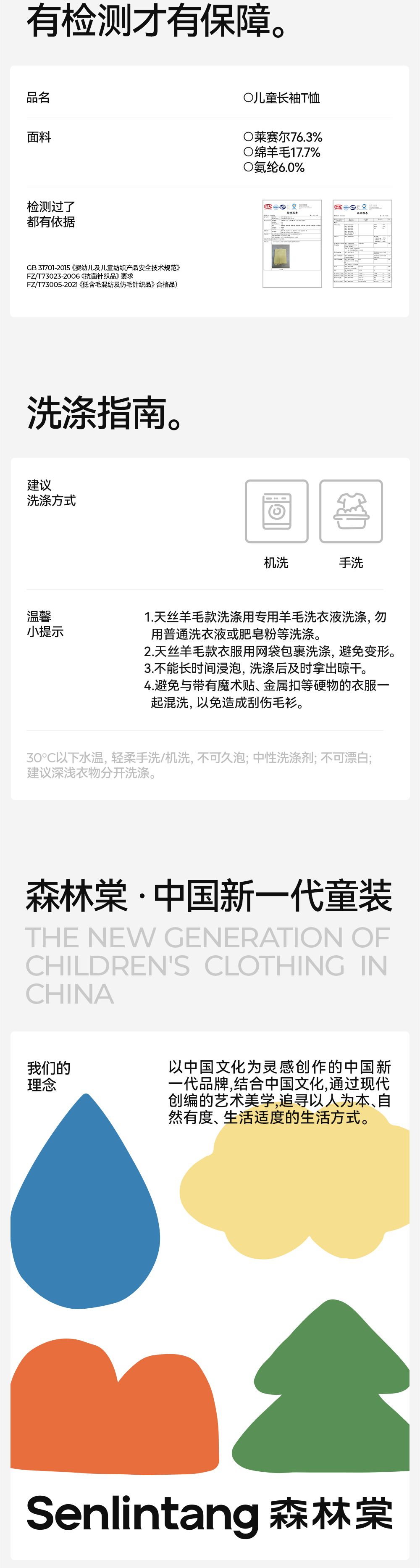 【天丝羊毛长袖T恤】森林棠26春山下羊儿童运动不闷汗顺滑宽松T恤20261092【HZ】