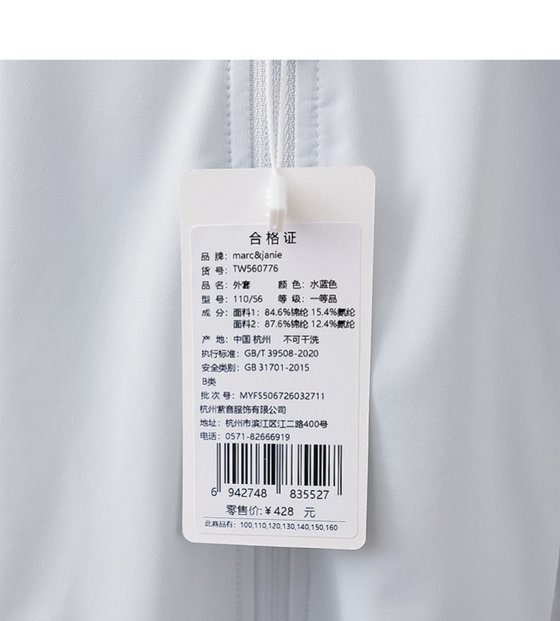 马克珍妮凉感透气女童网眼防晒衣2026年夏装新款560776