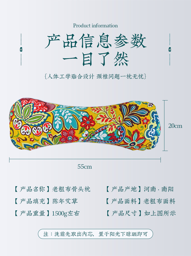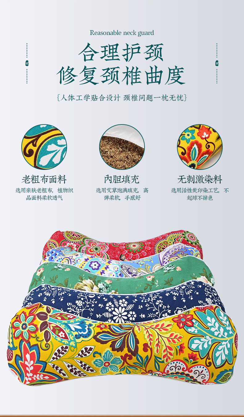 【助你享受安稳好睡眠!家用艾草枕头呵护肩颈】修复颈椎曲度,亲肤老粗布面料,舒适透气,高弹柔软手感好, 艾绒骨头枕按摩枕手工艾草颈椎枕肩颈枕粉丝专属器