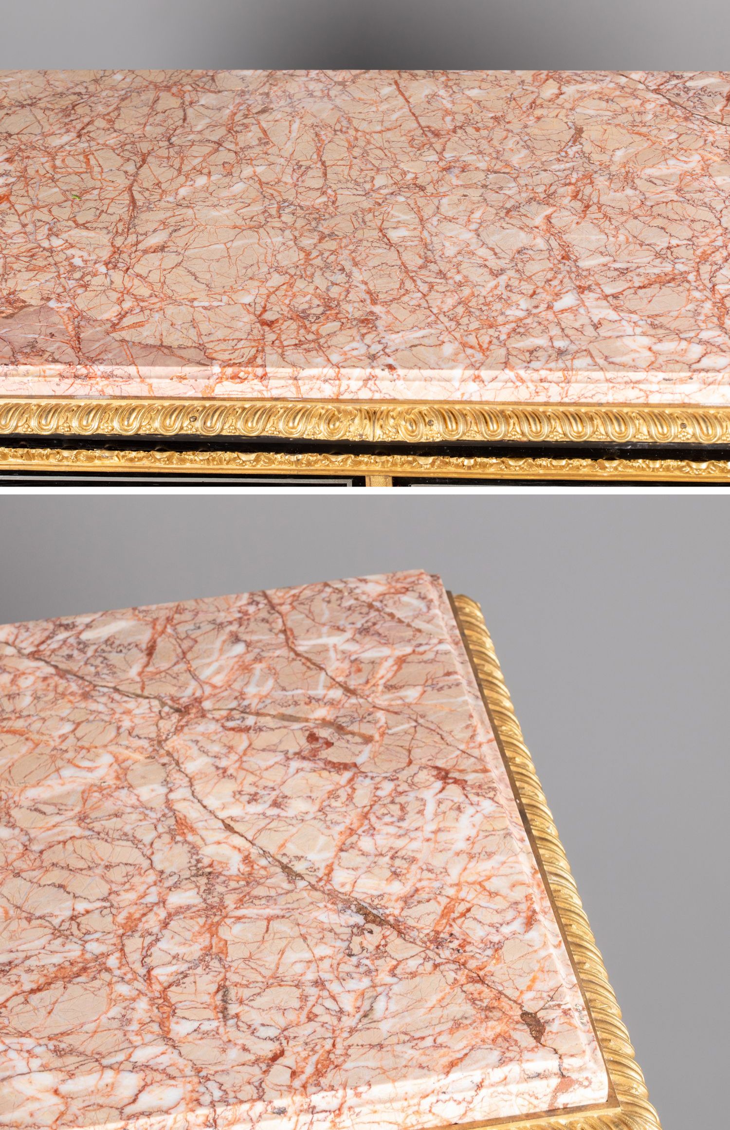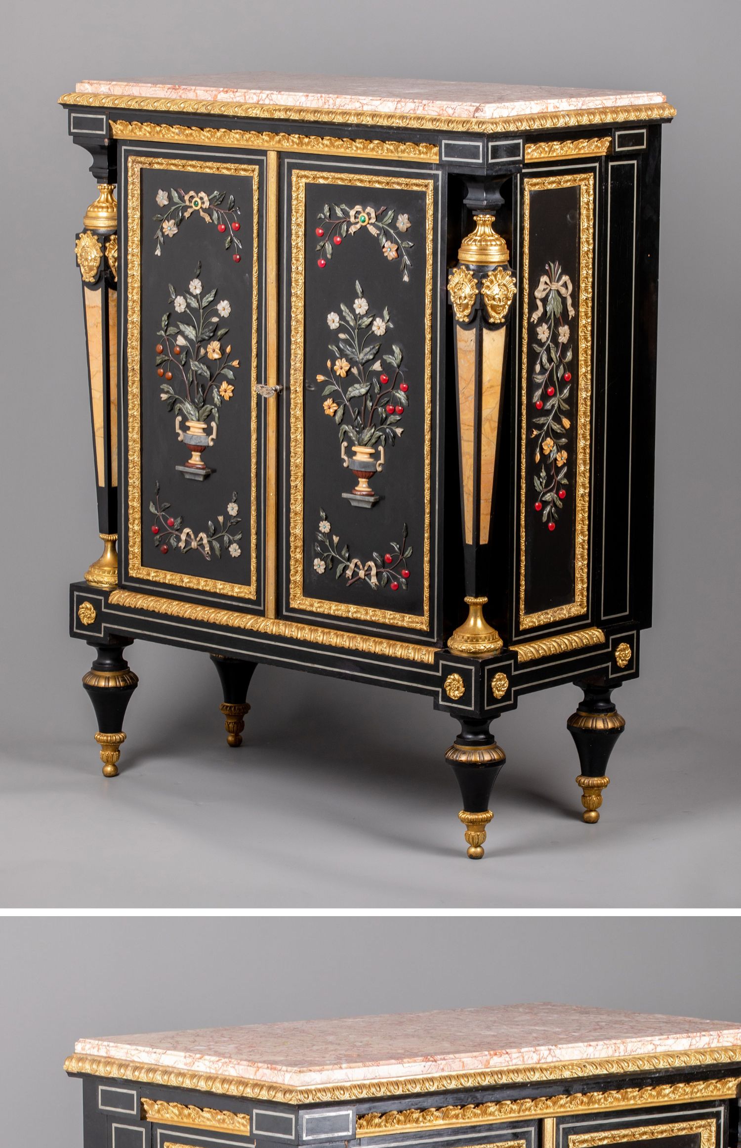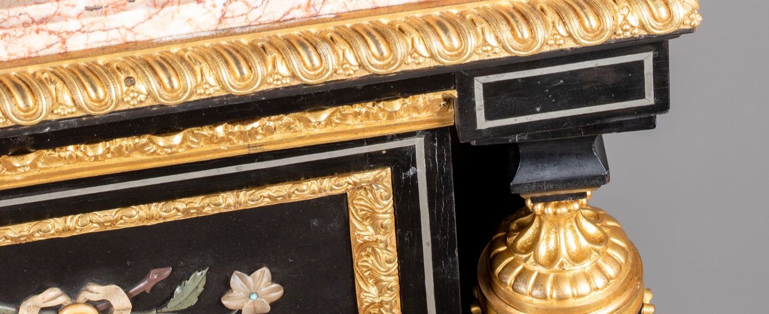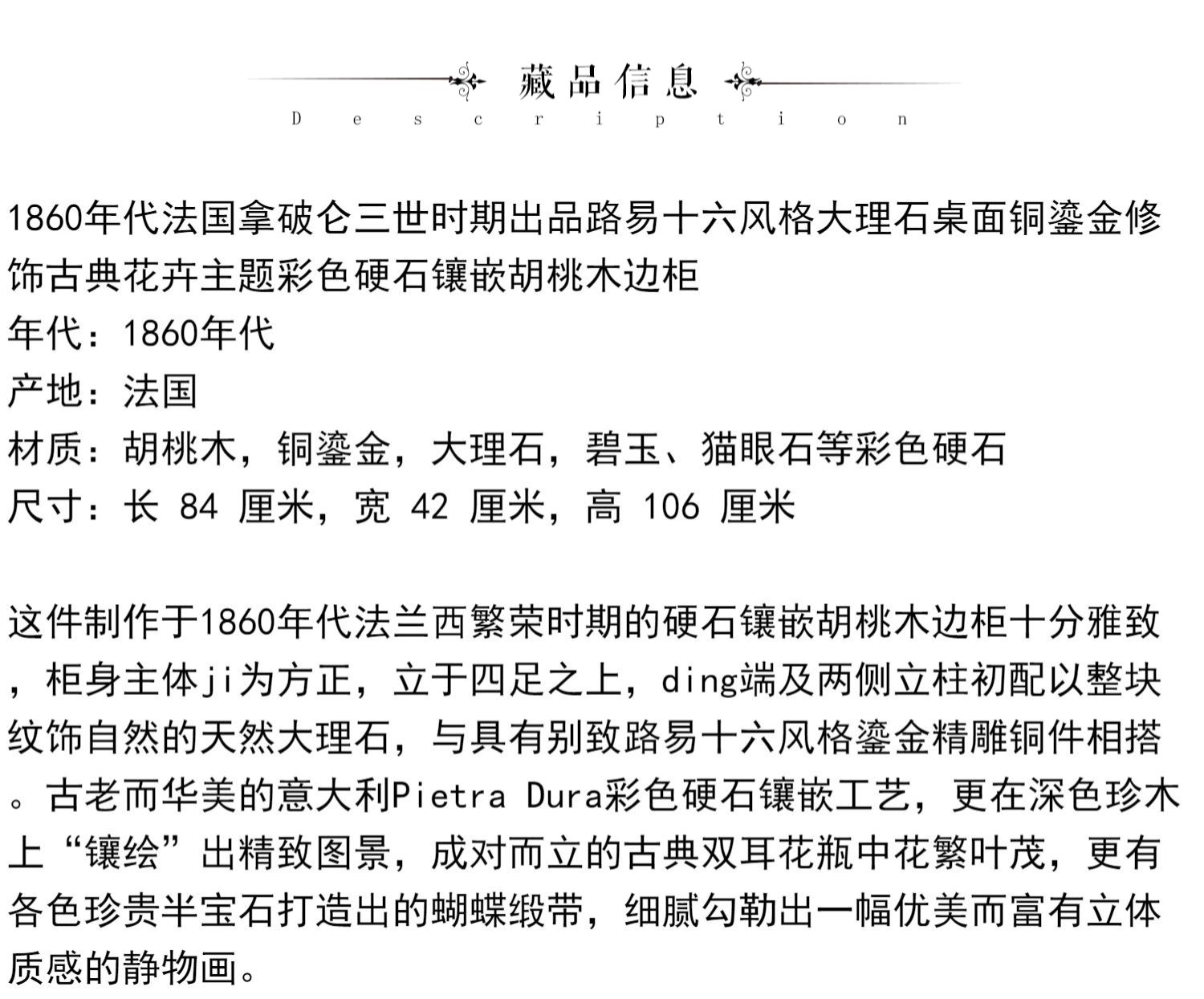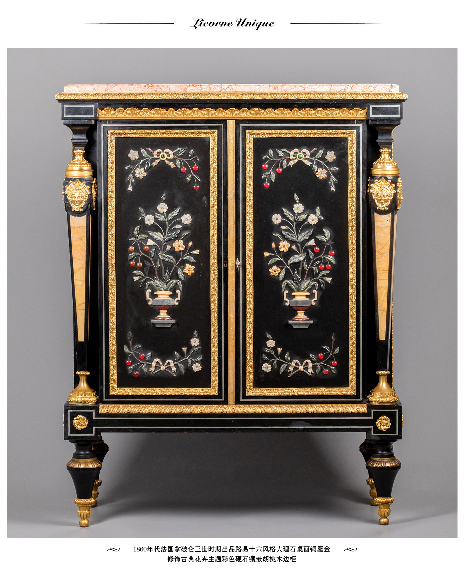 独角鹿西洋古董家具路易十六风大理石铜鎏金硬石镶嵌胡桃木边柜