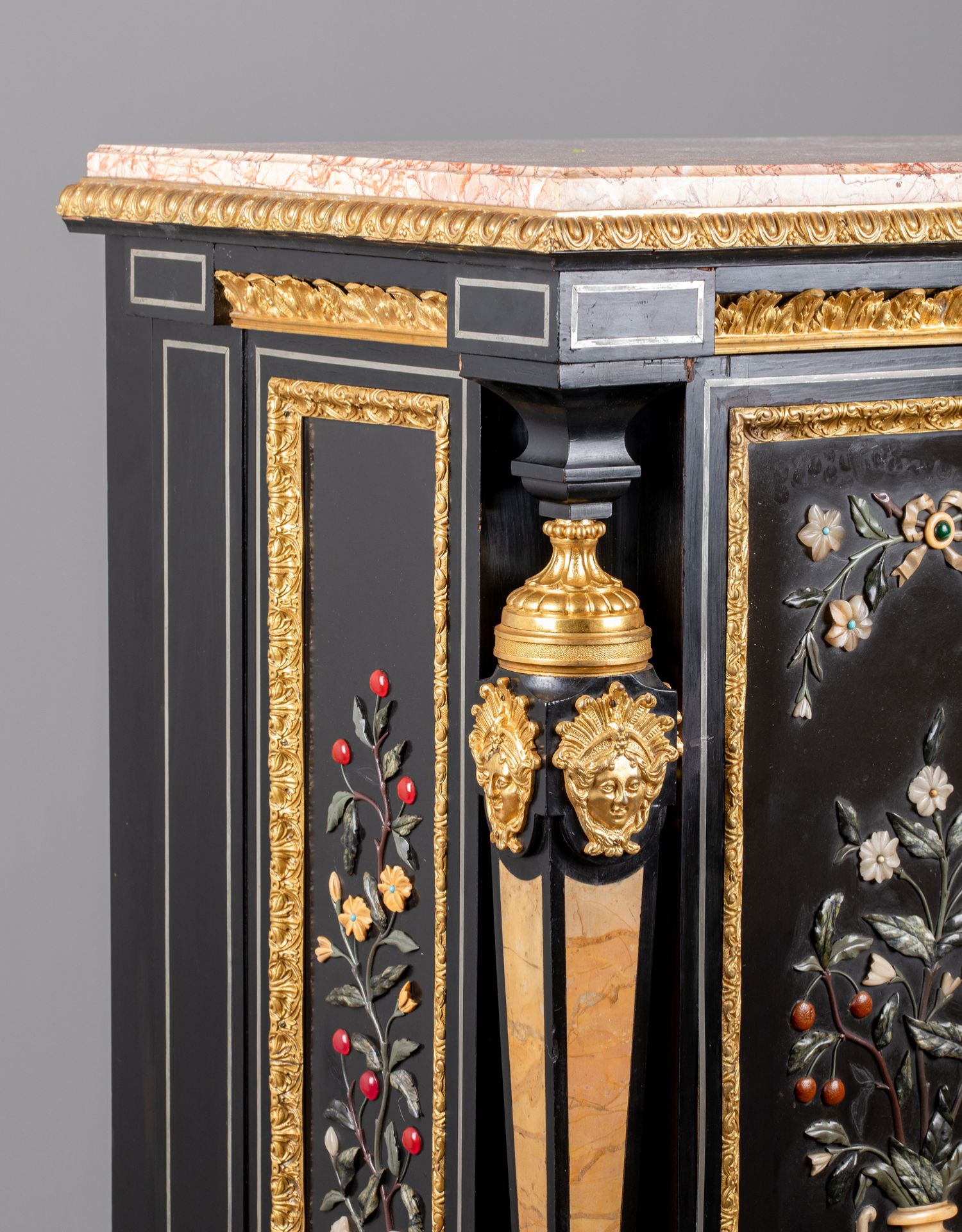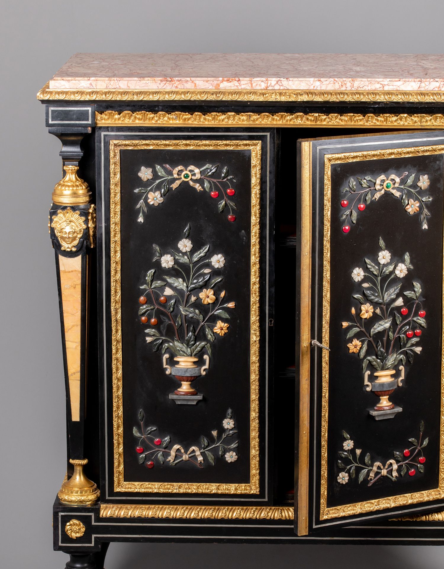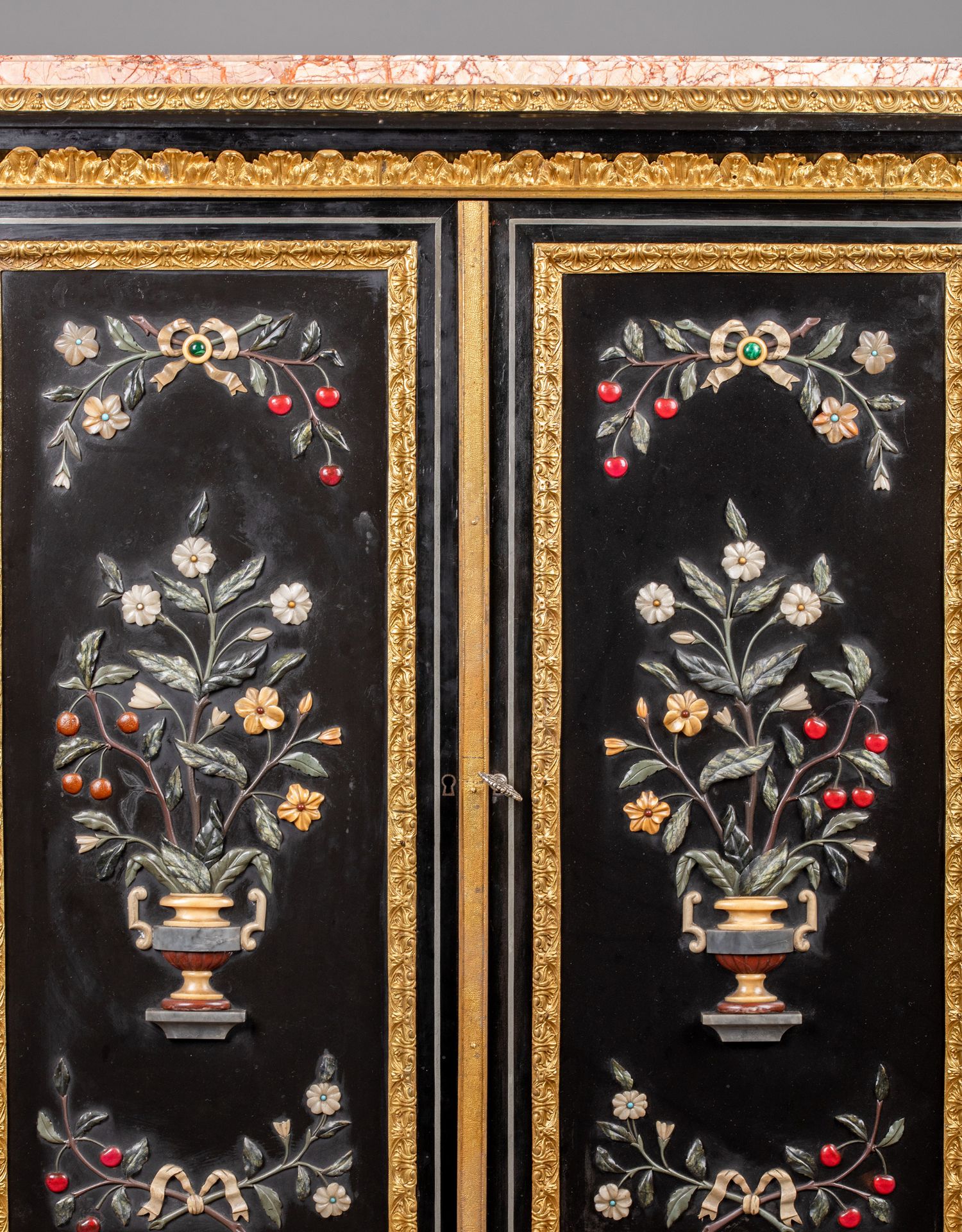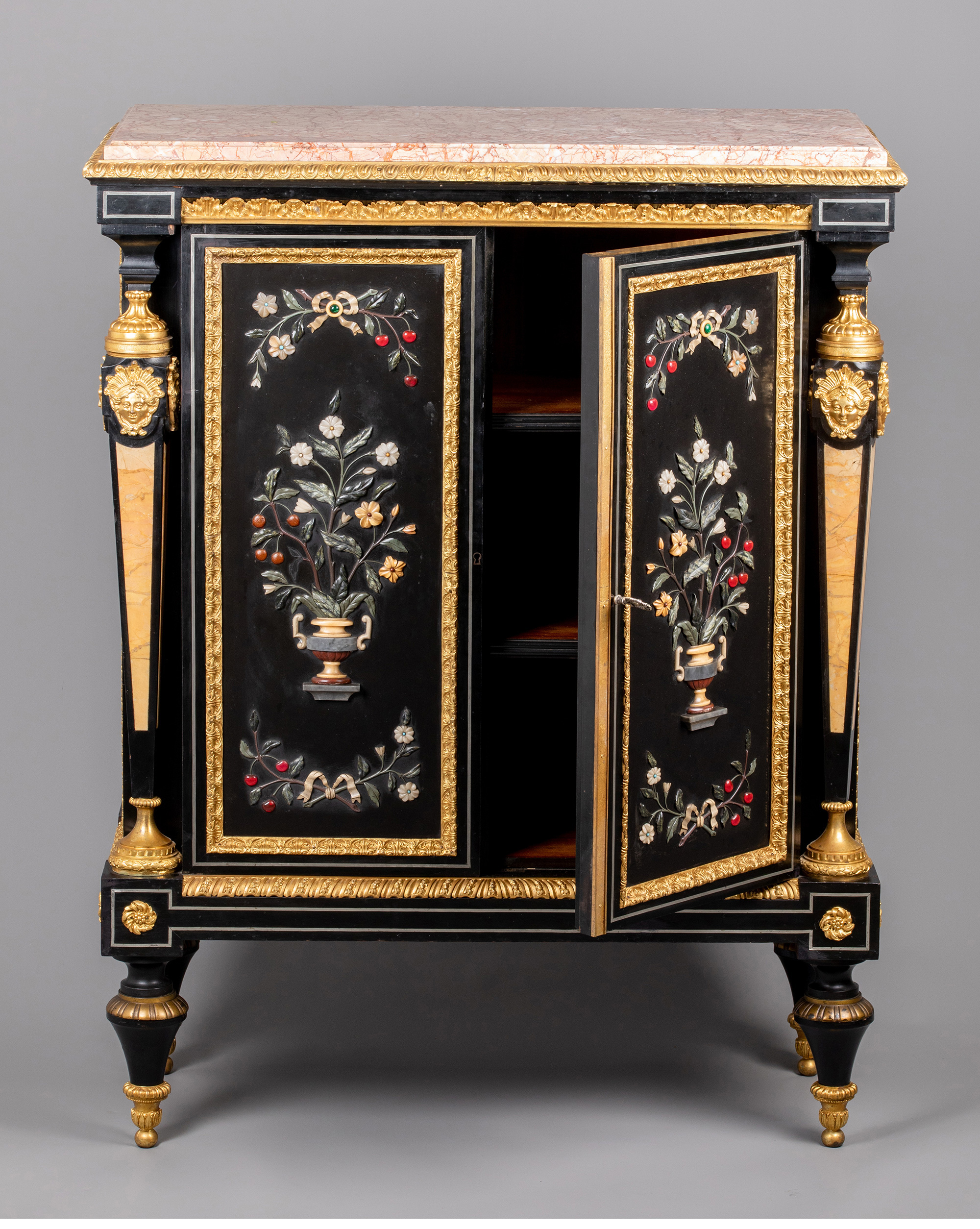 独角鹿西洋古董家具路易十六风大理石铜鎏金硬石镶嵌胡桃木边柜