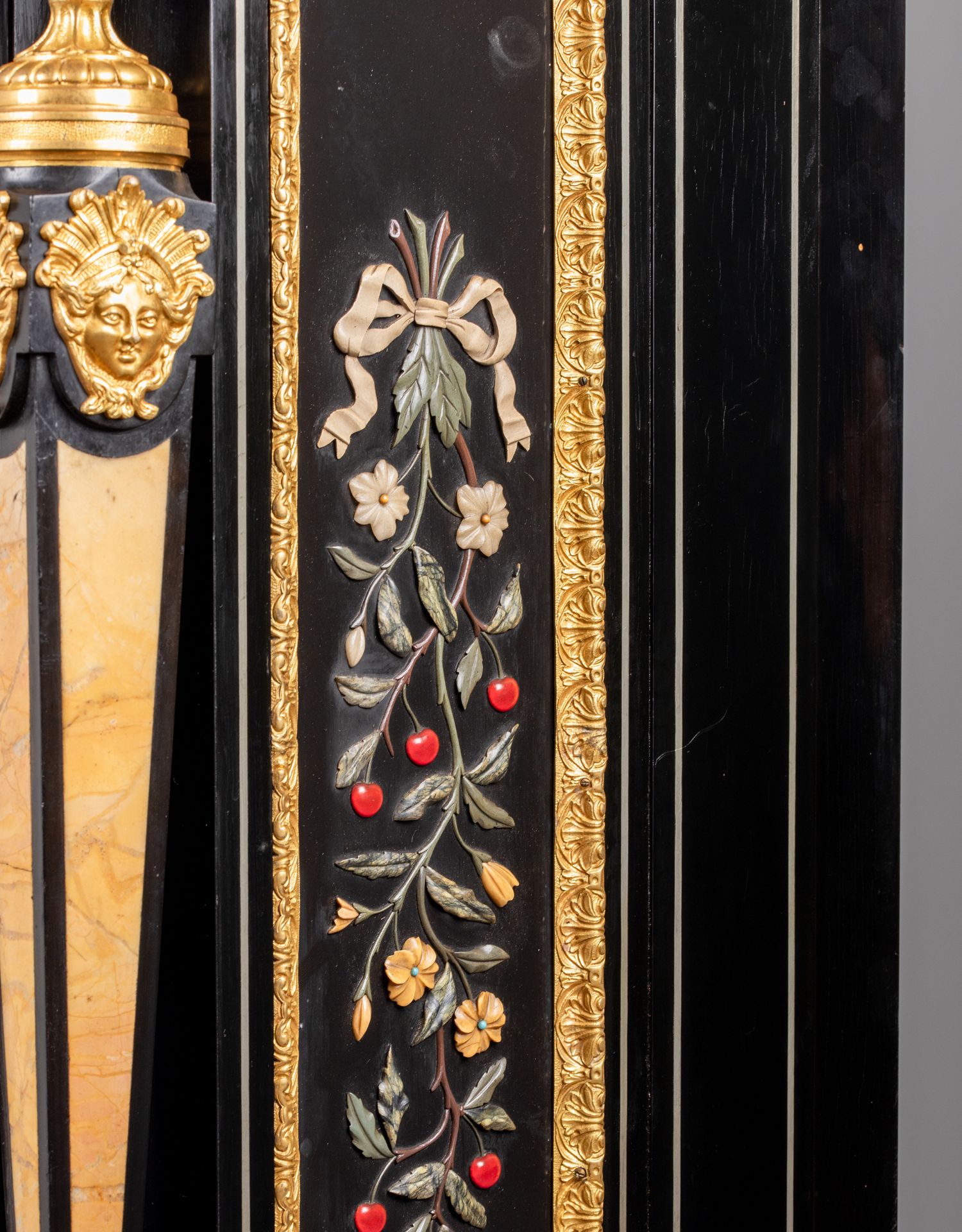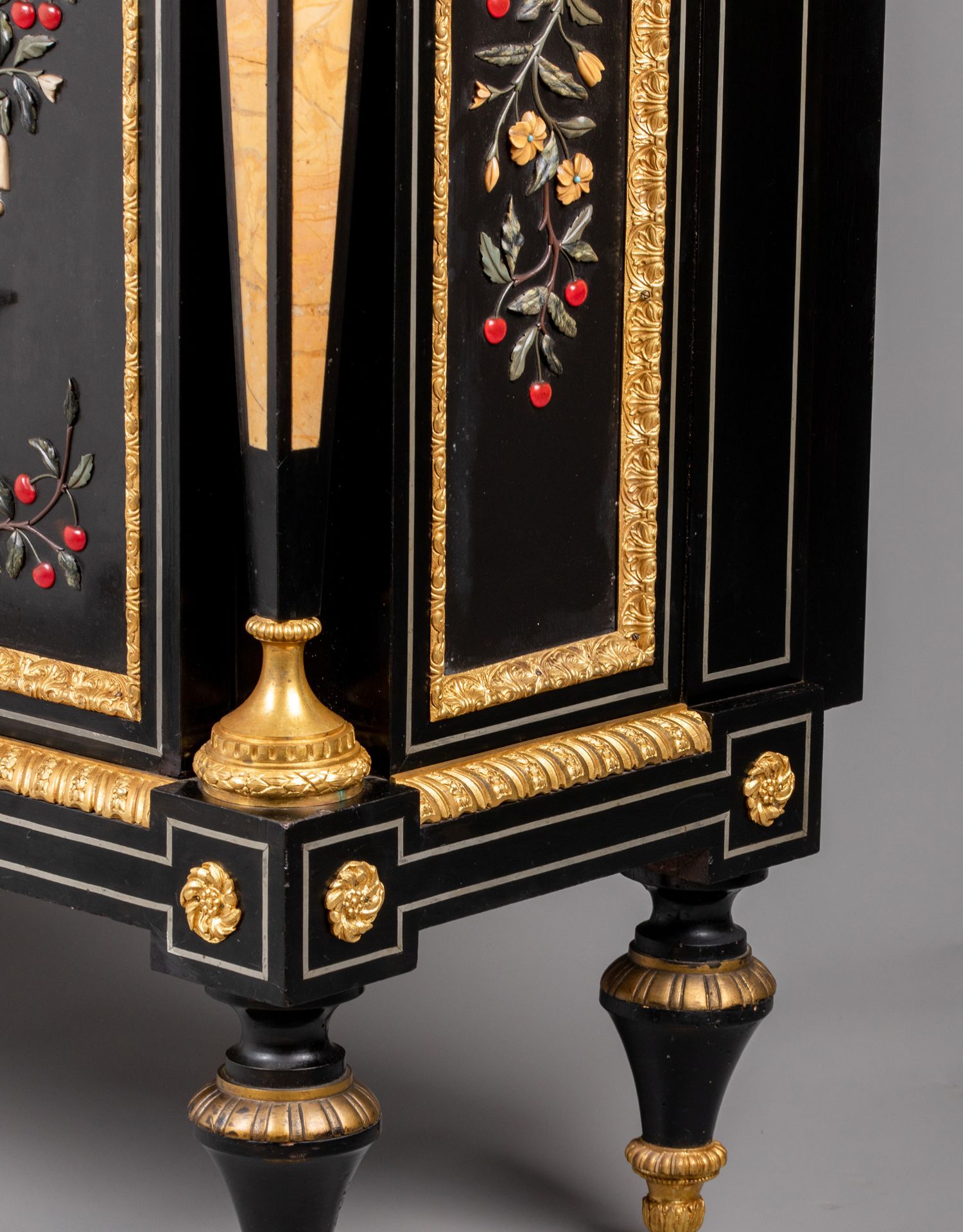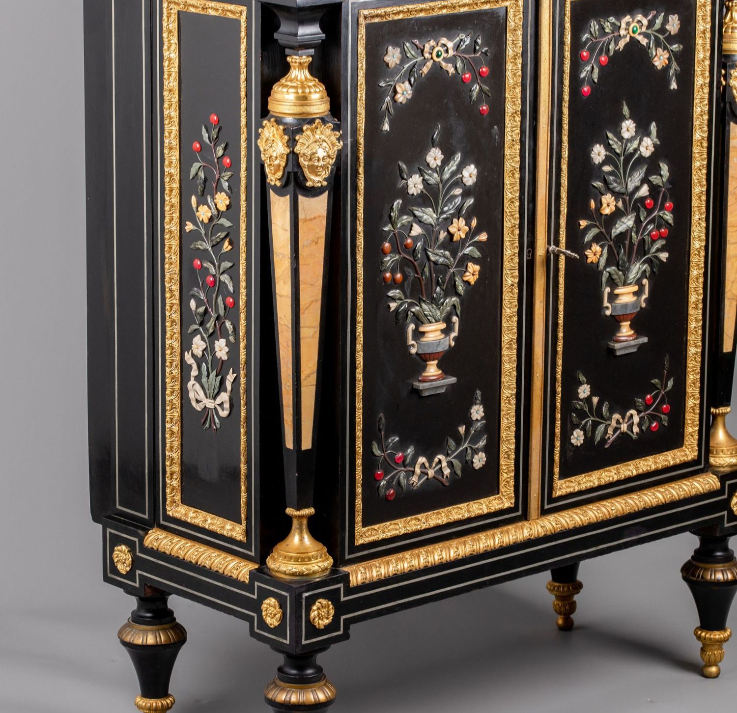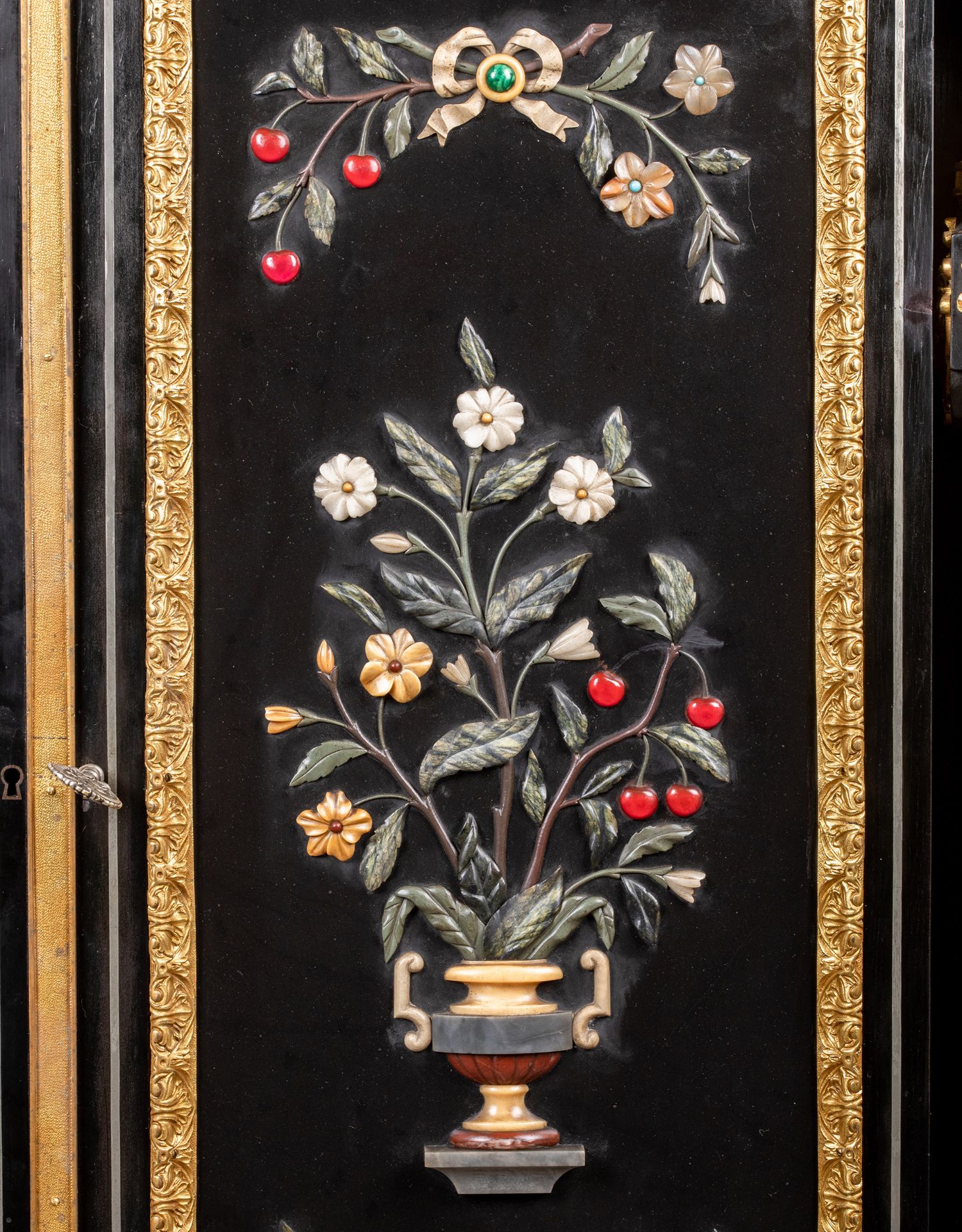 独角鹿西洋古董家具路易十六风大理石铜鎏金硬石镶嵌胡桃木边柜