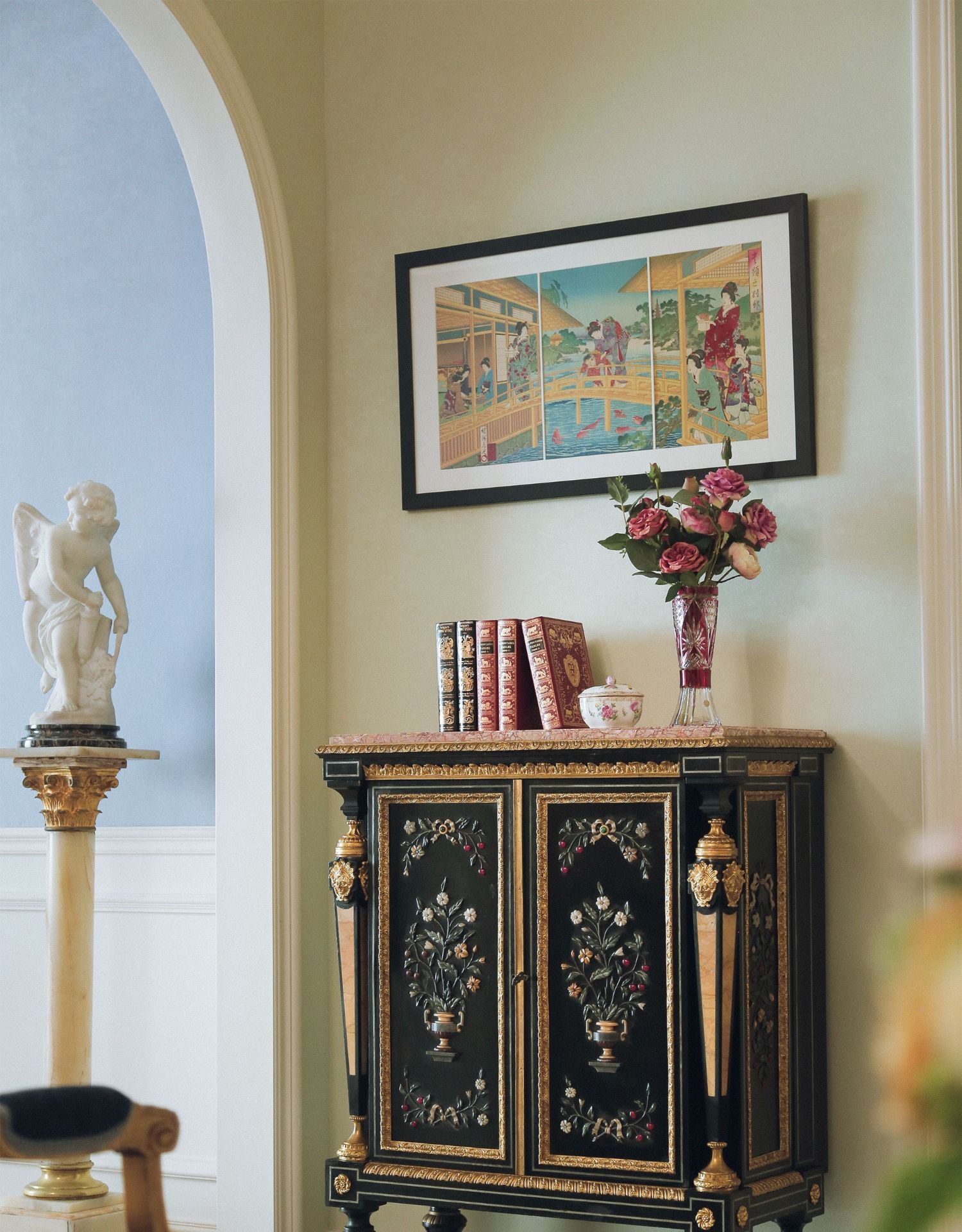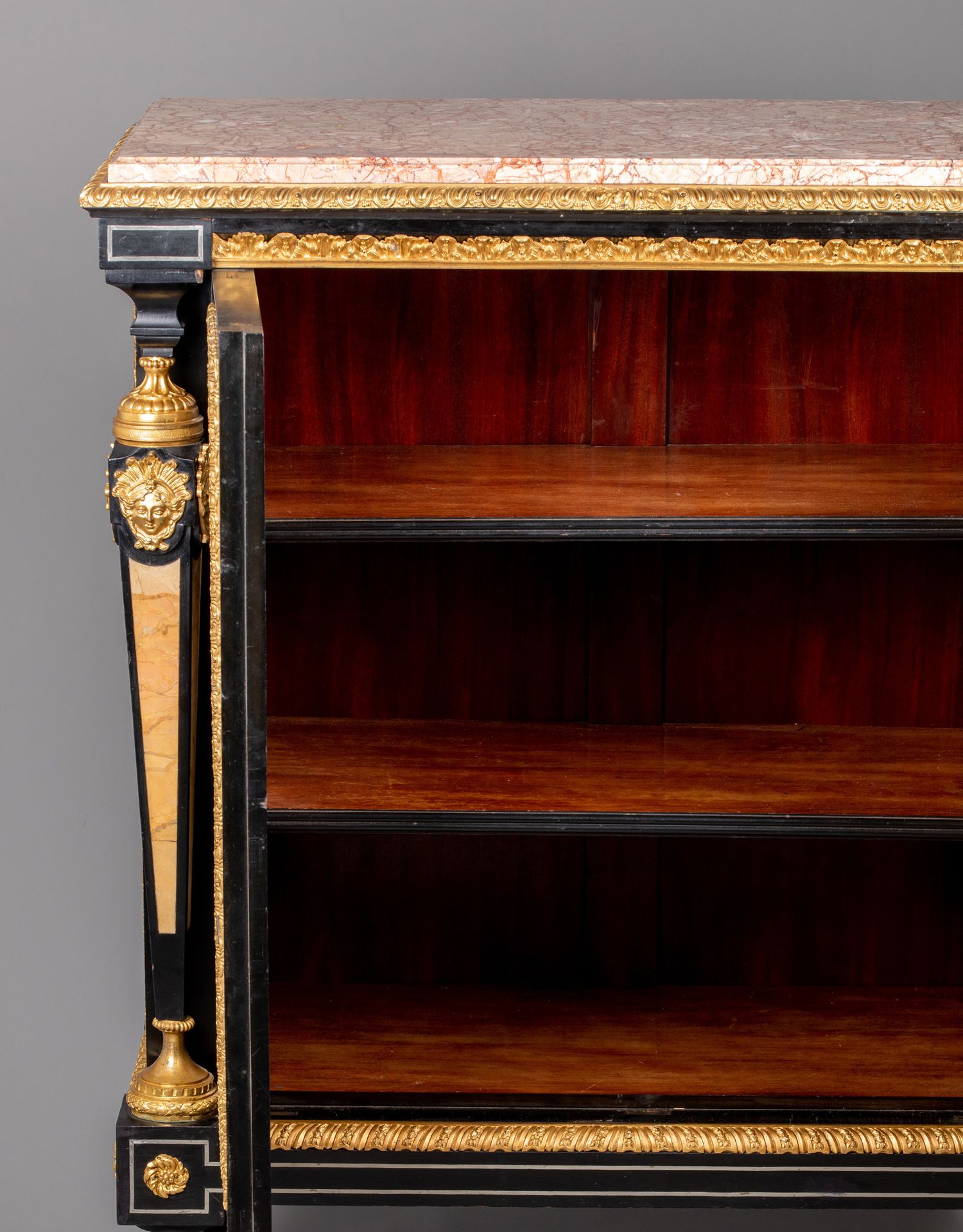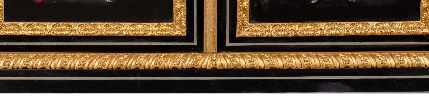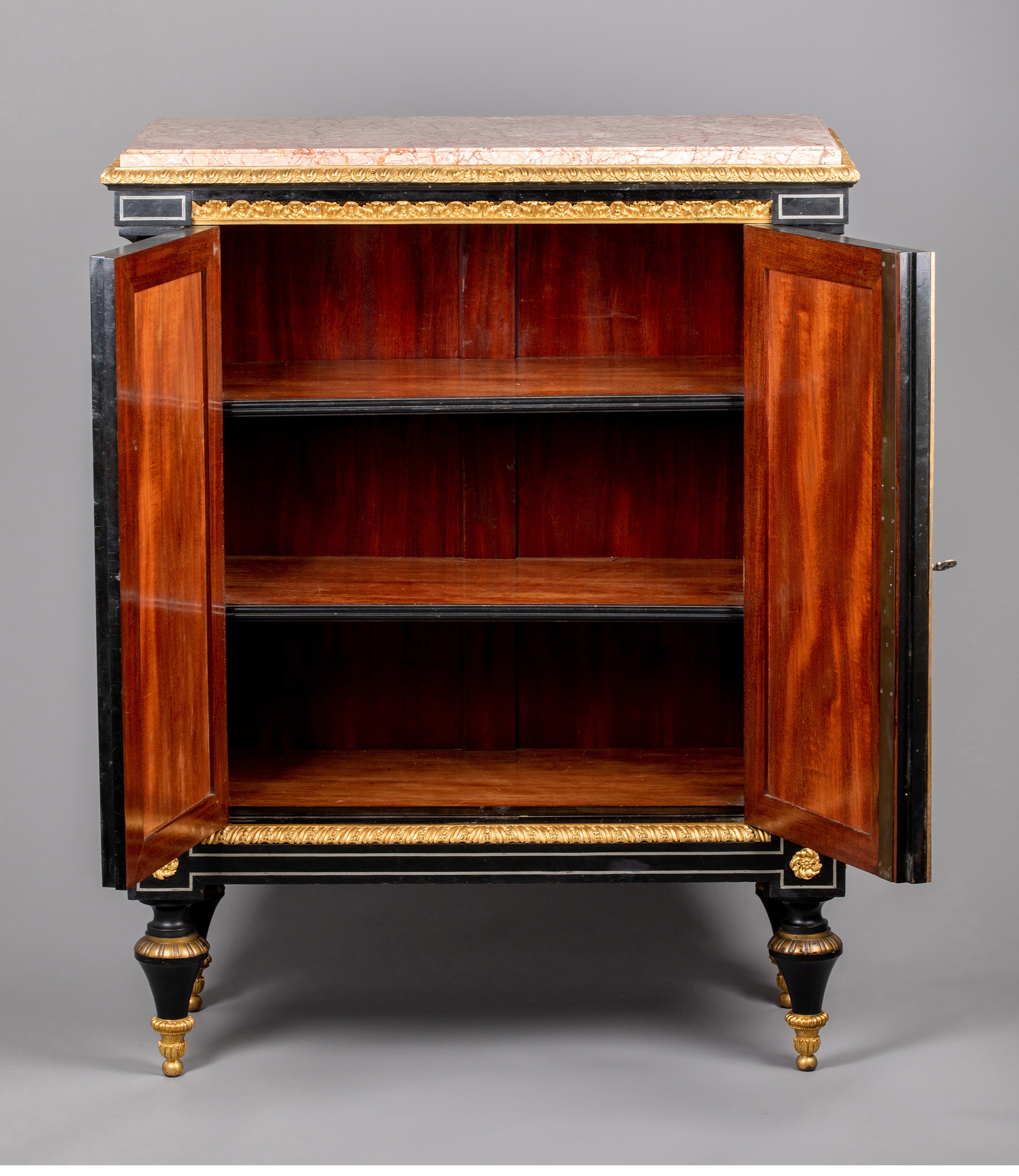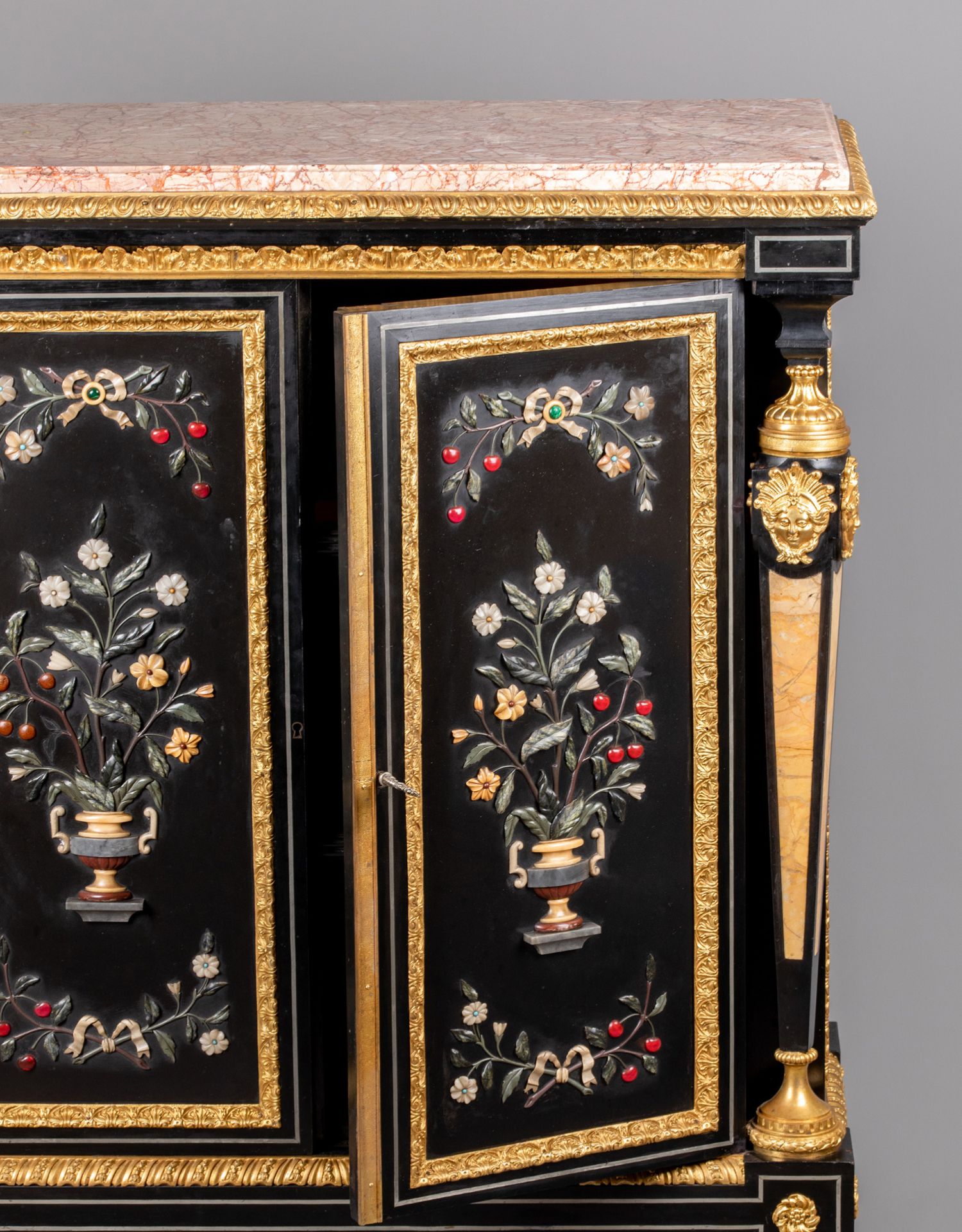 独角鹿西洋古董家具路易十六风大理石铜鎏金硬石镶嵌胡桃木边柜