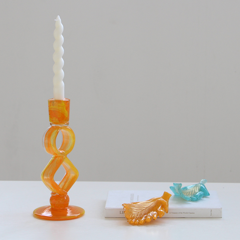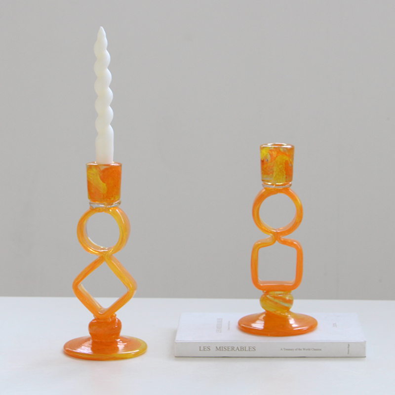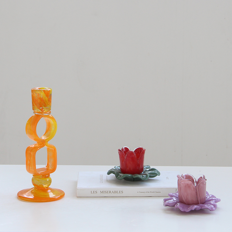 北欧ins风彩色玻璃烛台网红餐厅创意烛台摆件简约婚庆烛台装饰品