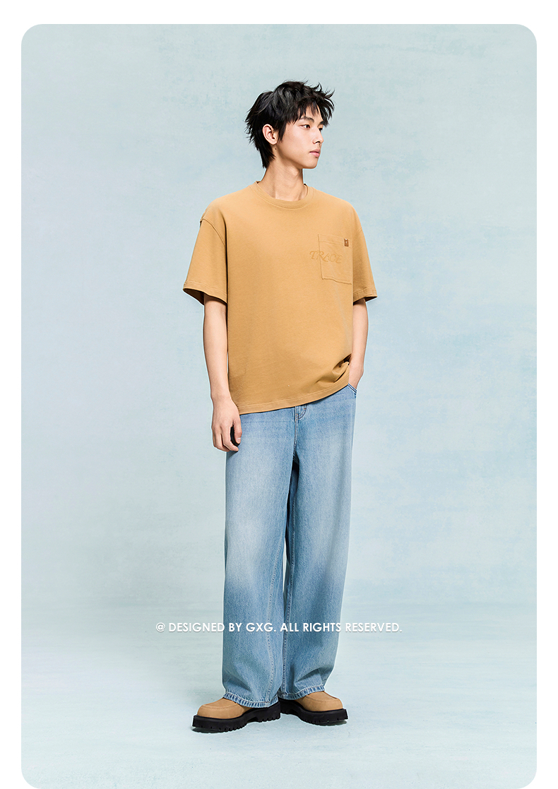 GXG男装 圆领T恤胸前口袋上衣短袖针织 2025年夏季热卖