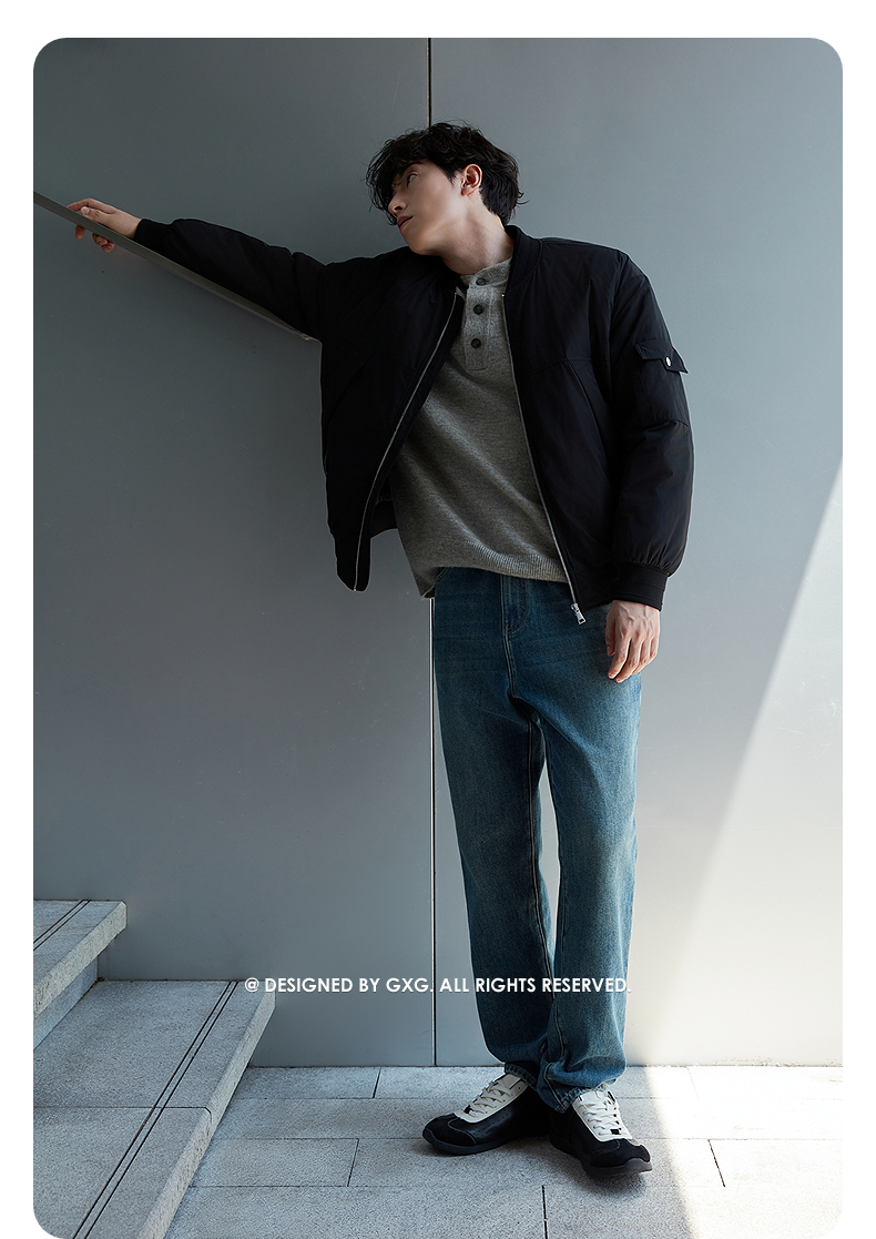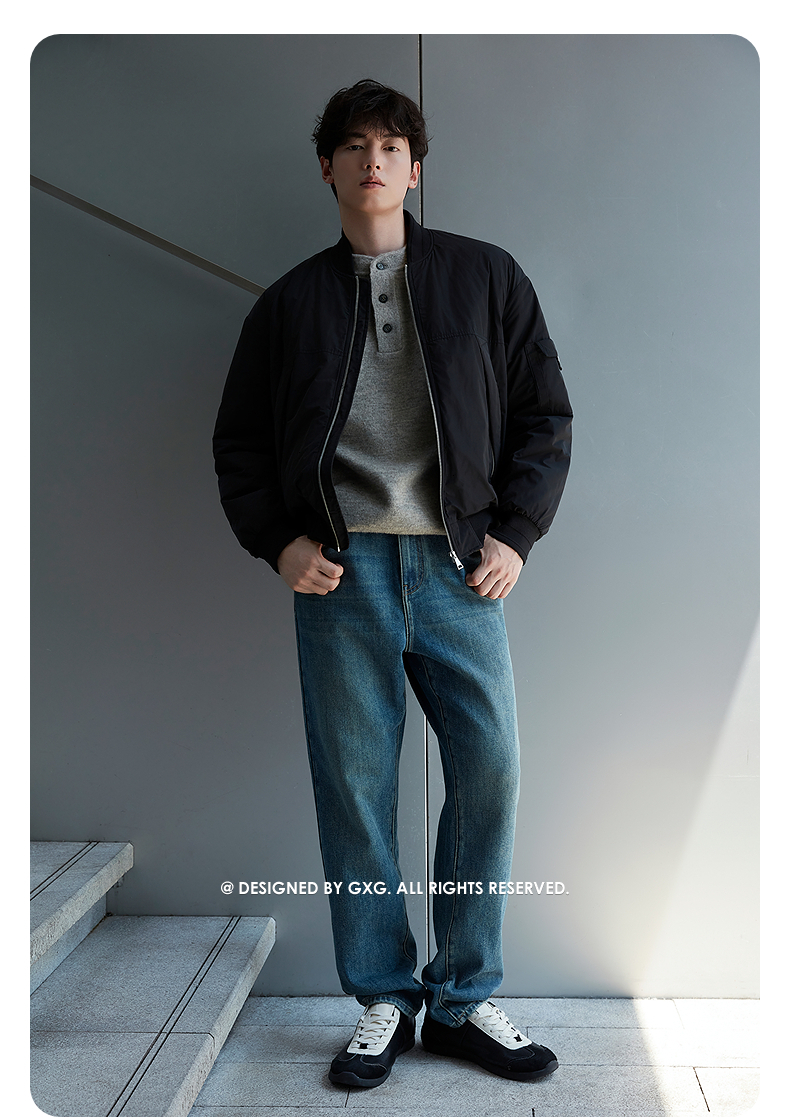 GXG男装 黑色经典大口袋棒球领飞行员棉服夹克外套 25年冬季热卖
