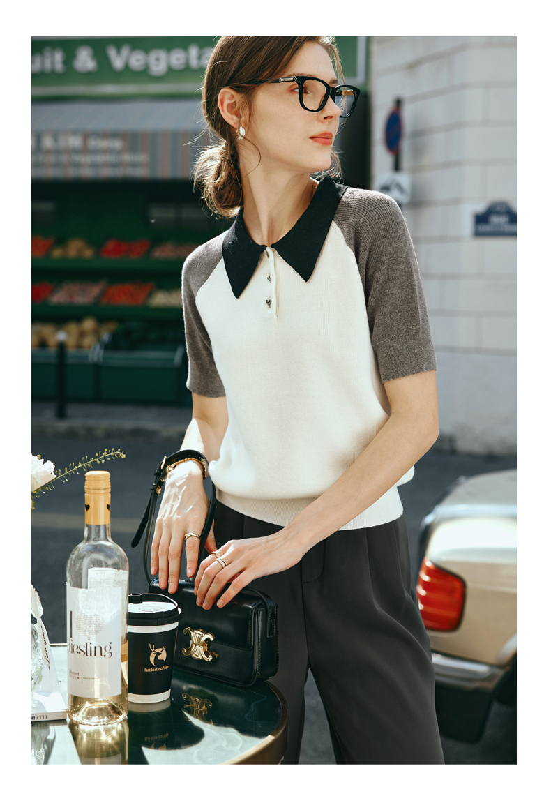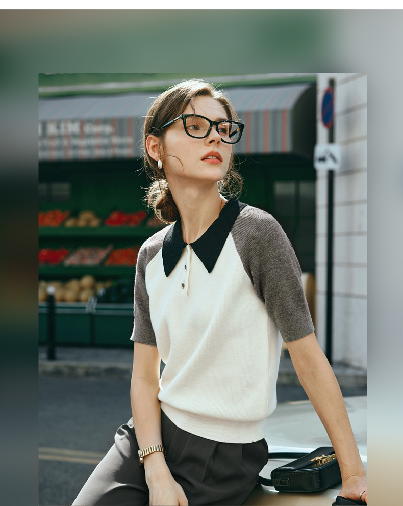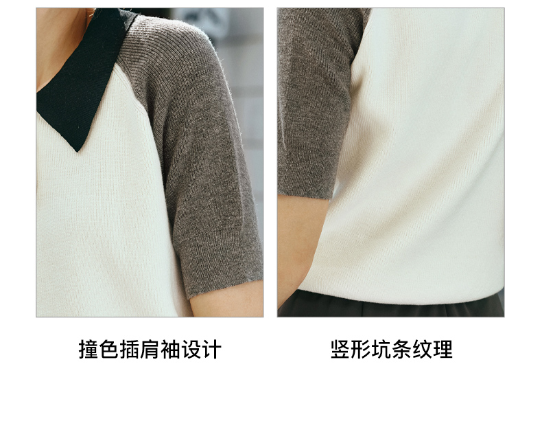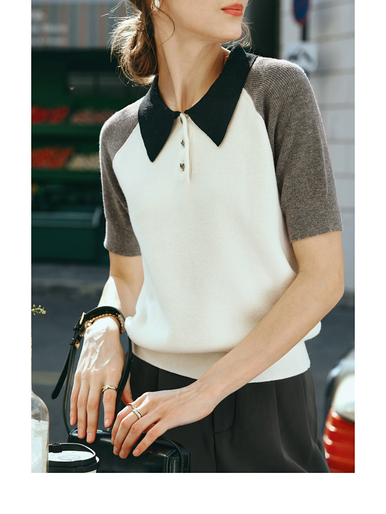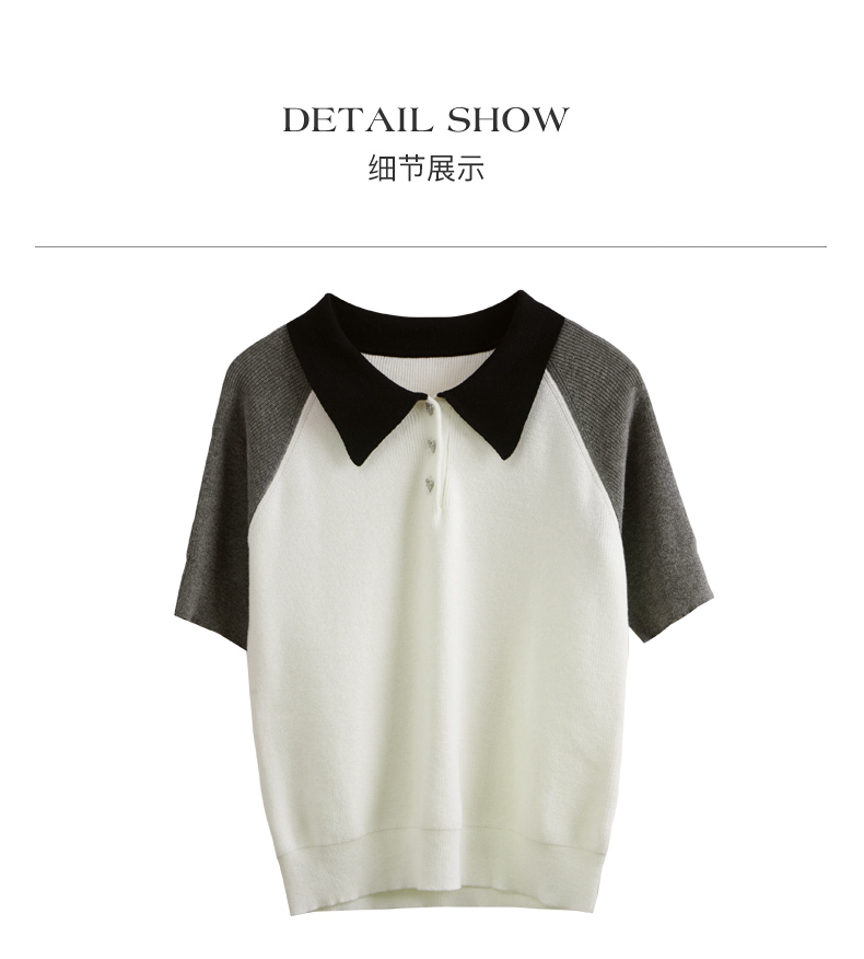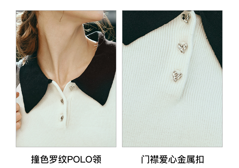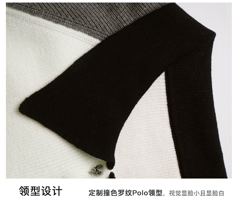 OLrain欧芮儿POLO领针织衫女早春2024年新款时尚简约拼接上衣