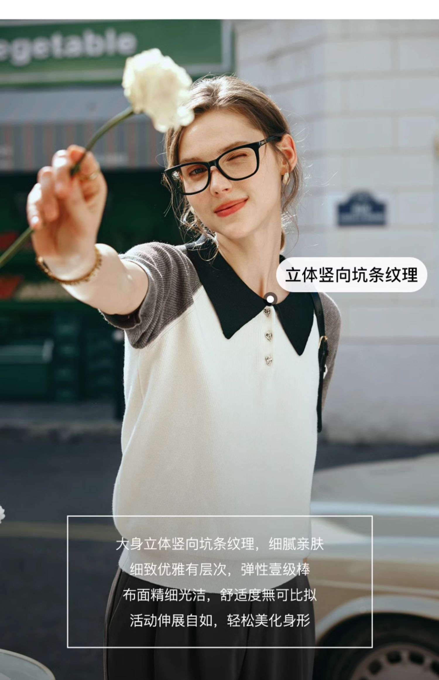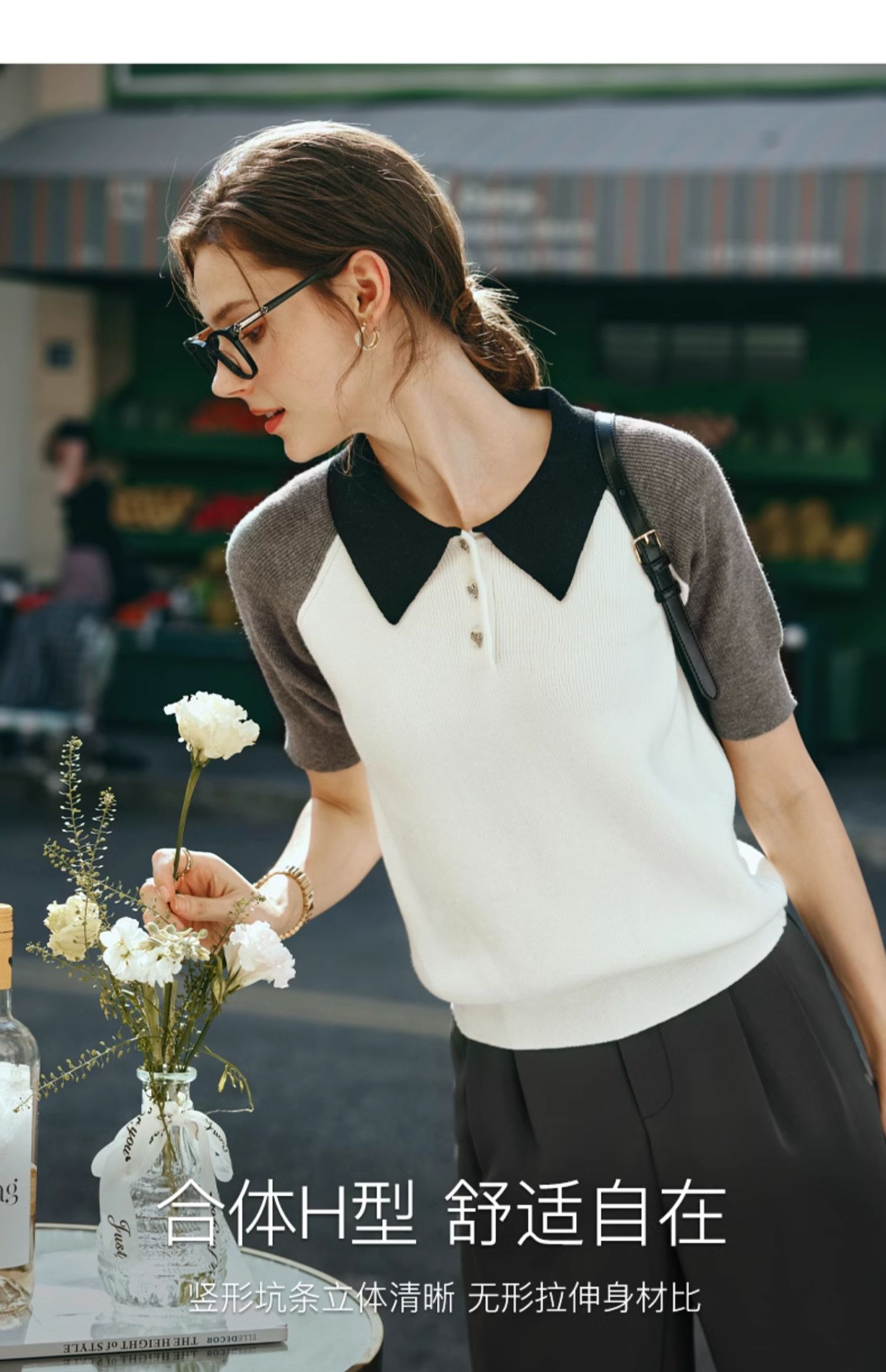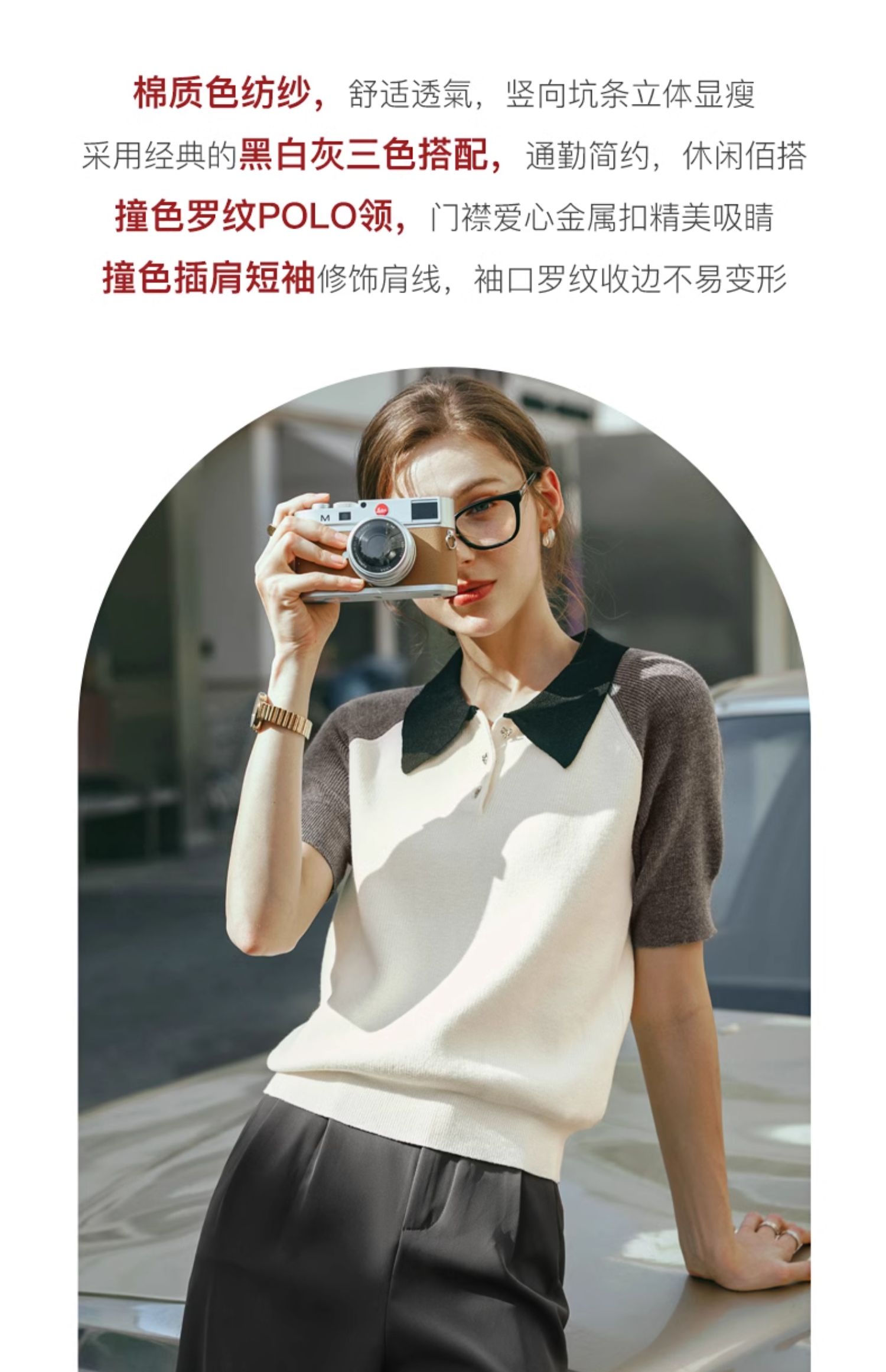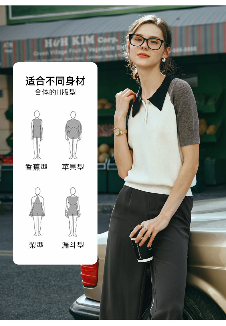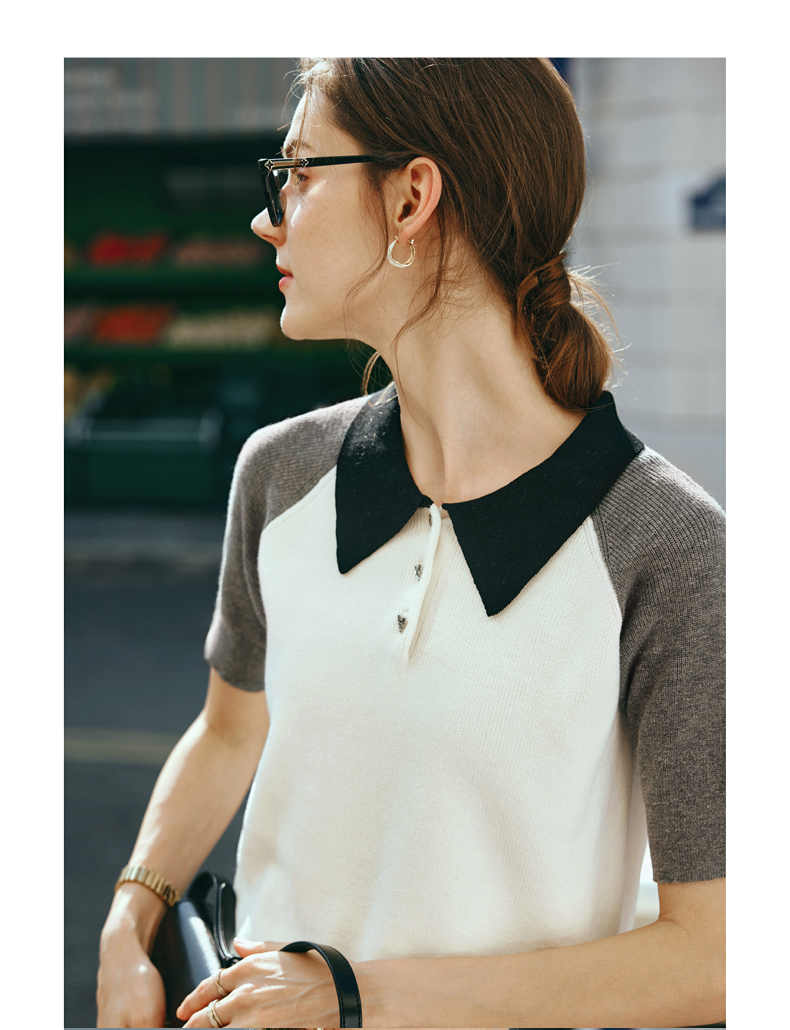 OLrain欧芮儿POLO领针织衫女早春2024年新款时尚简约拼接上衣