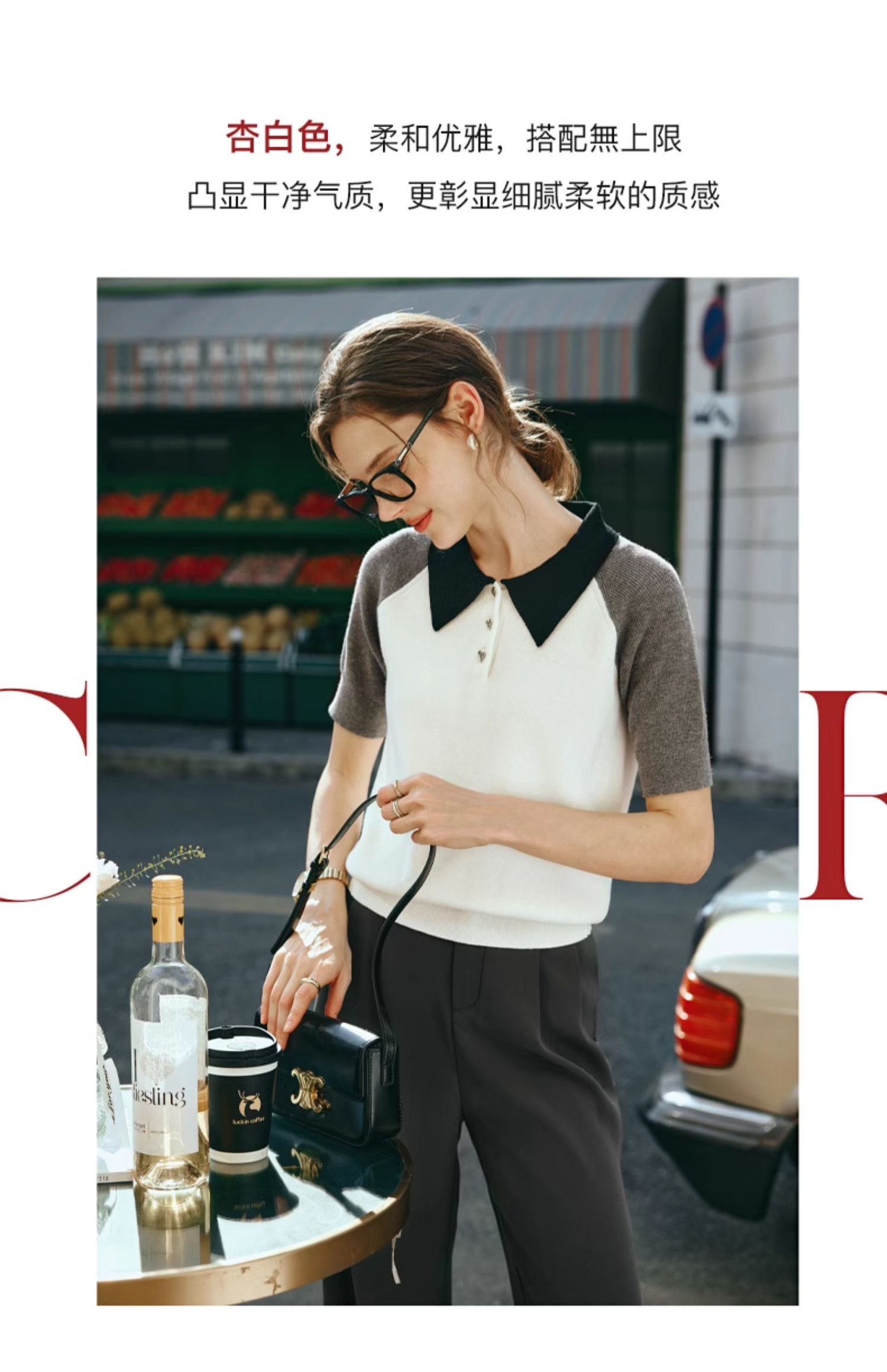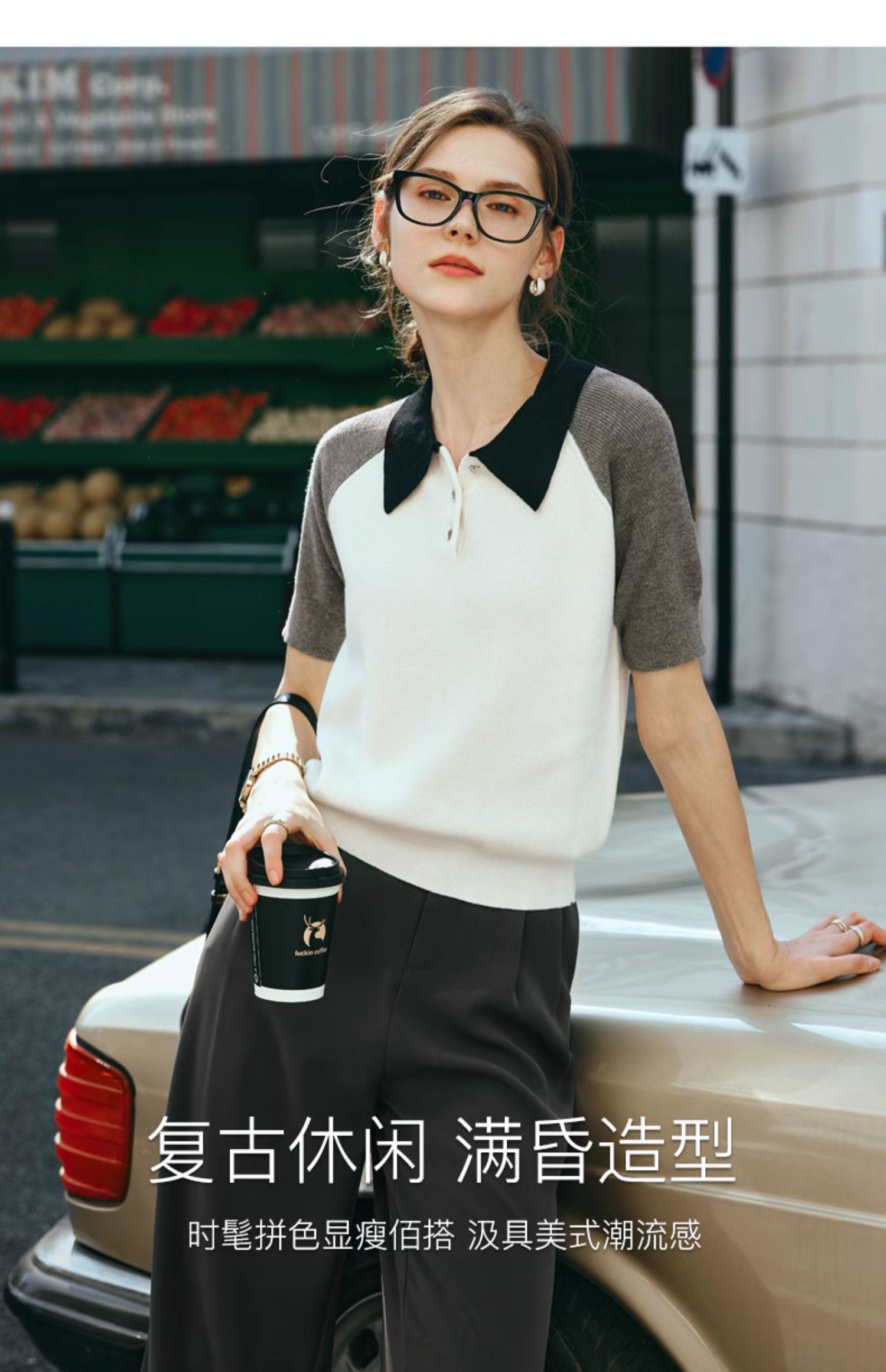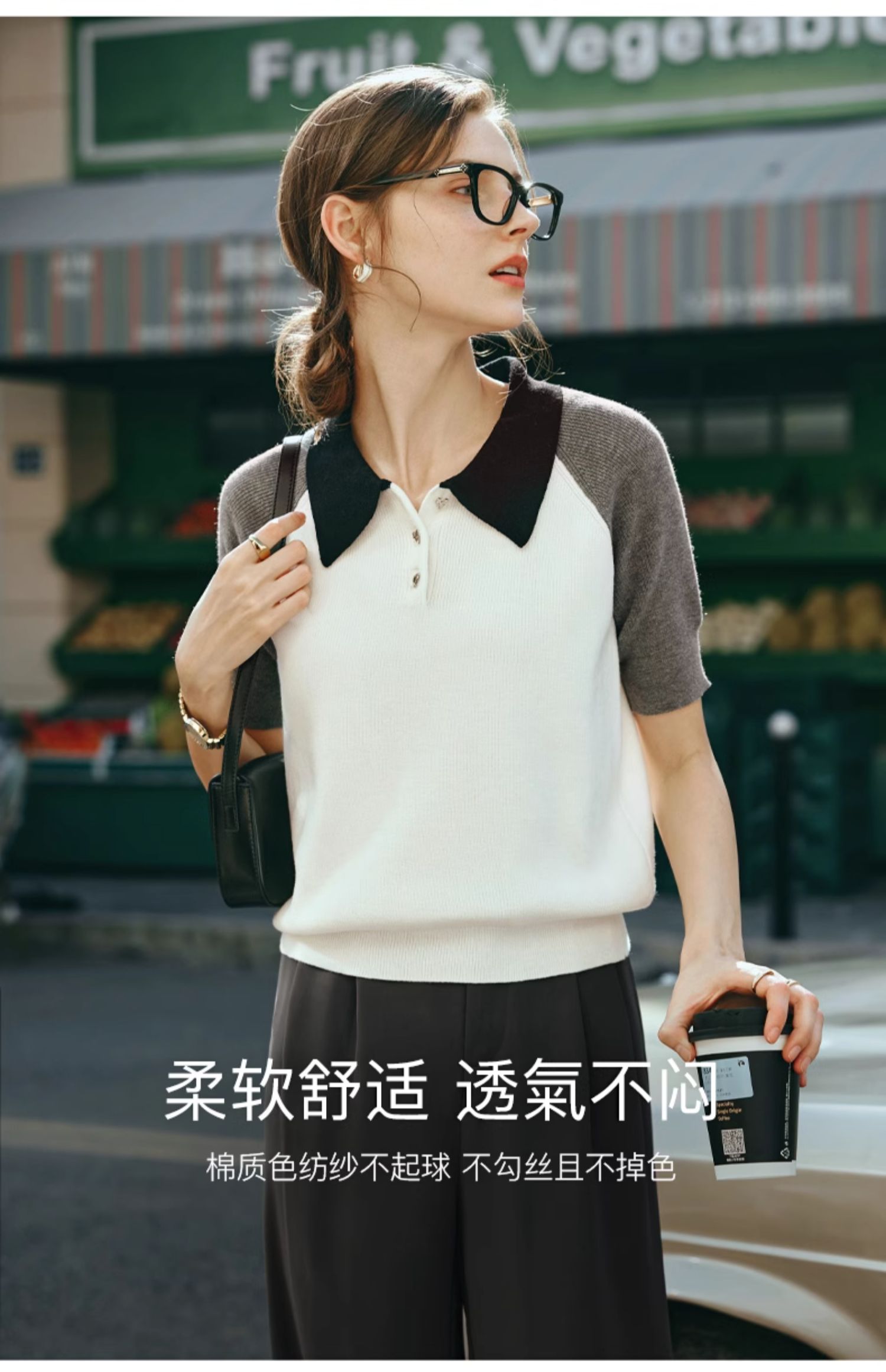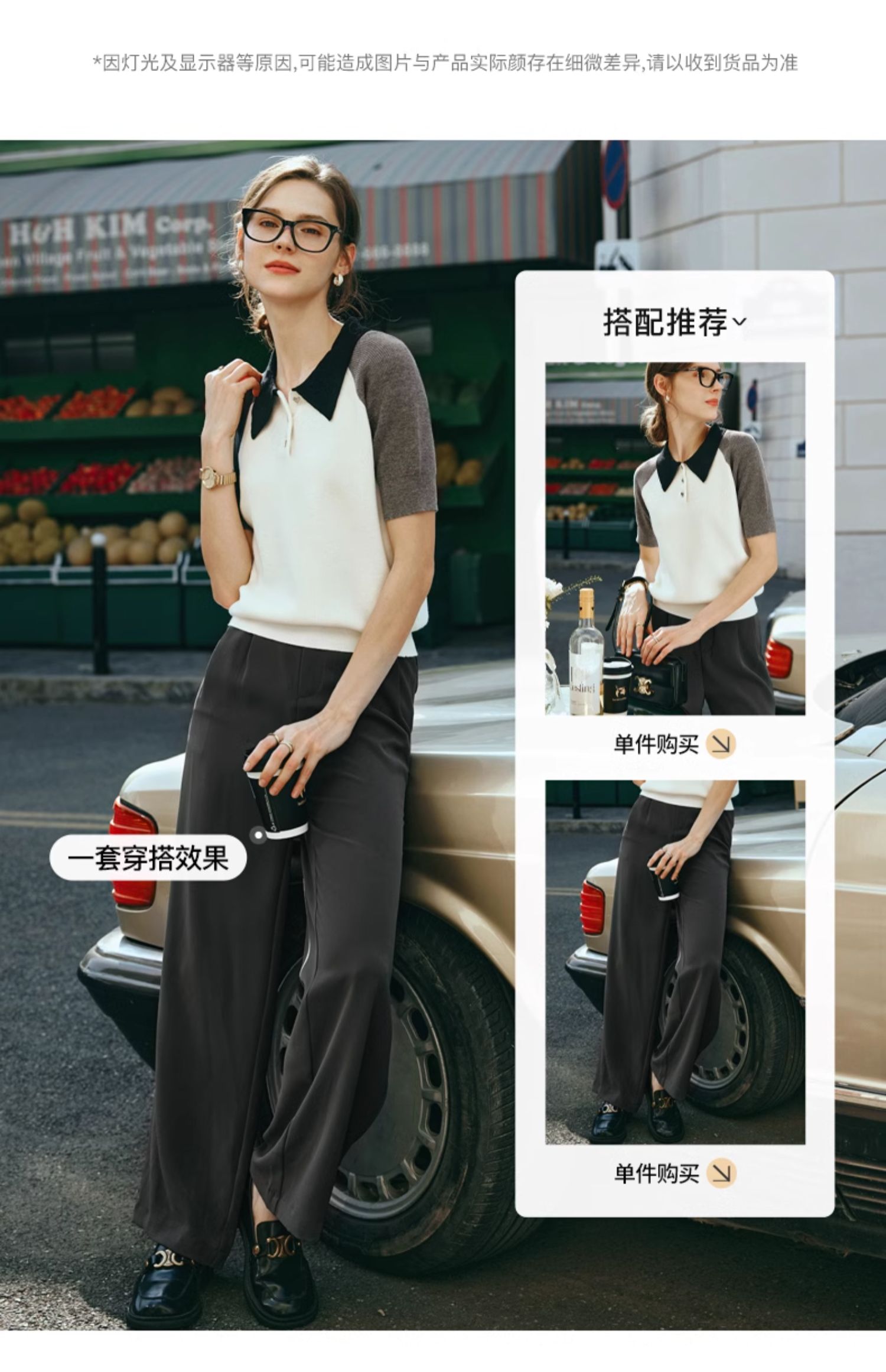 OLrain欧芮儿POLO领针织衫女早春2024年新款时尚简约拼接上衣