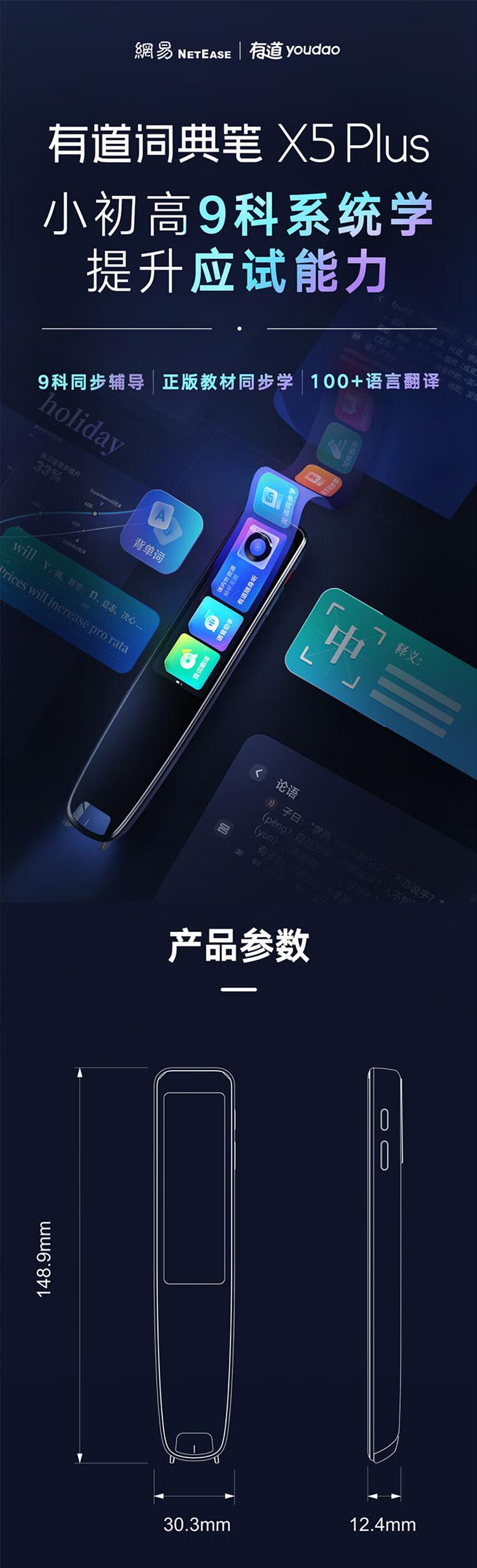 有道词典笔X5 Plus 9科同步辅导100+语言翻译