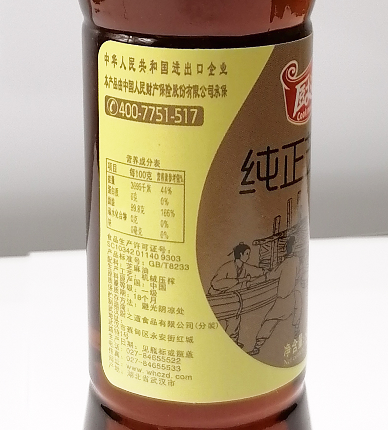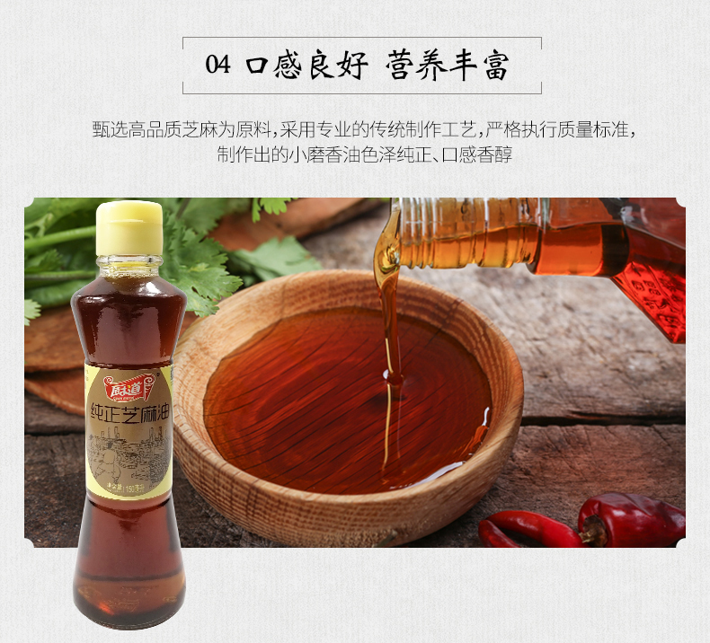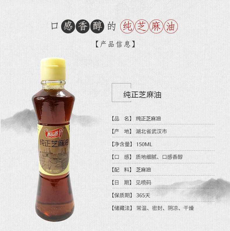 武汉 湖北厨道纯正芝麻油150ML/瓶*3