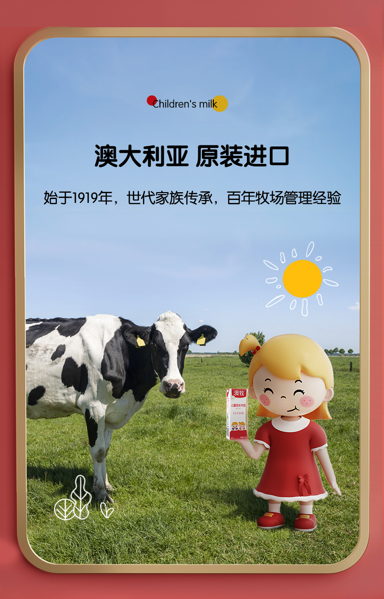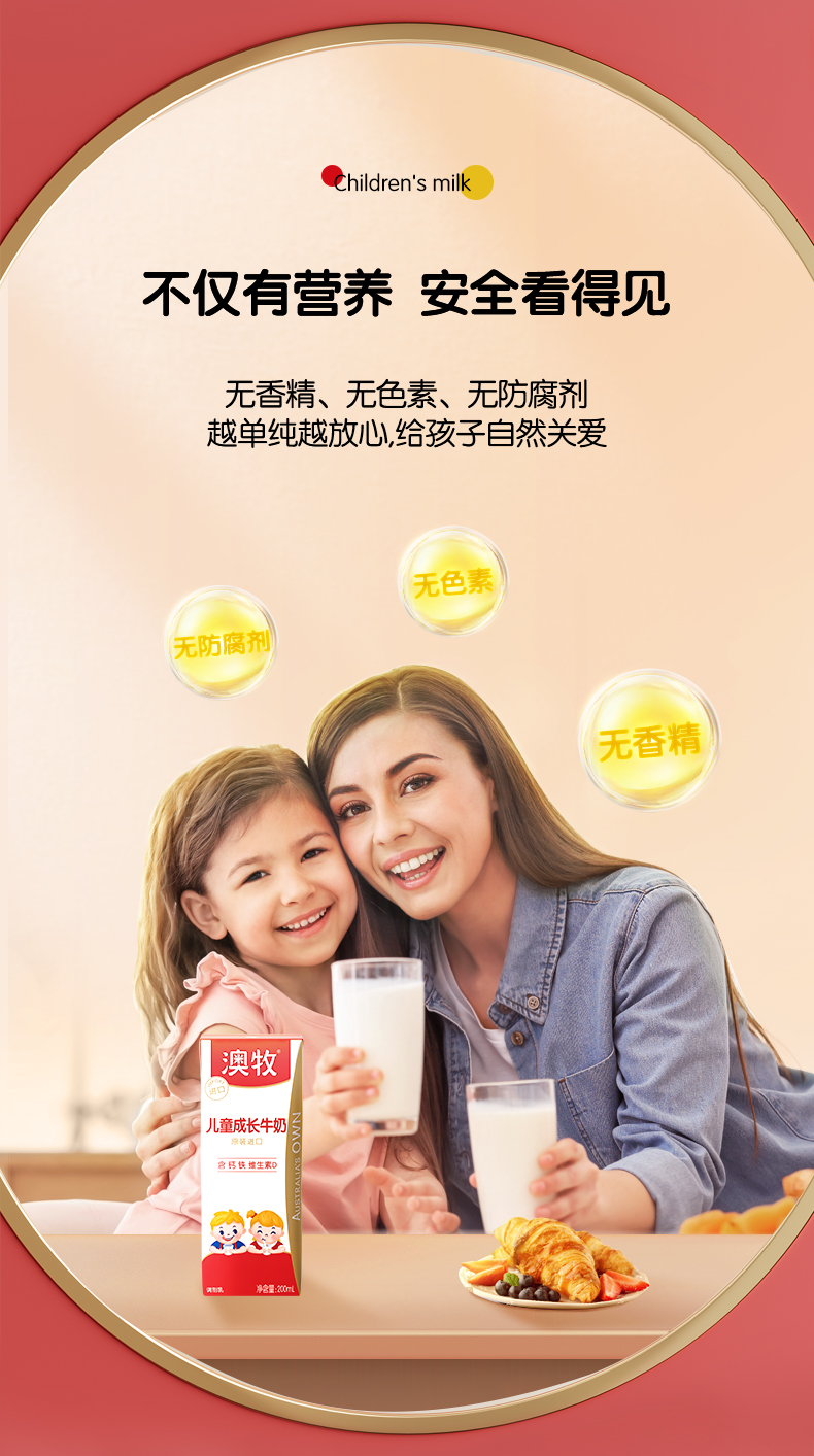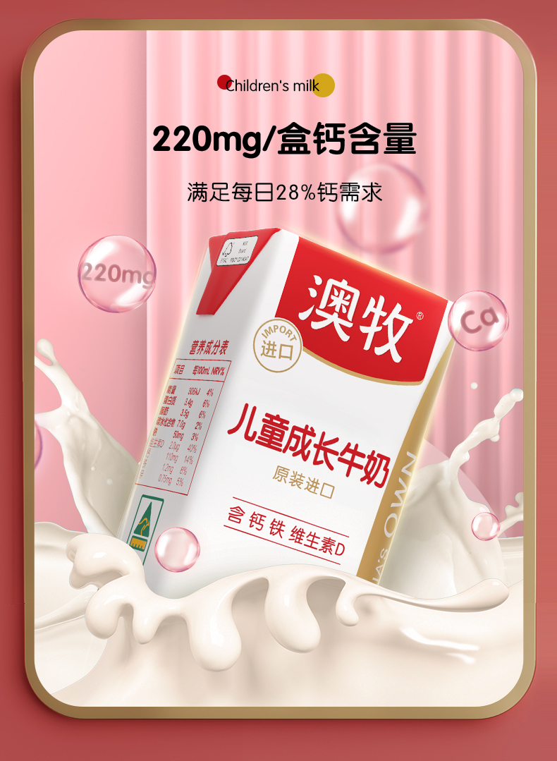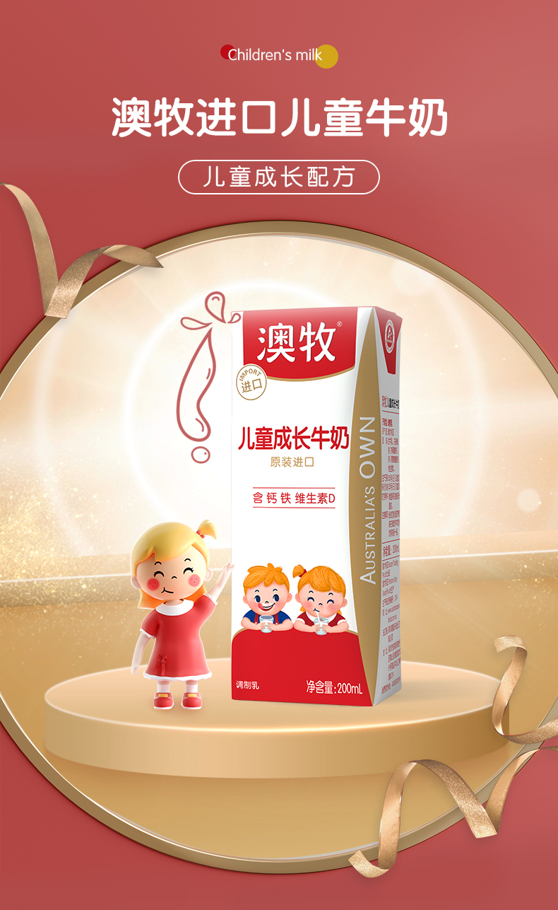 【品牌直供】澳牧儿童成长牛奶200ml*24盒