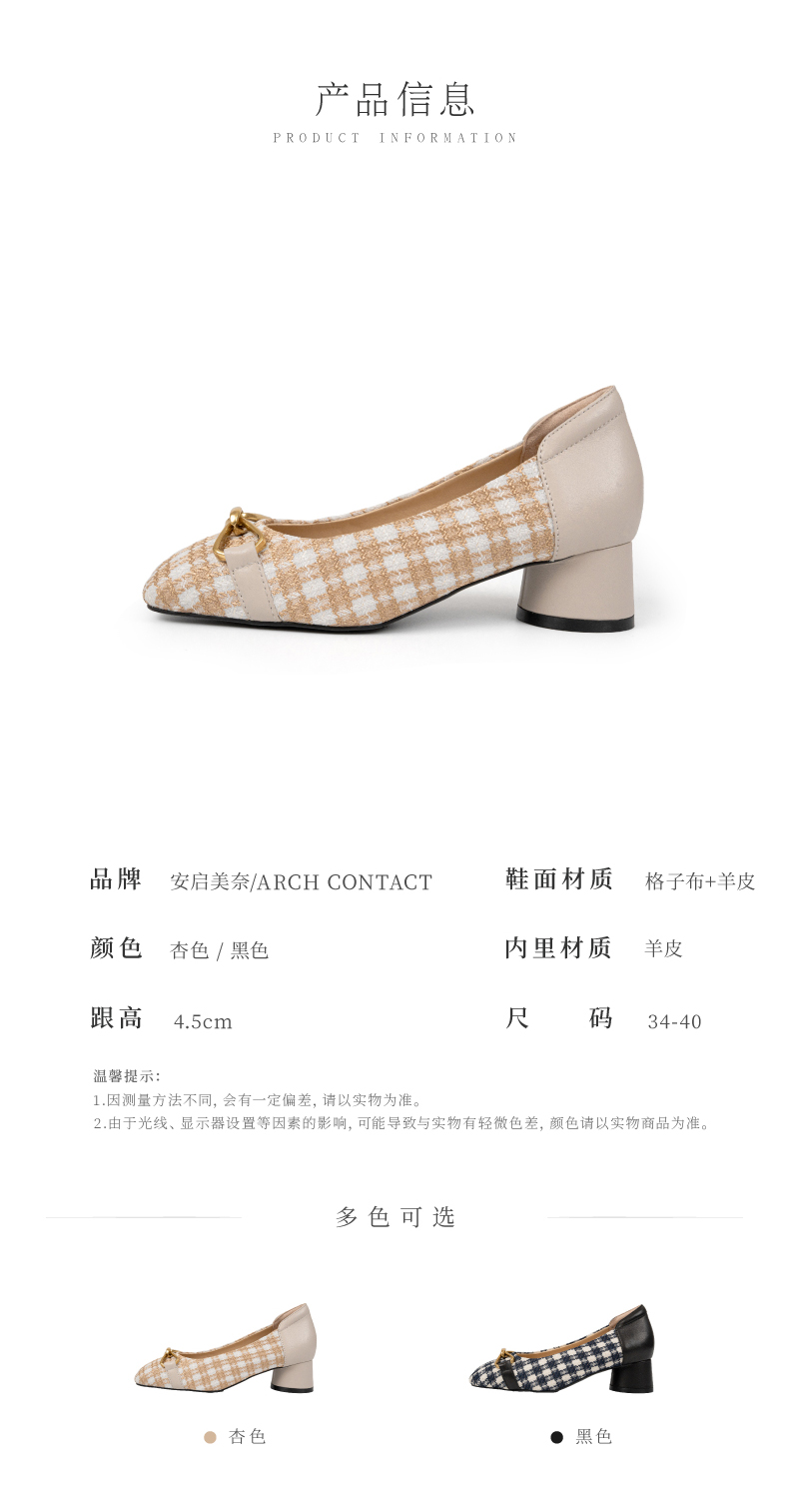 ARCHCONTACT安启美奈方头拼接时尚舒适单鞋52724