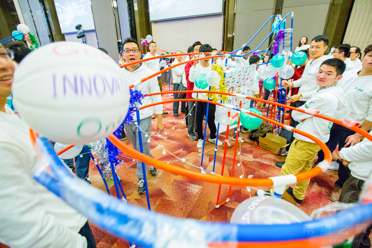 3. 在过山车终点设计富有创意的迎接梦想之球到达的仪式。(可以用人或物品)