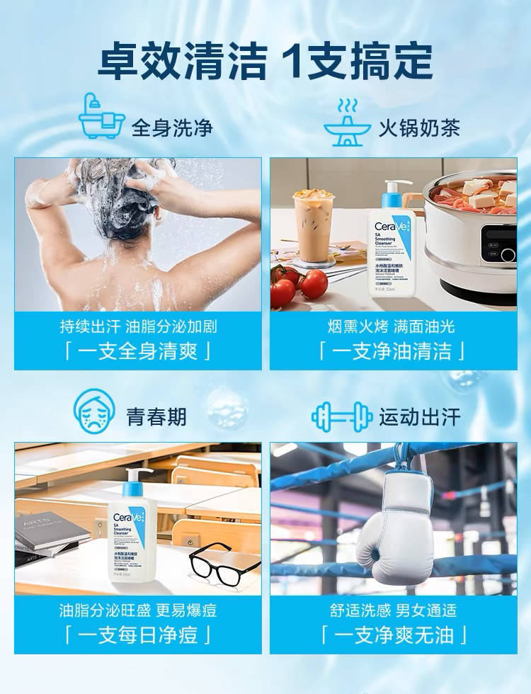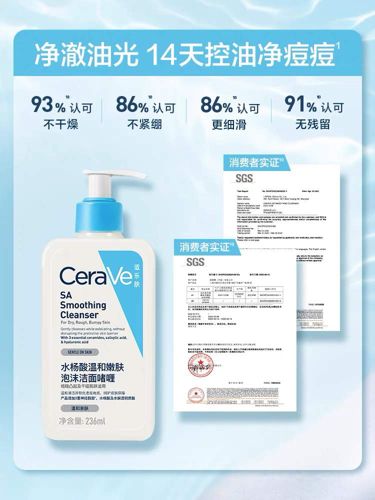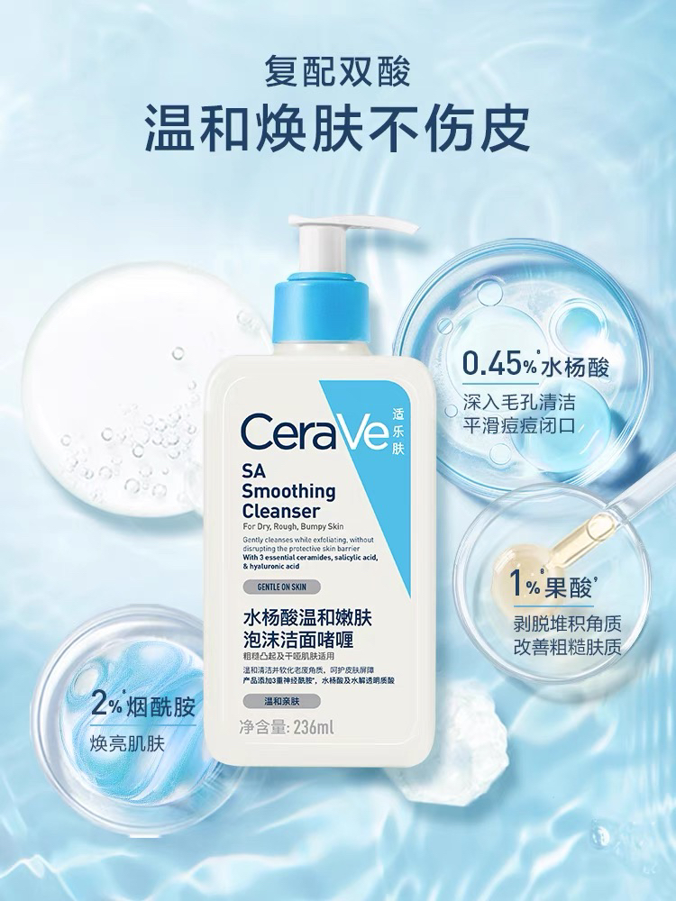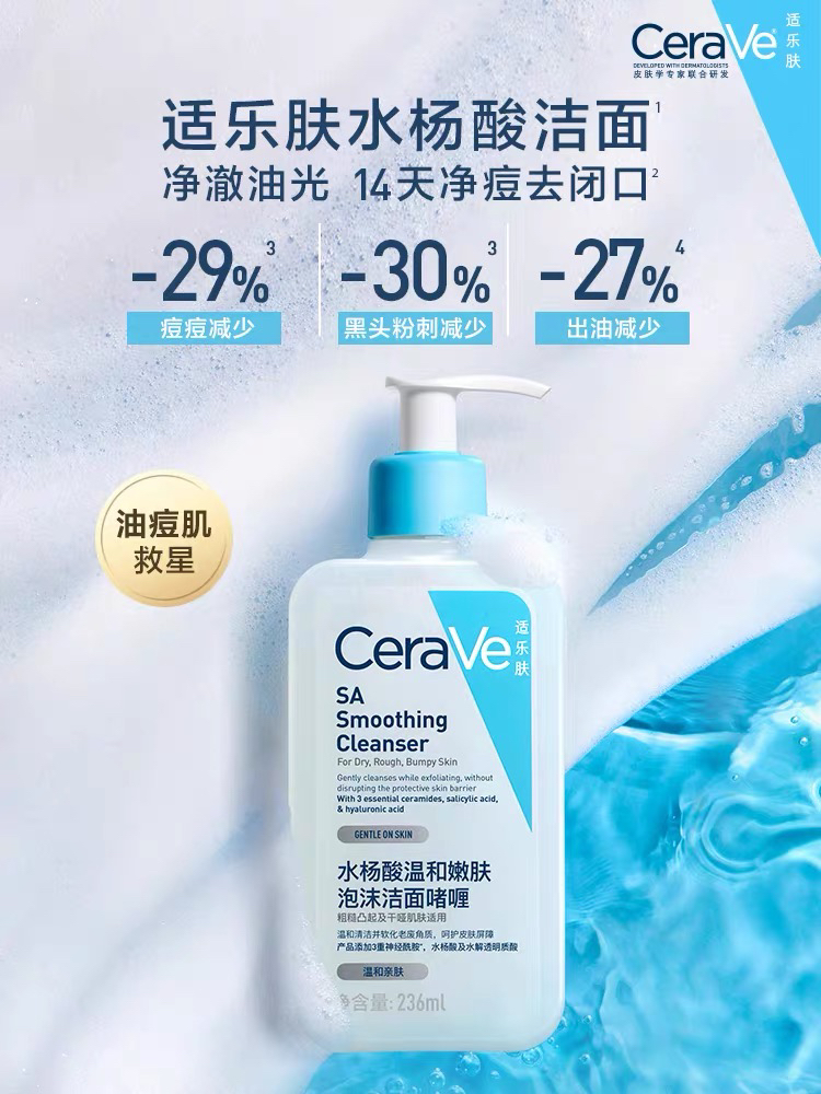 【海关监管保税直发】美国CeraVe适乐肤水杨酸氨基酸洗面奶-敏感肌去黑头-会员5折