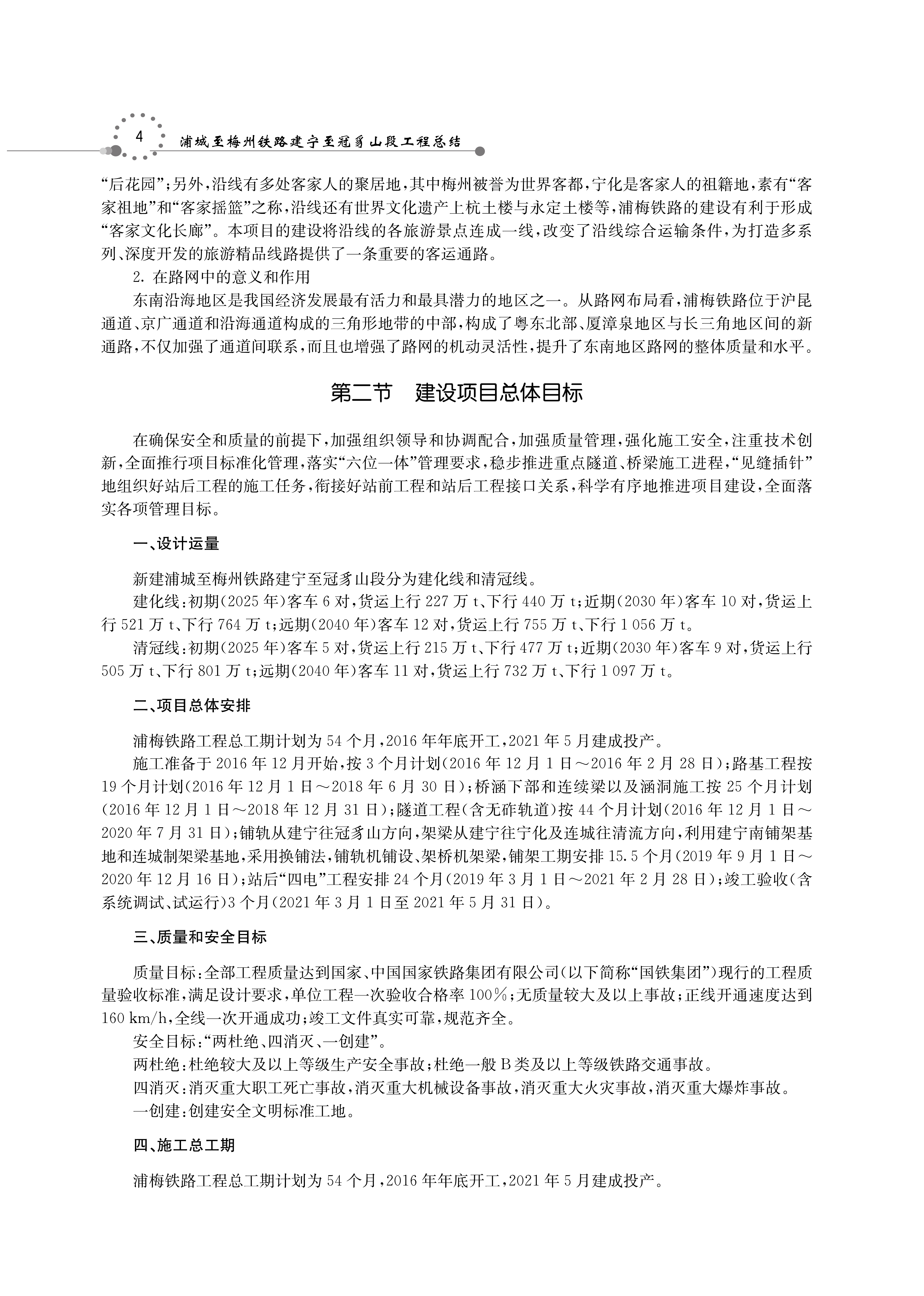 浦城至梅州铁路建宁至冠豸山段于2021年9月30日通车,根据原中国铁路总公司《铁路建设项目工程总结管理办法》(铁总建设[2015]261号)的要求,完成《浦城至梅州铁路建宁至冠豸山段工程总结》。该图书主要包括五篇内容:综述篇、建设管理篇、勘察设计篇、工程施工篇、科研与技术创新篇,最后对本铁路项目的大事记进行了记载。本图书从管理、设计、施工等角度全方位整理总结了浦梅铁路建宁至冠豸山段建设过程中的创新技术及管理成果。