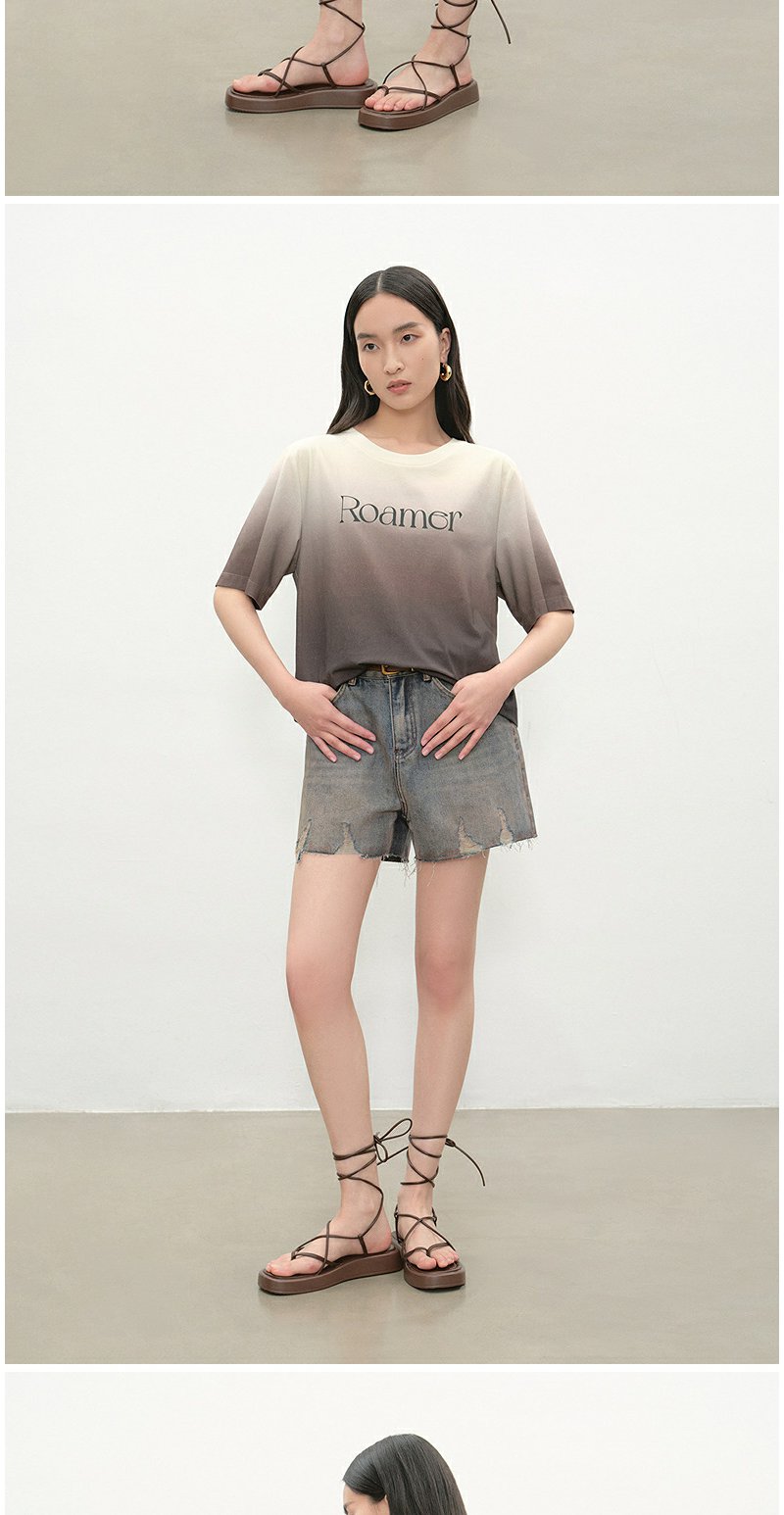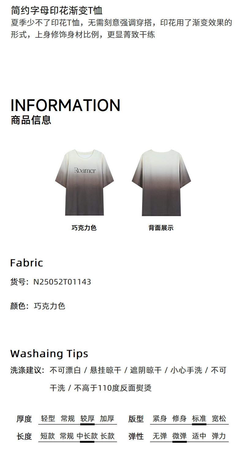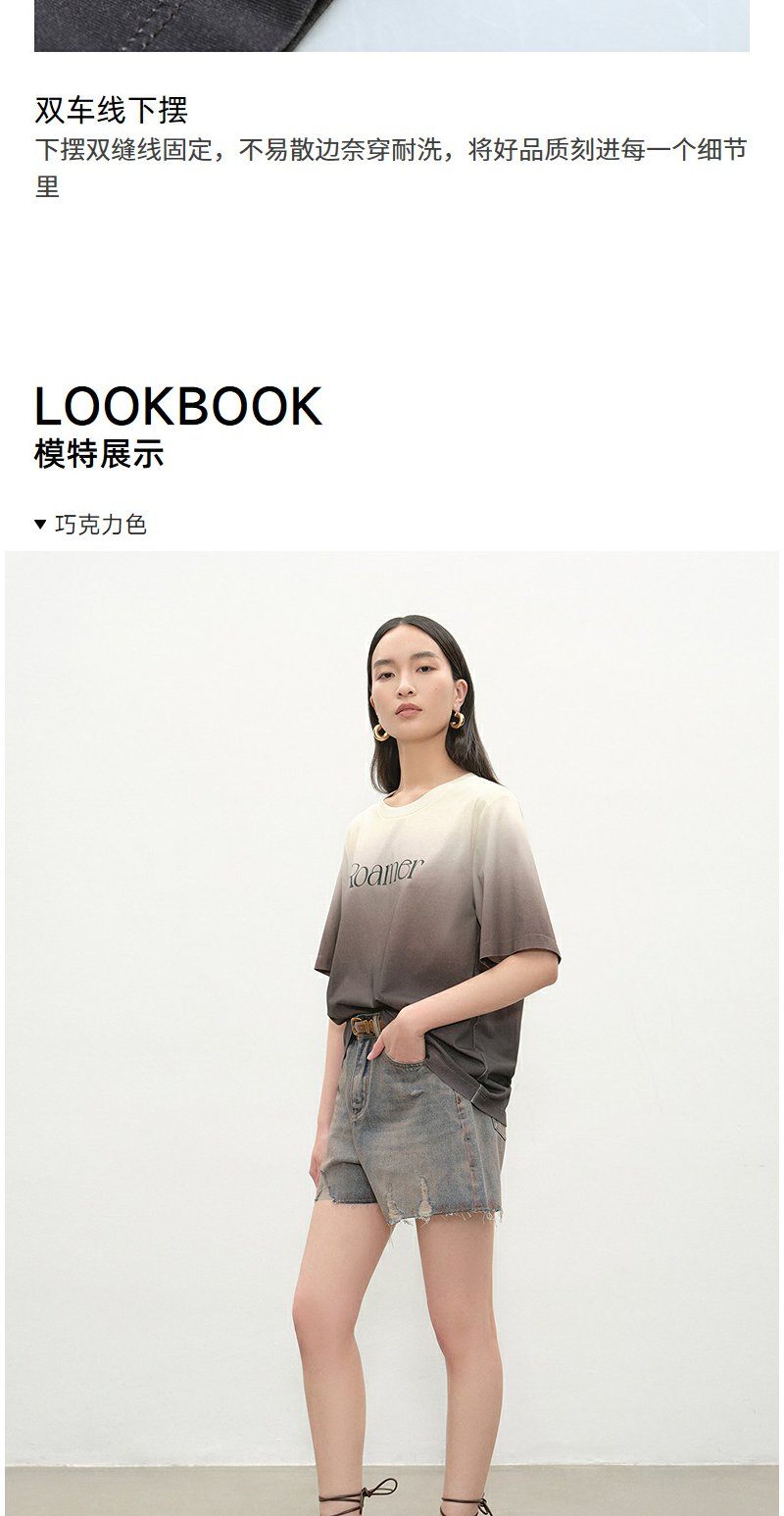 NEELLY纳俪商场同款夏季新款时尚渐变短袖字母T恤女圆领个性上衣N25052T01143