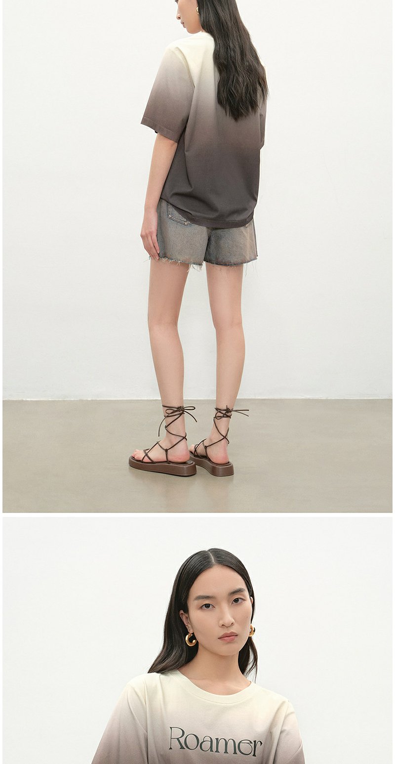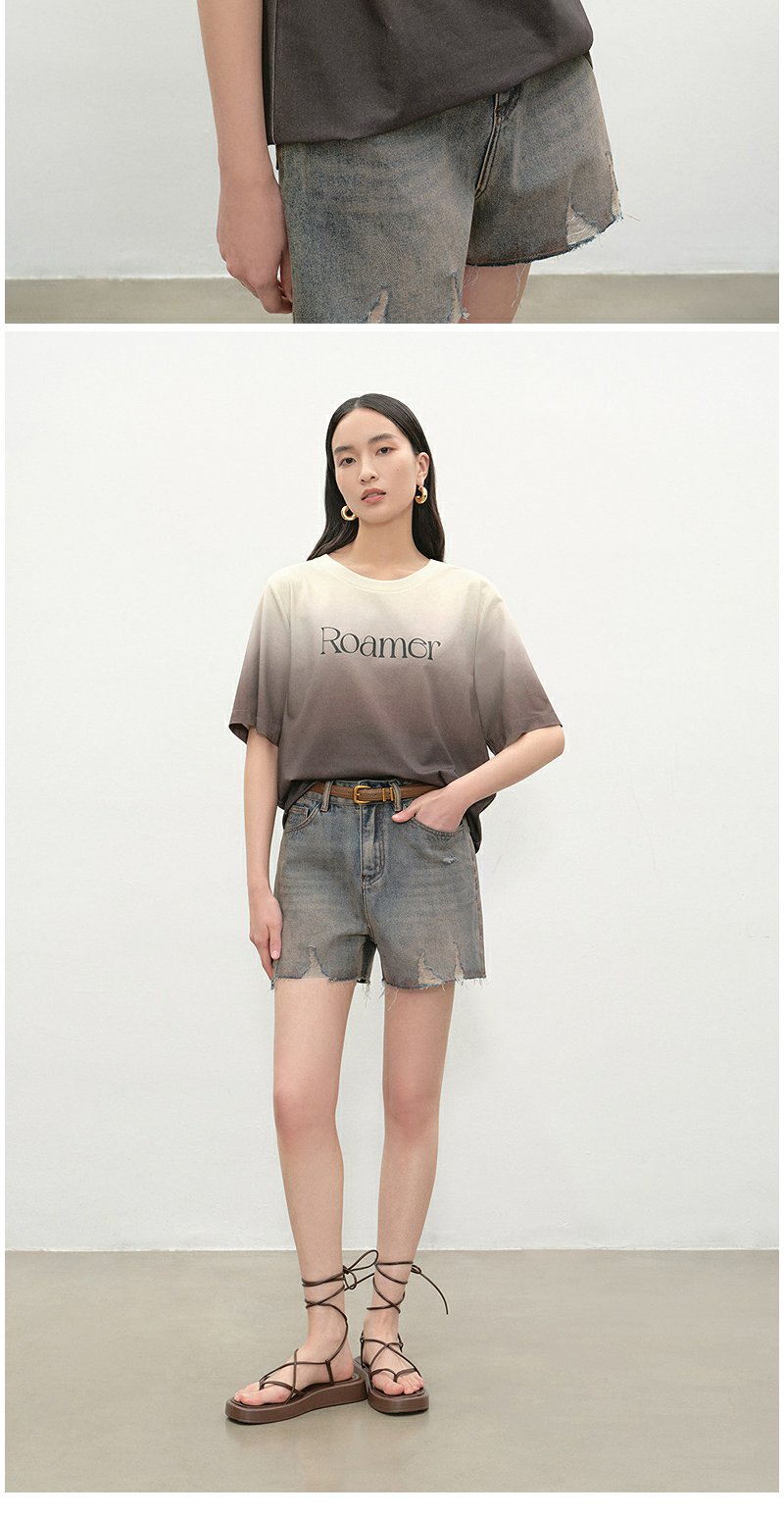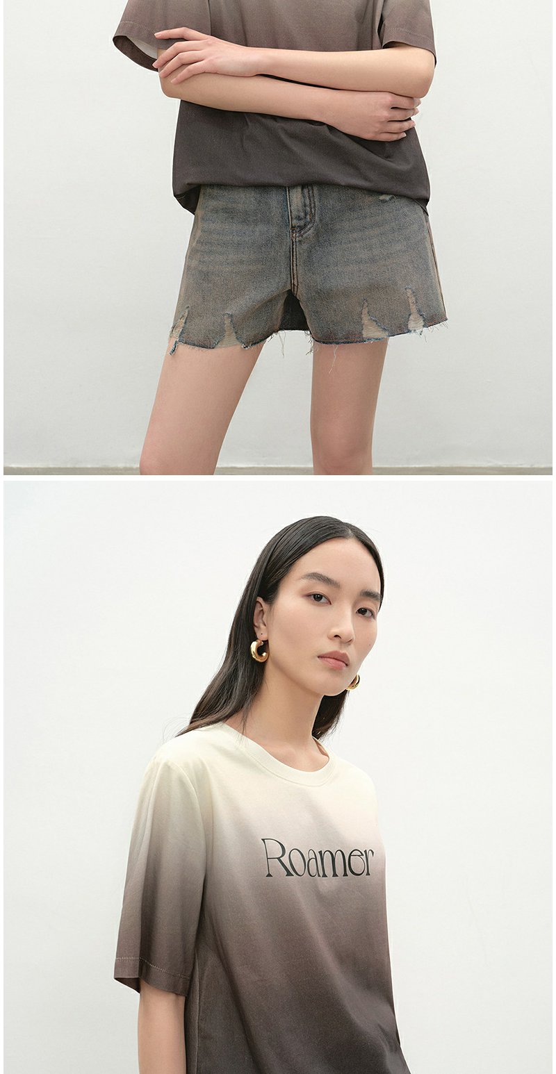 NEELLY纳俪商场同款夏季新款时尚渐变短袖字母T恤女圆领个性上衣N25052T01143