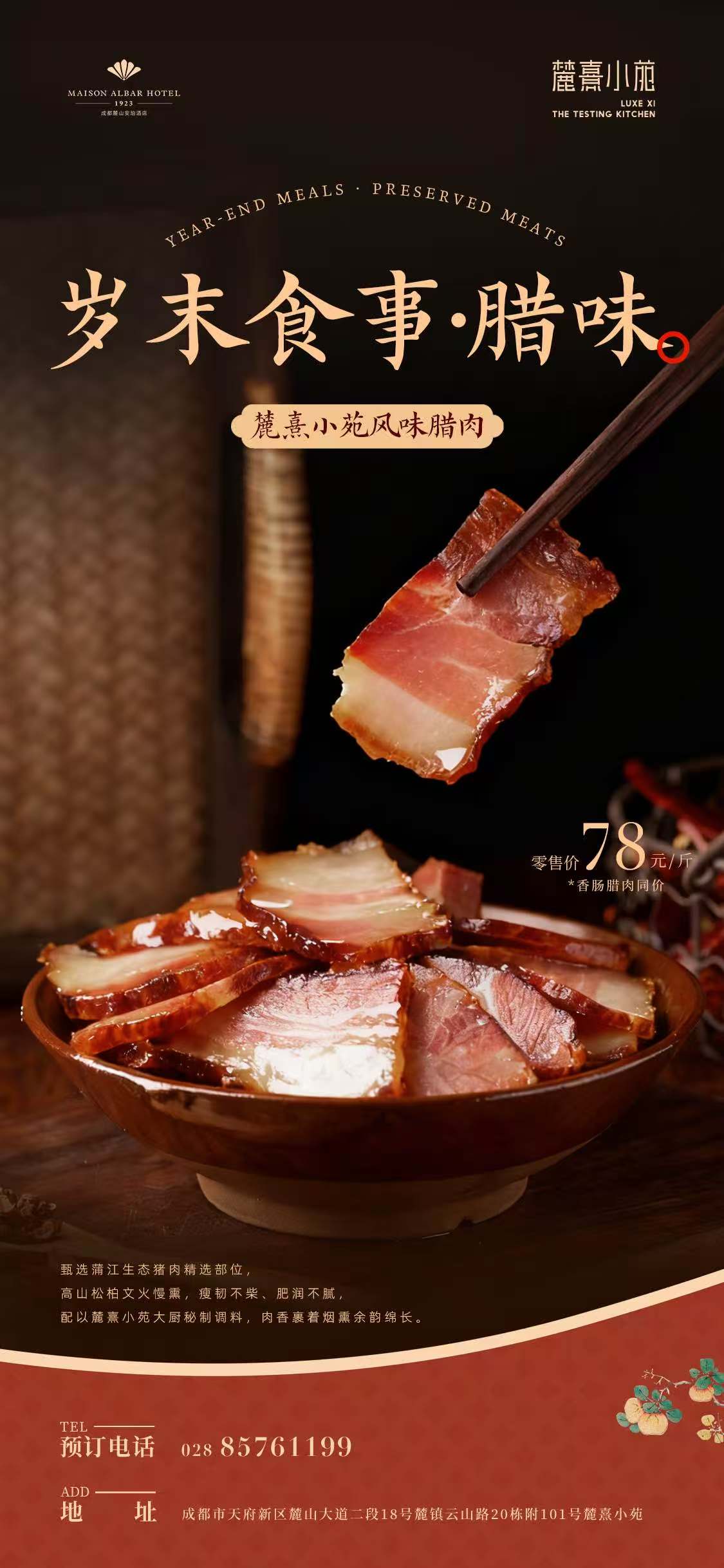 精选上等蒲江生态猪肉,配以麓熹小苑大师秘制调料
