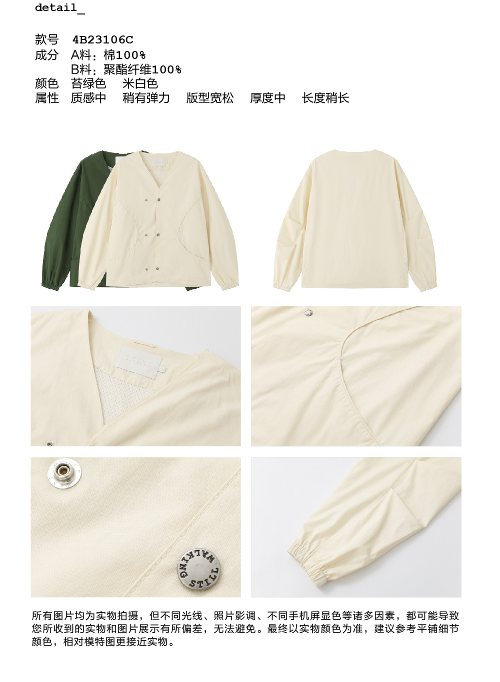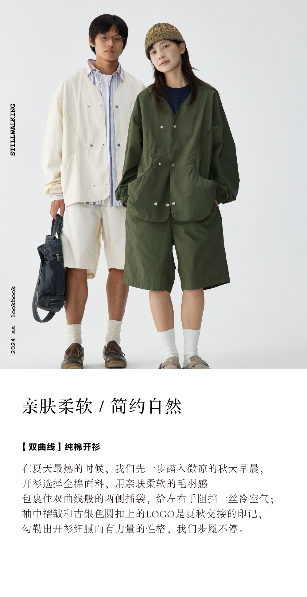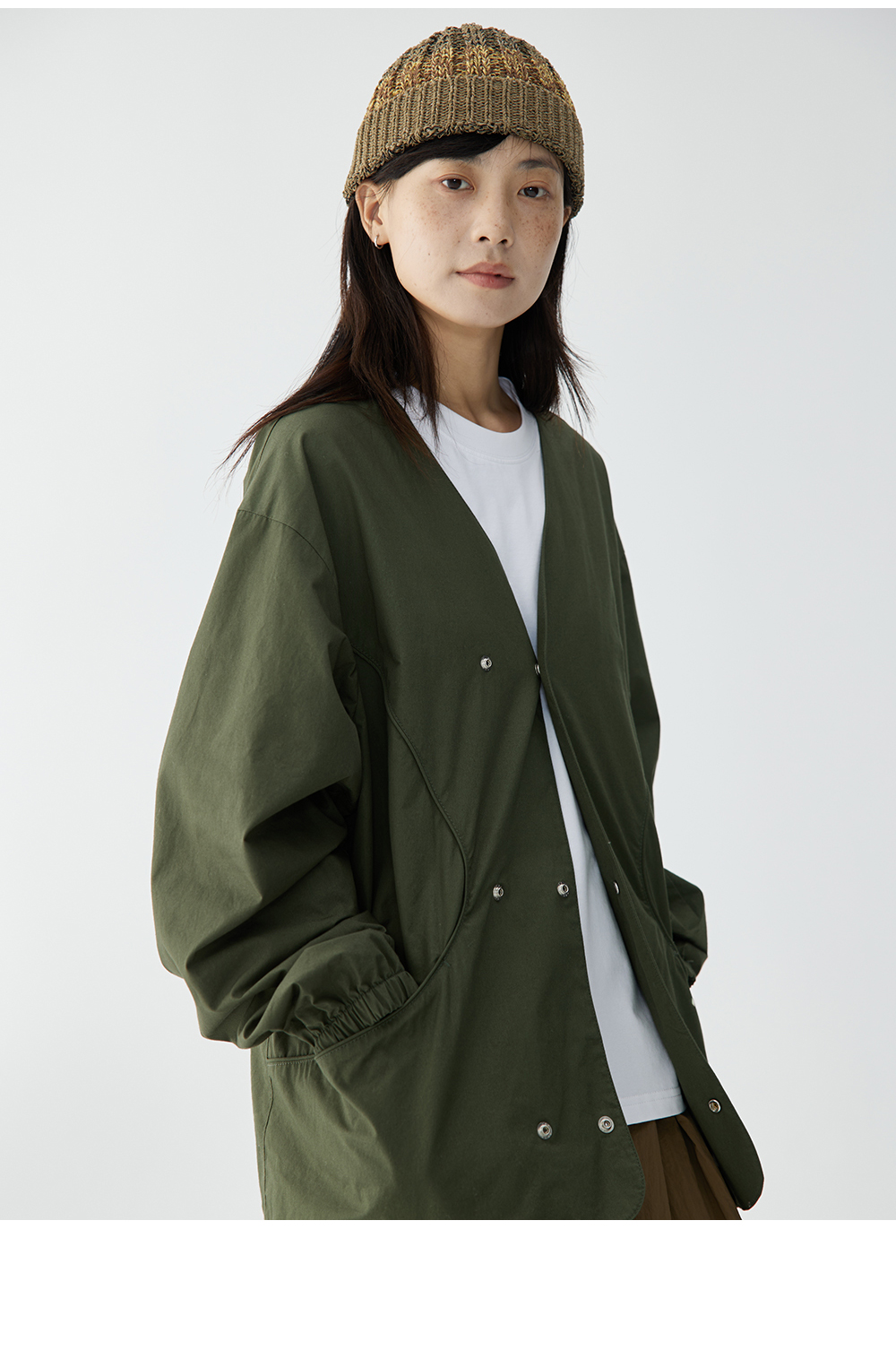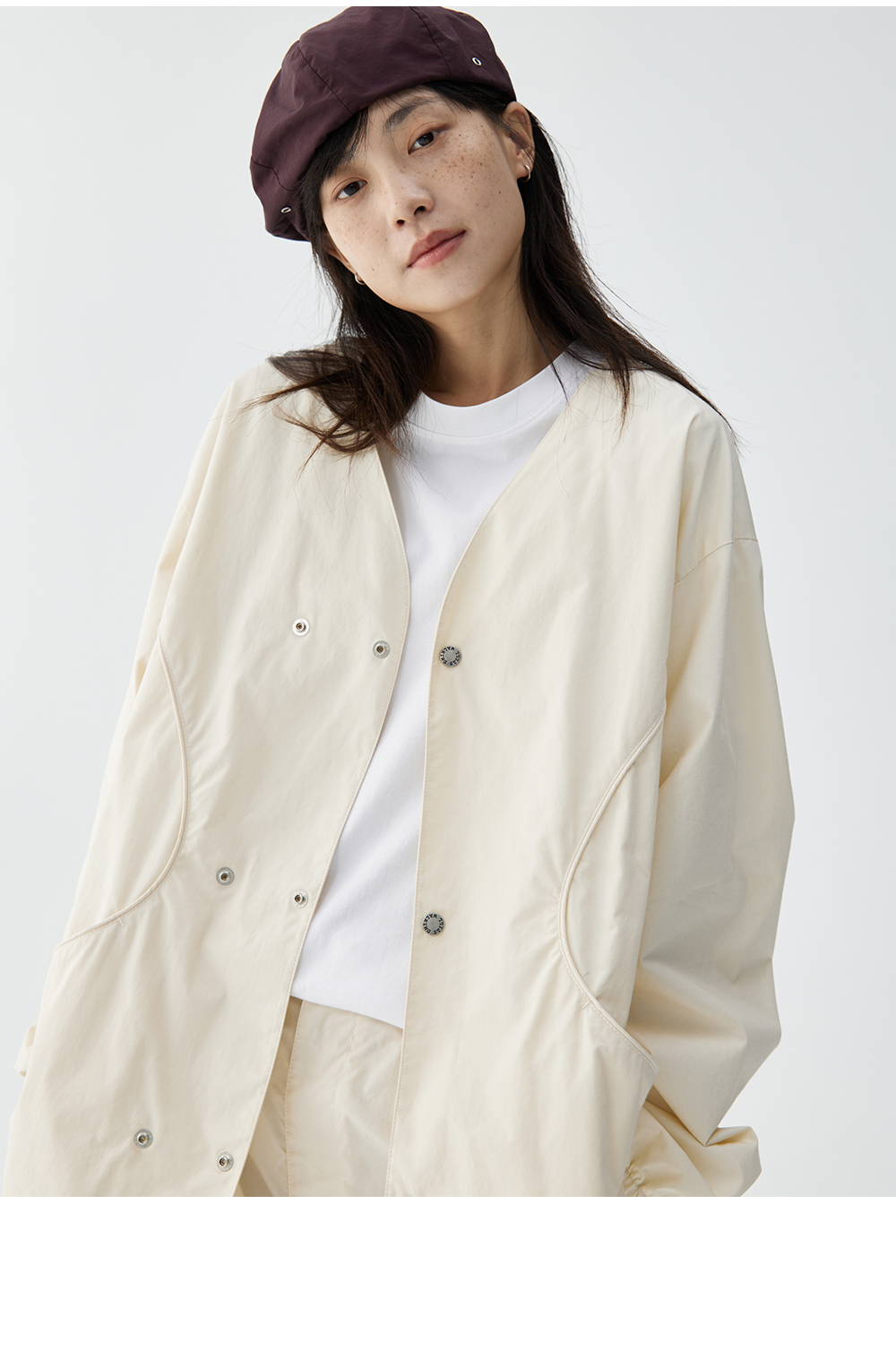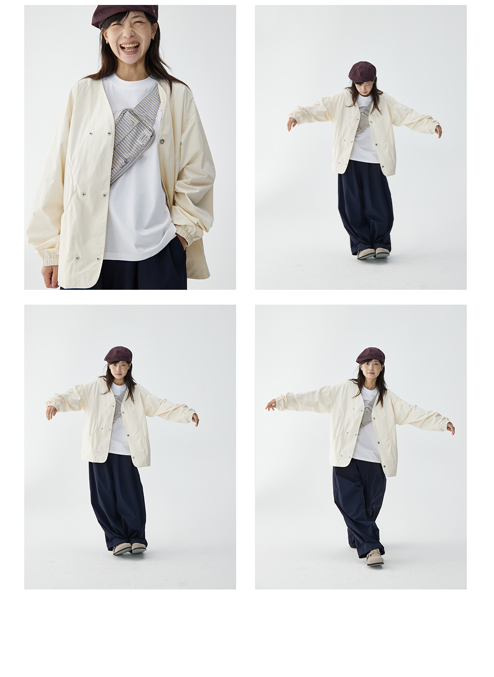 步履不停/4B23106C/纯棉宽松无领开衫长袖外套