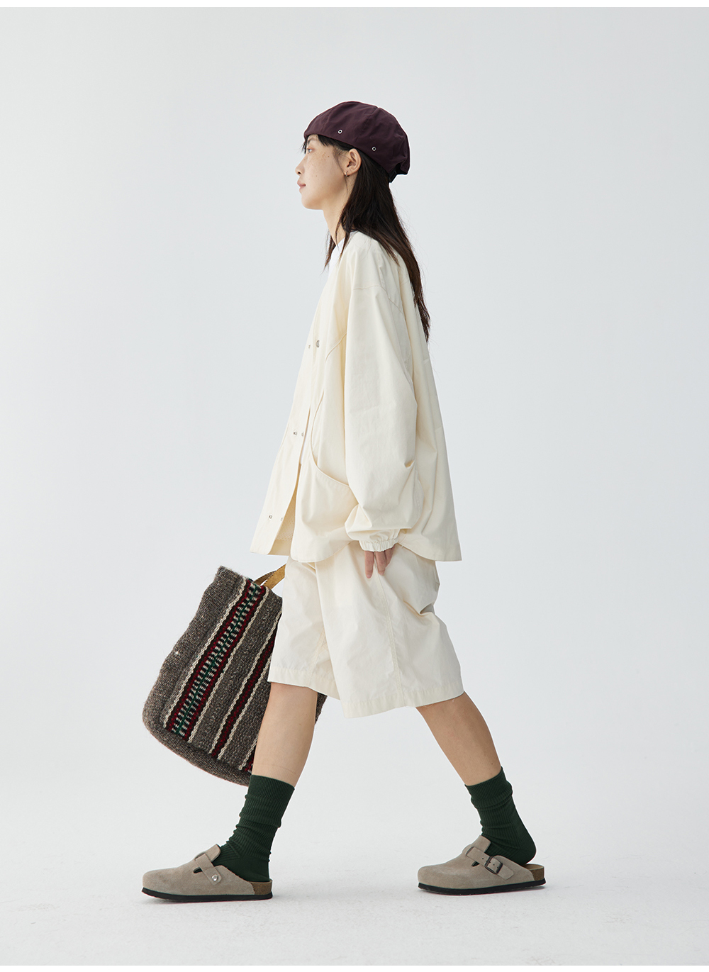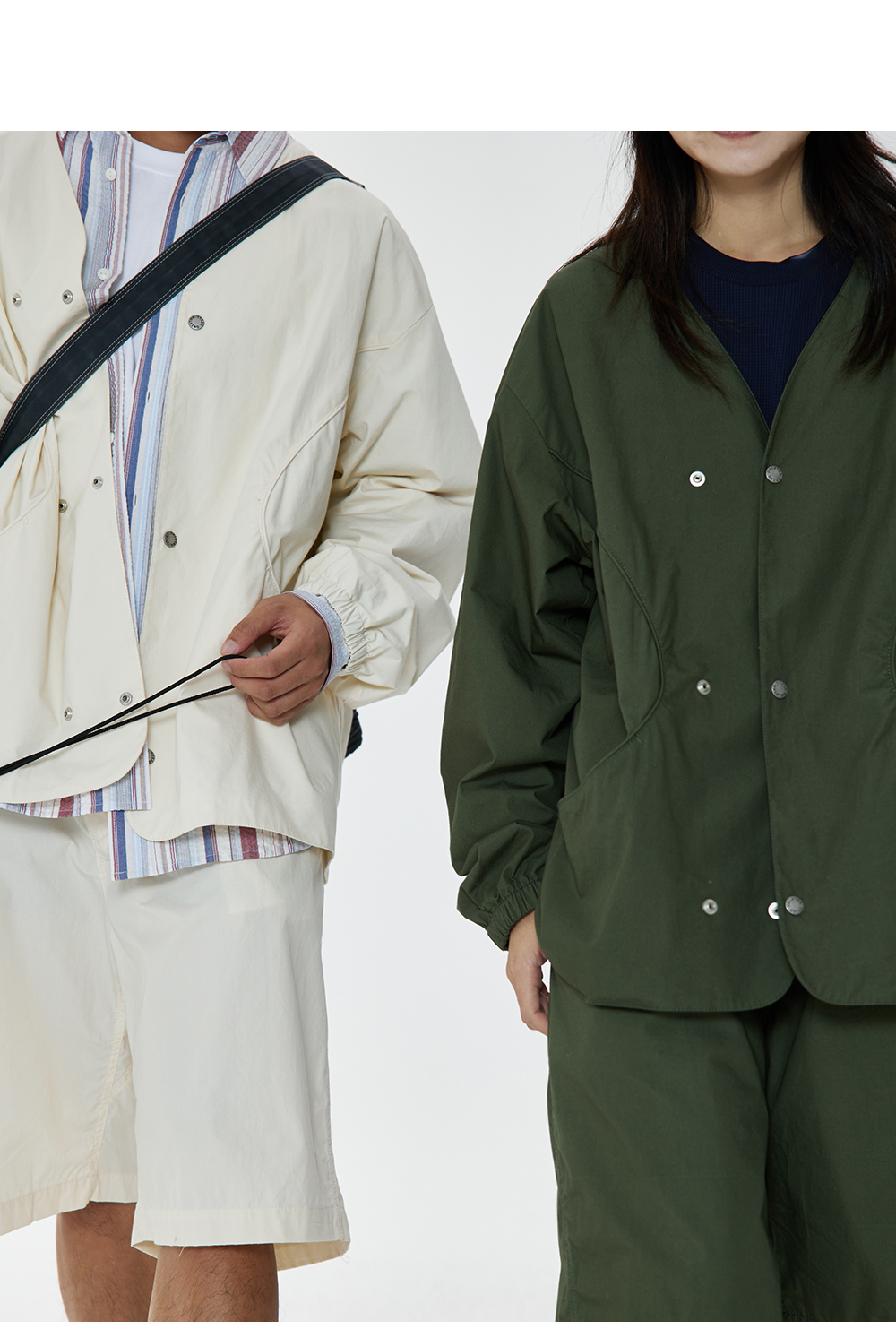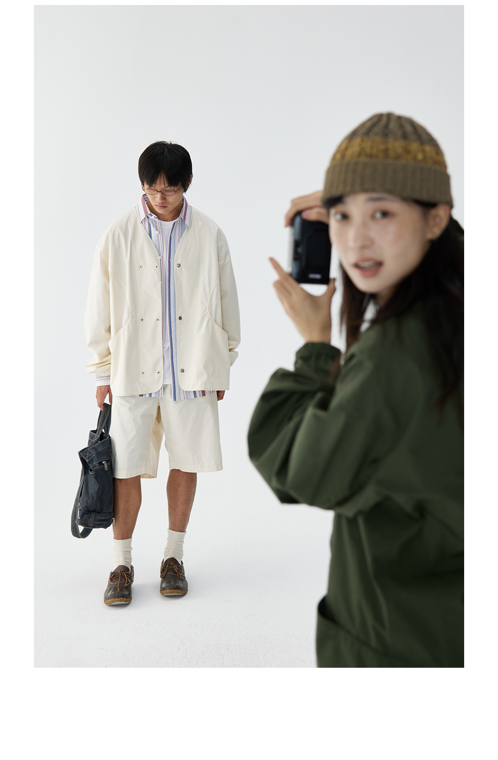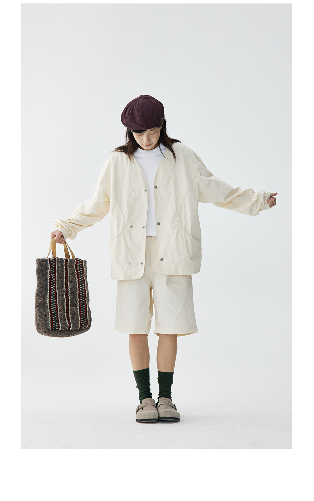 步履不停/4B23106C/纯棉宽松无领开衫长袖外套