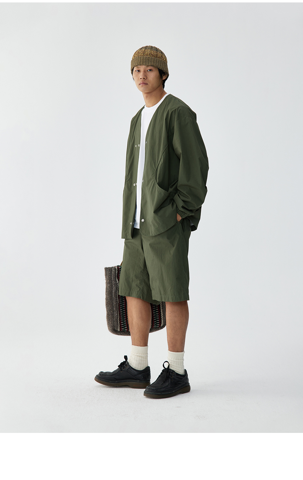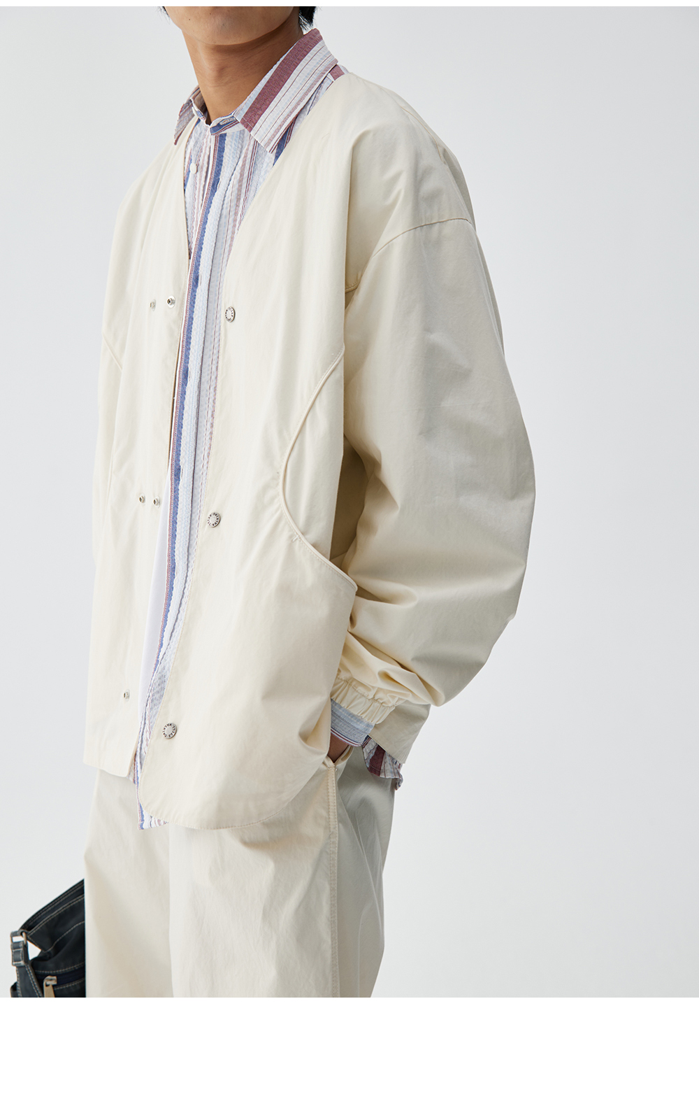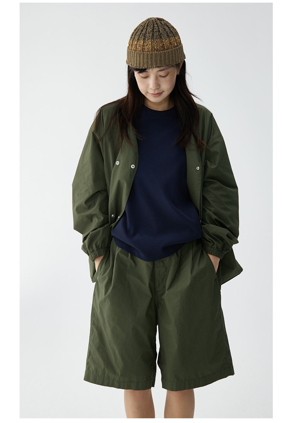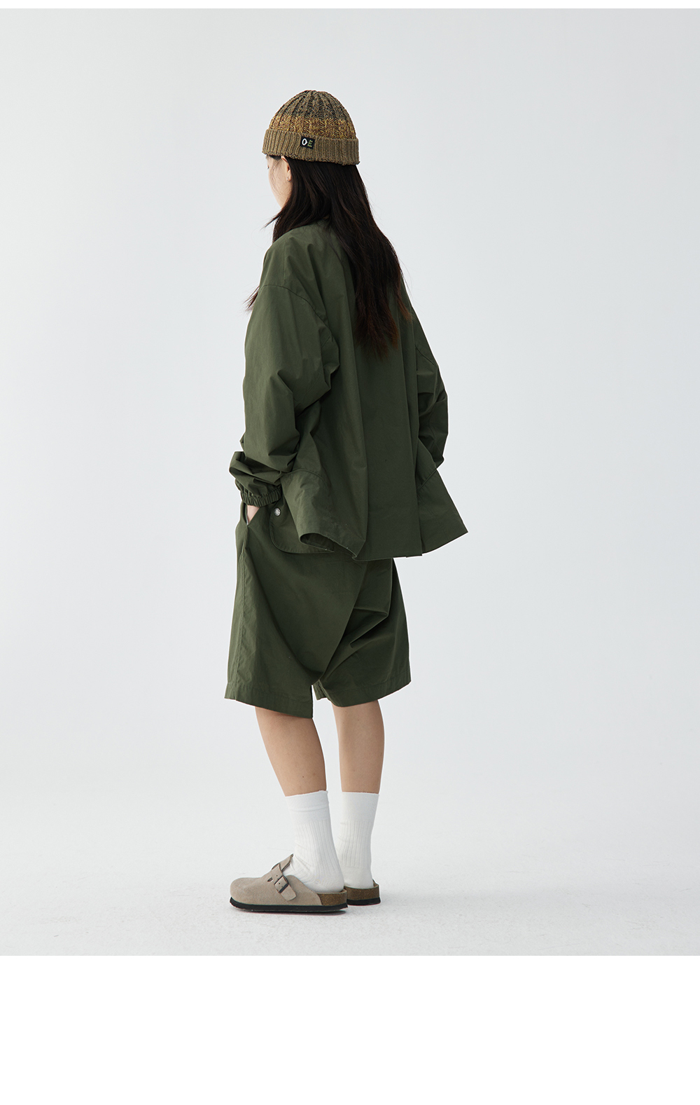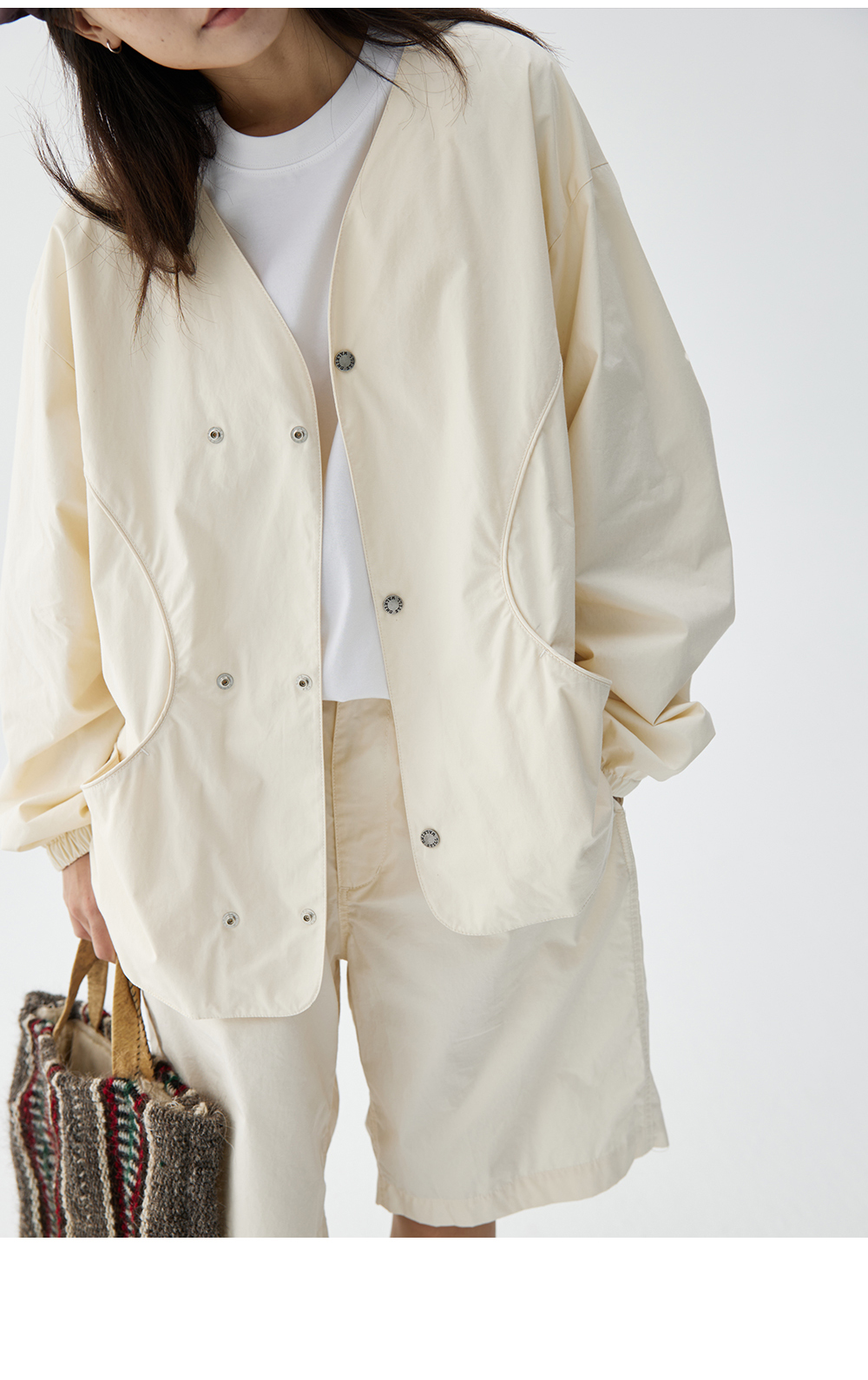 步履不停/4B23106C/纯棉宽松无领开衫长袖外套