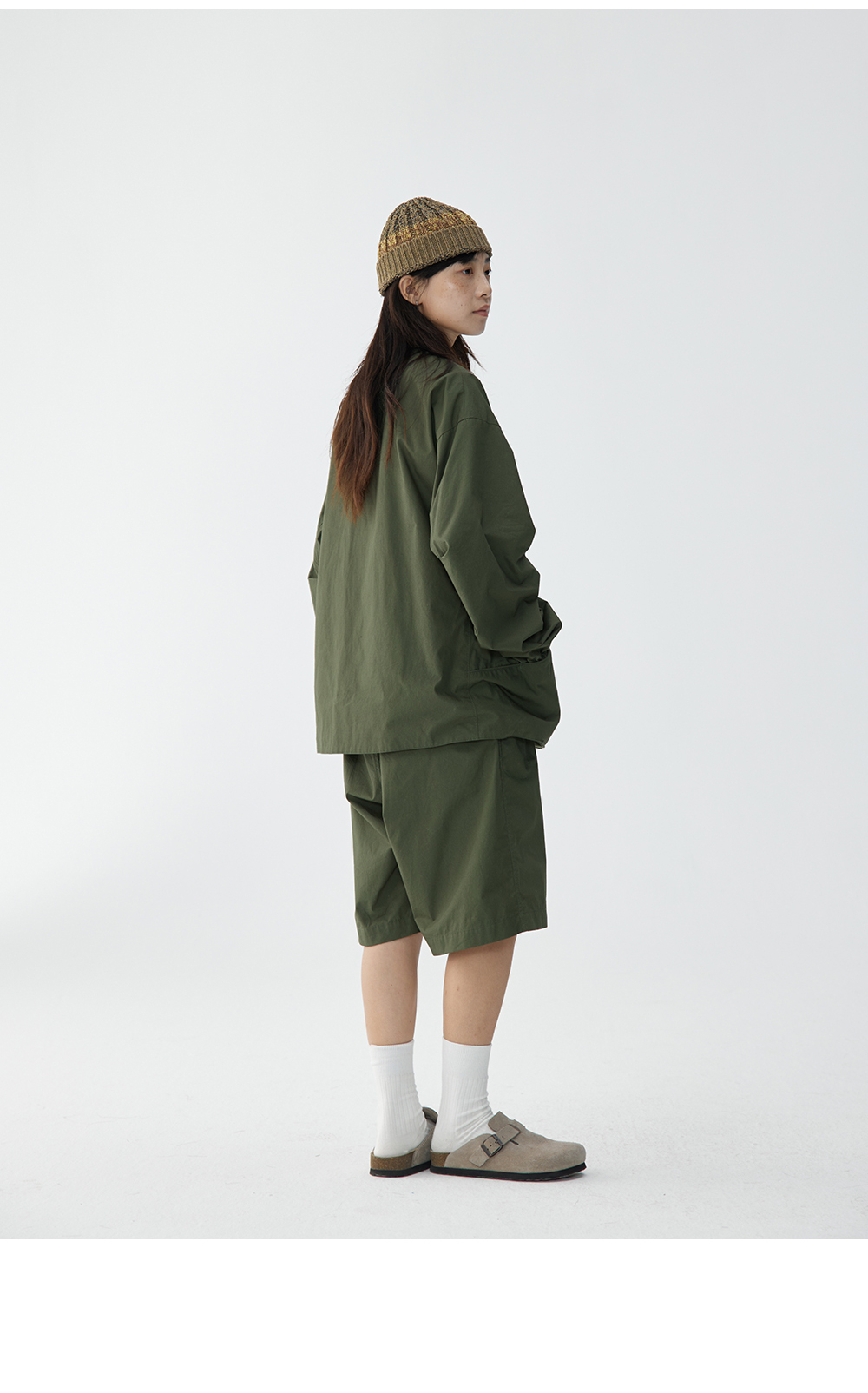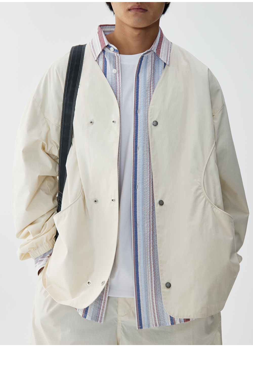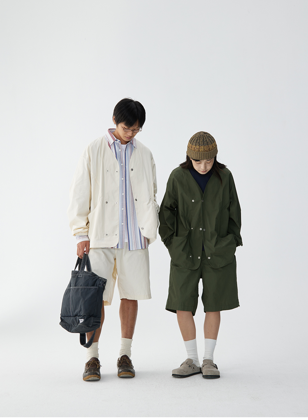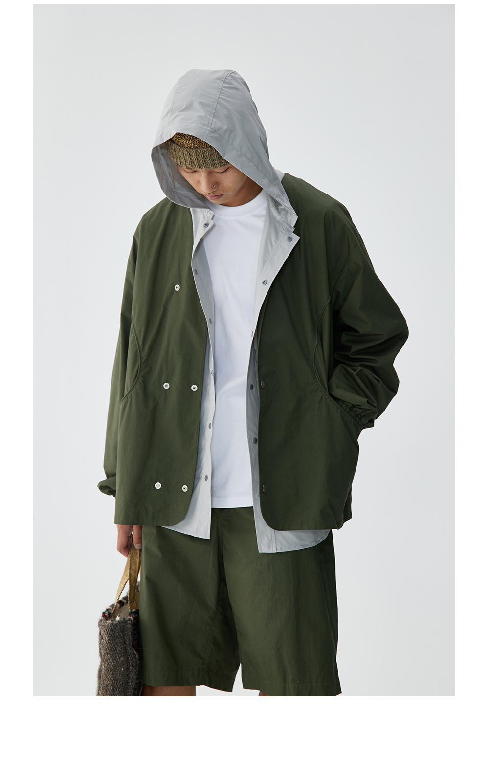 步履不停/4B23106C/纯棉宽松无领开衫长袖外套
