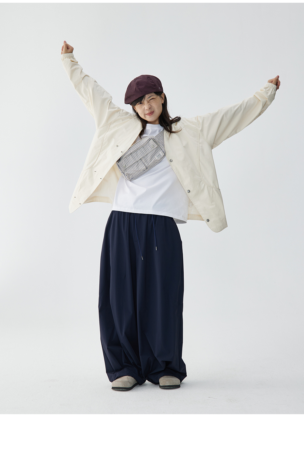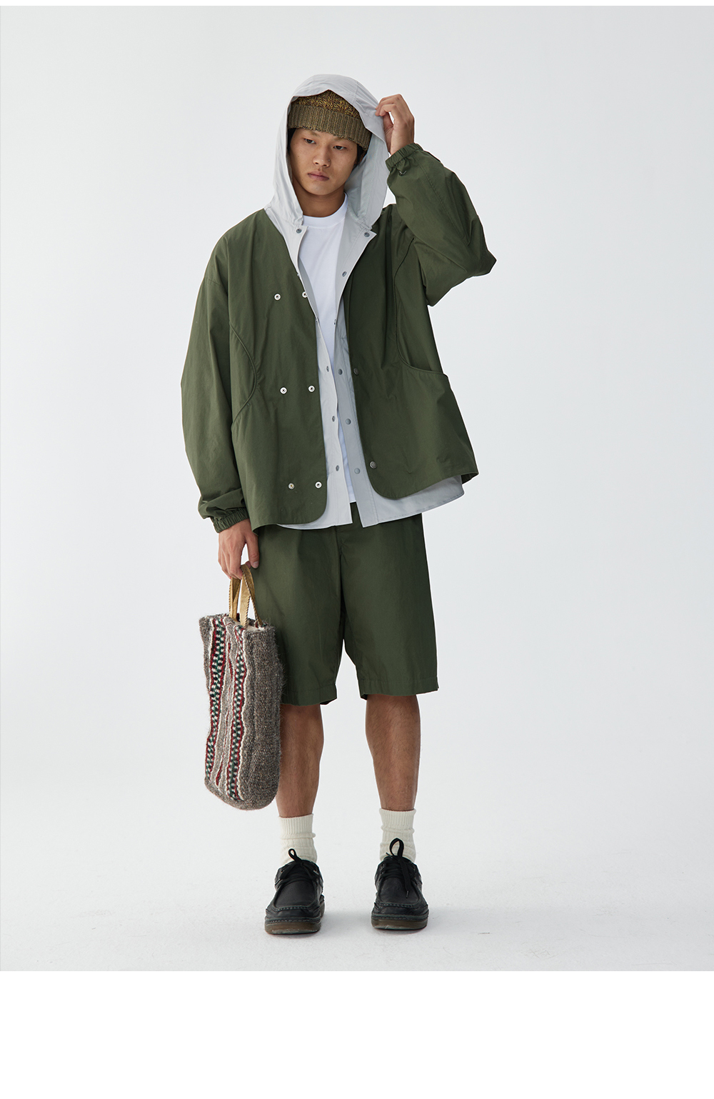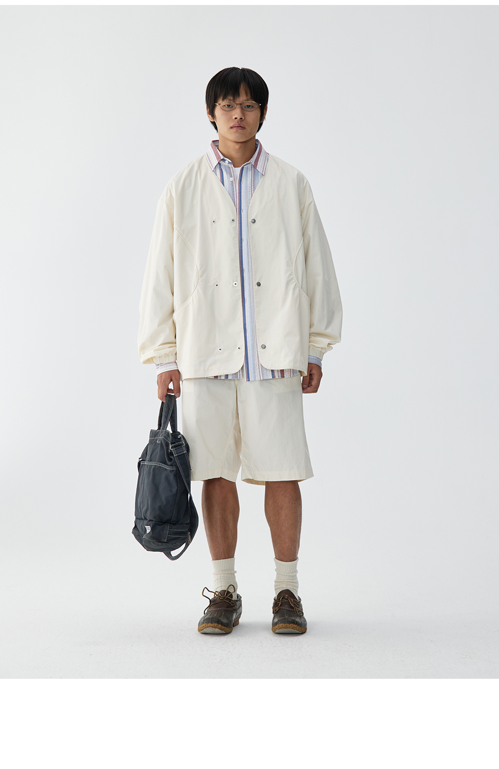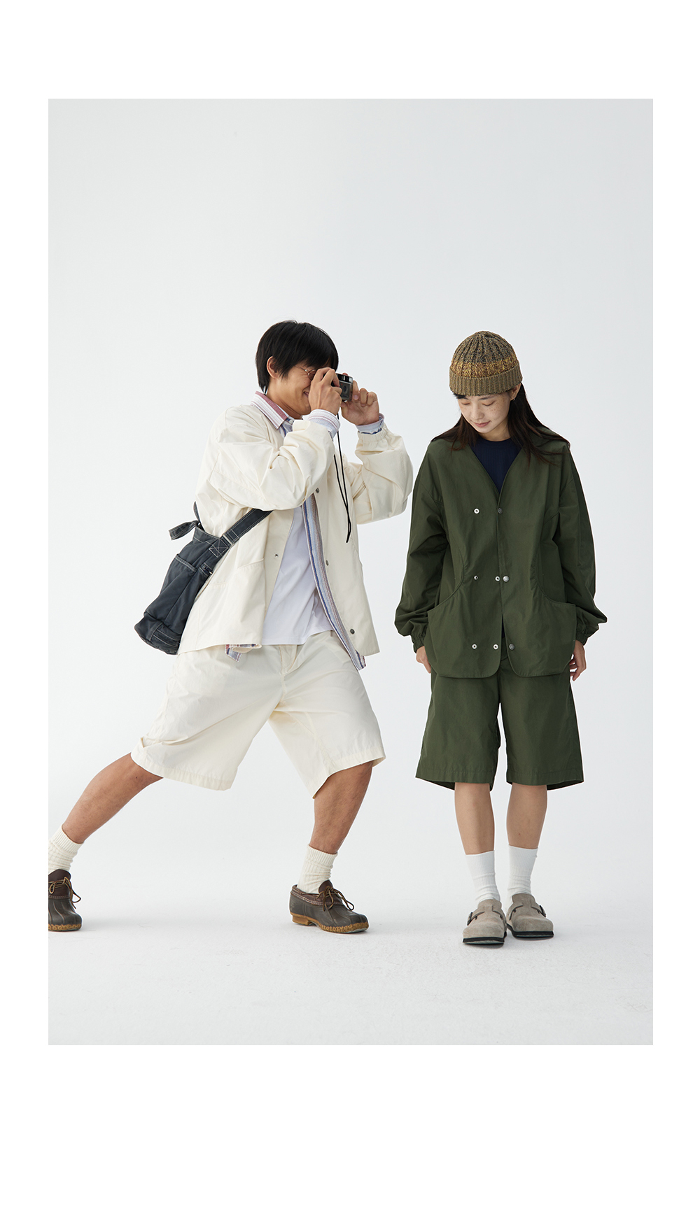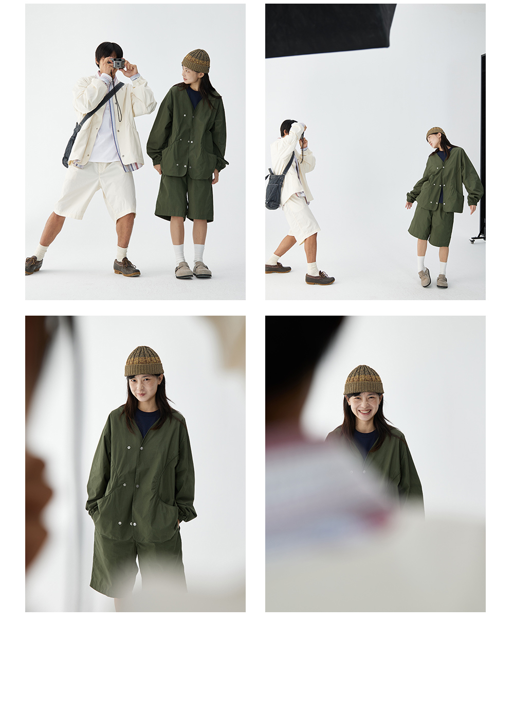 步履不停/4B23106C/纯棉宽松无领开衫长袖外套