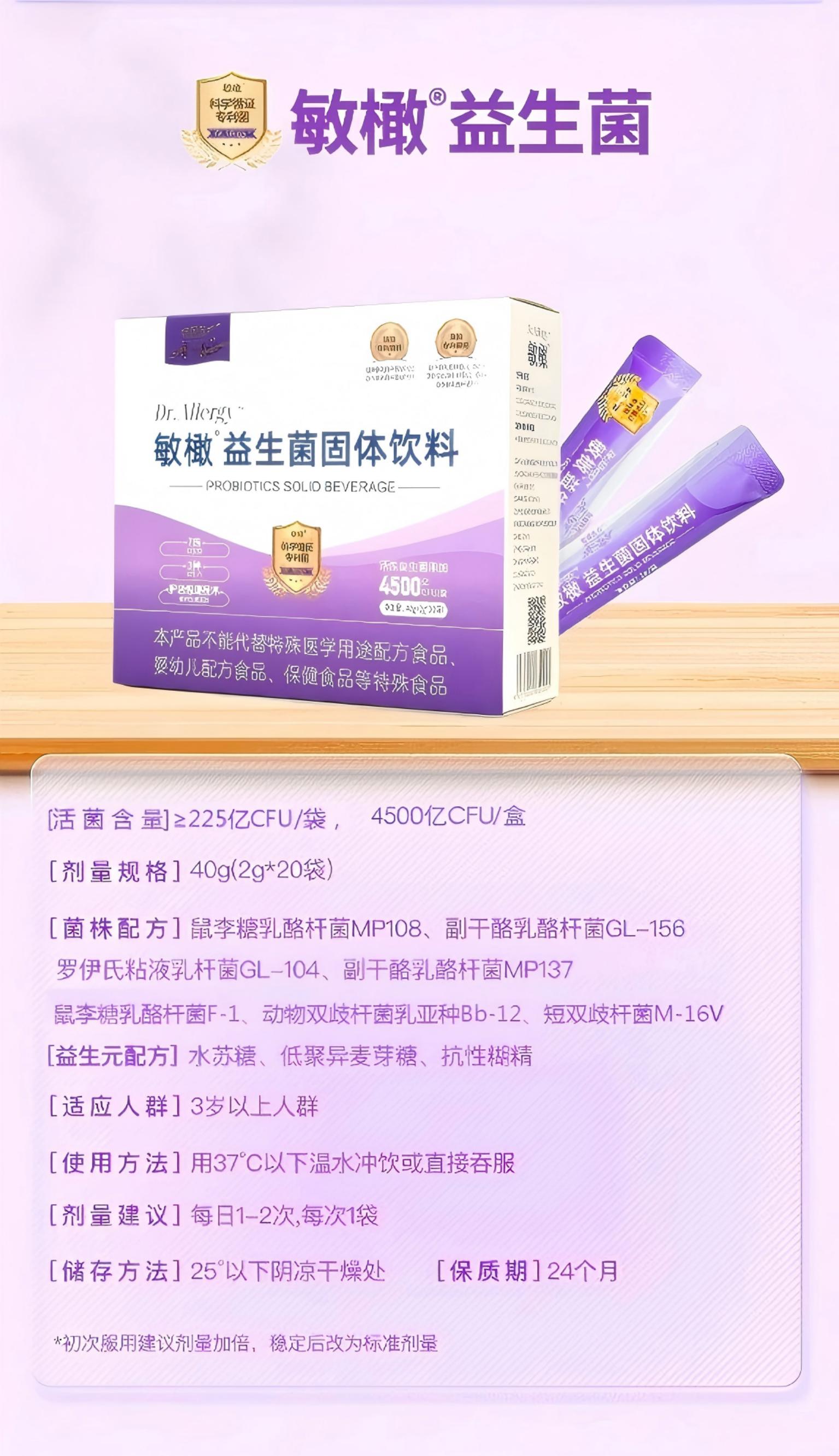 【针对人群】3 岁以上存在过敏或肠道问题的人群 成人也适合