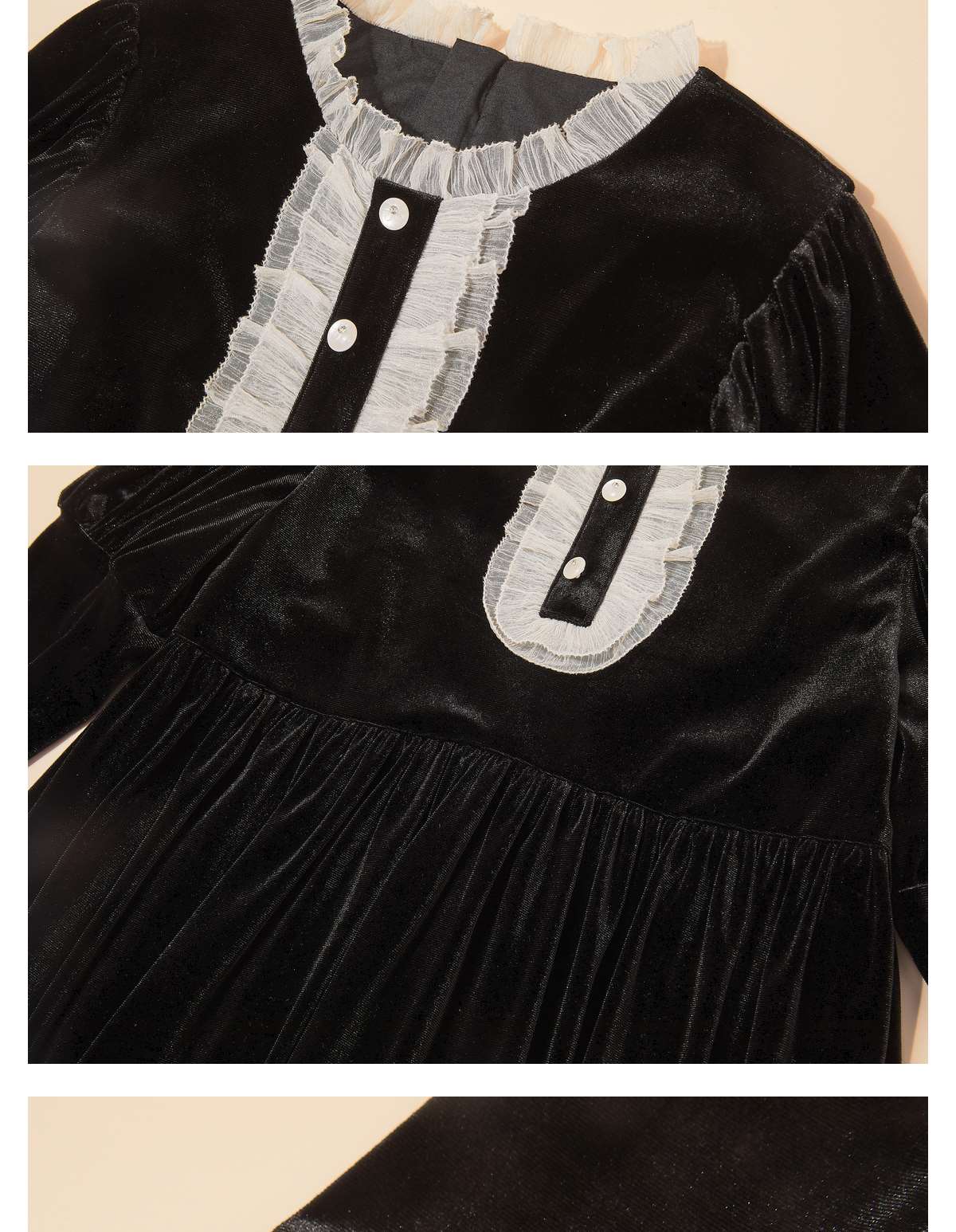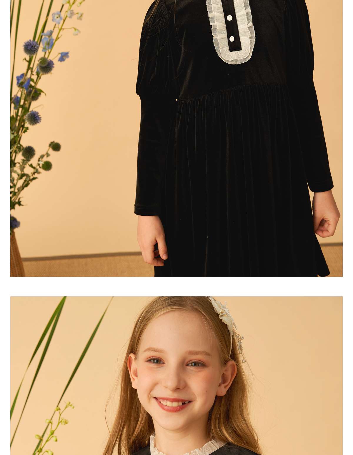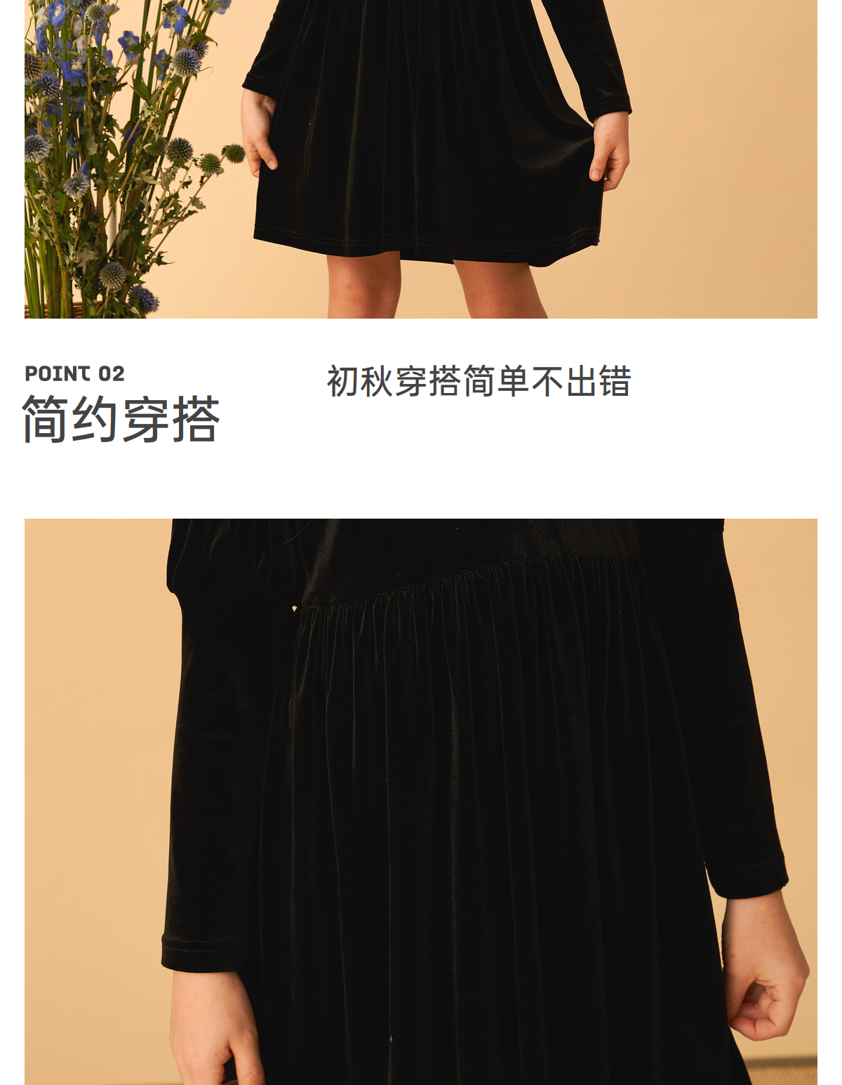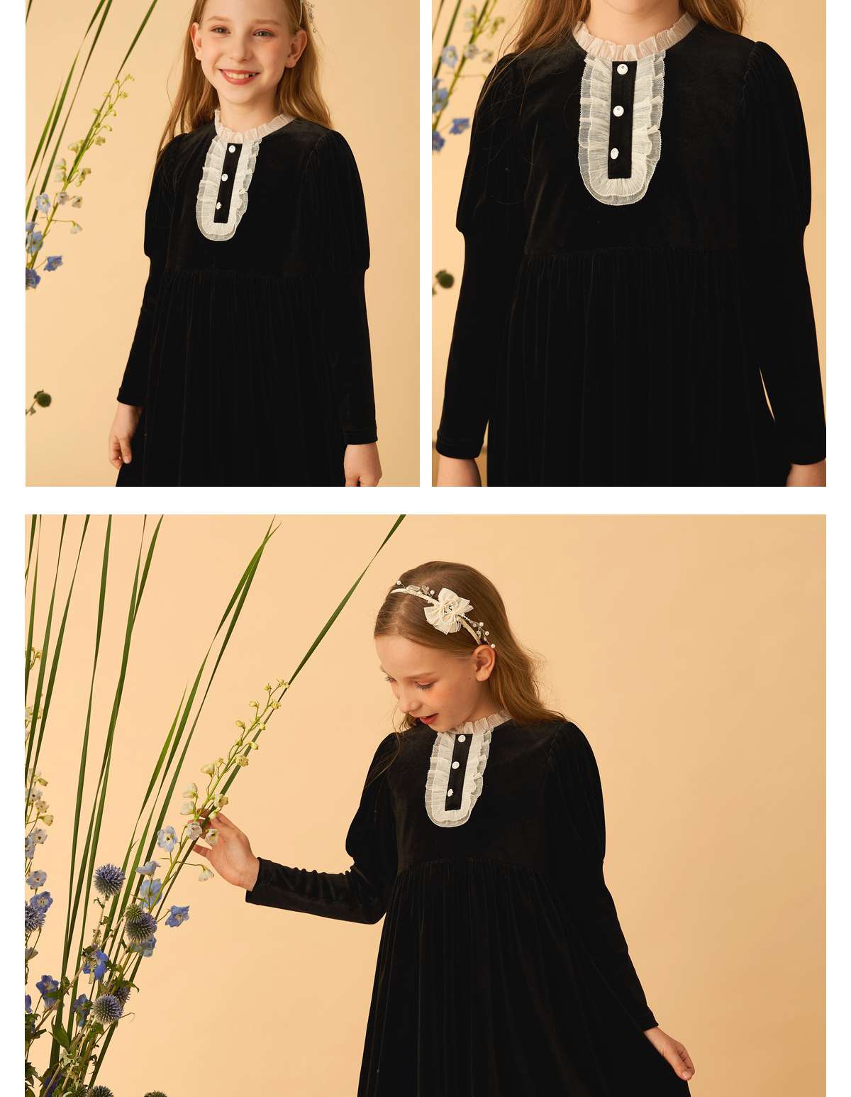 littletime秋季女童赫本风小黑裙2022新款女大童灯笼袖丝绒连衣裙