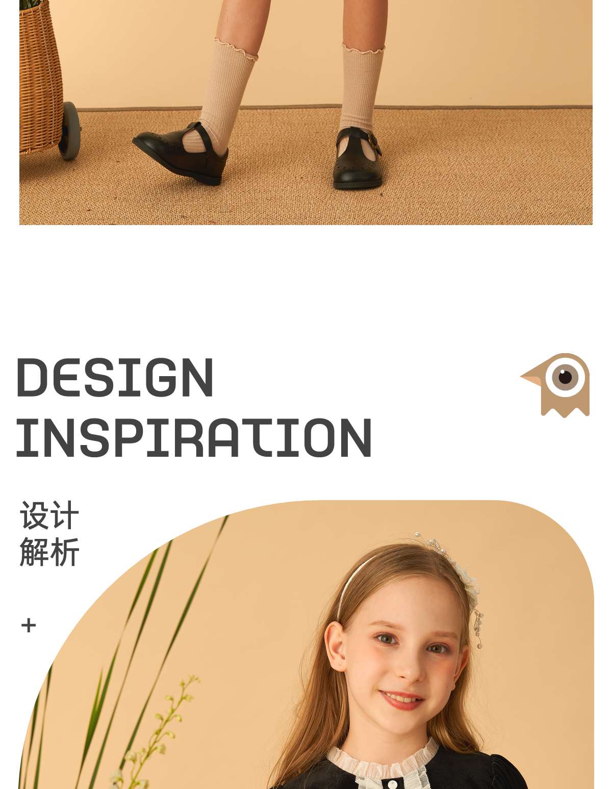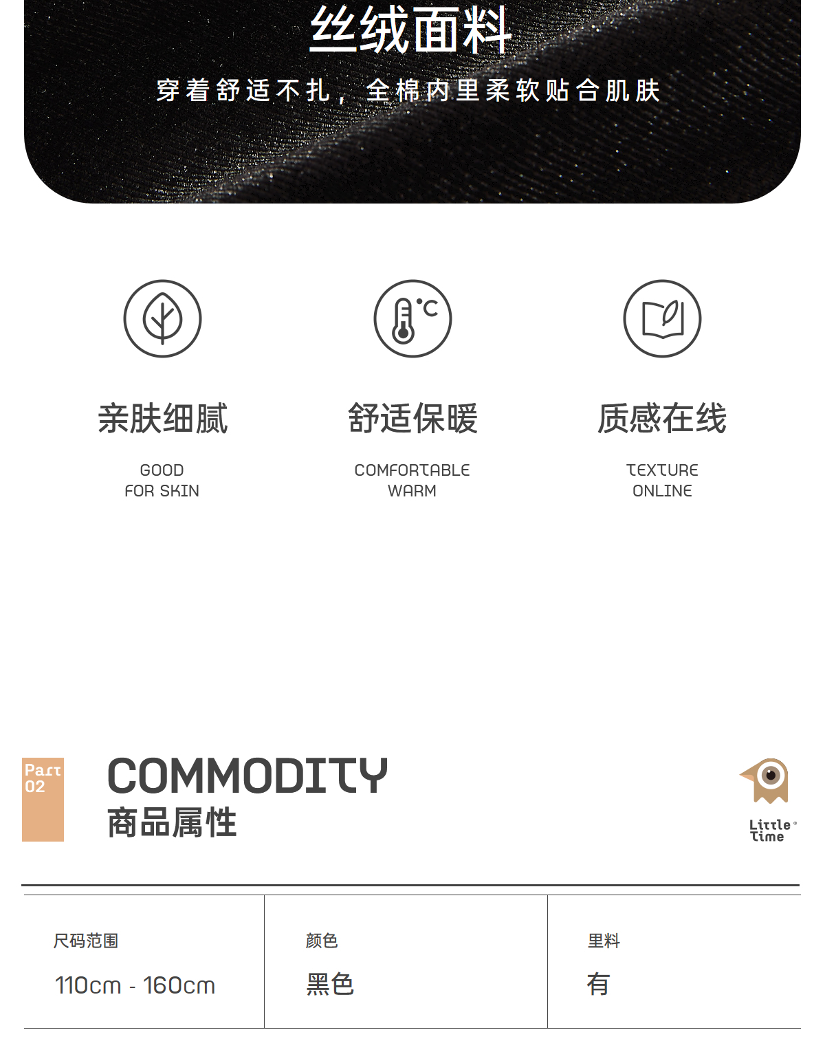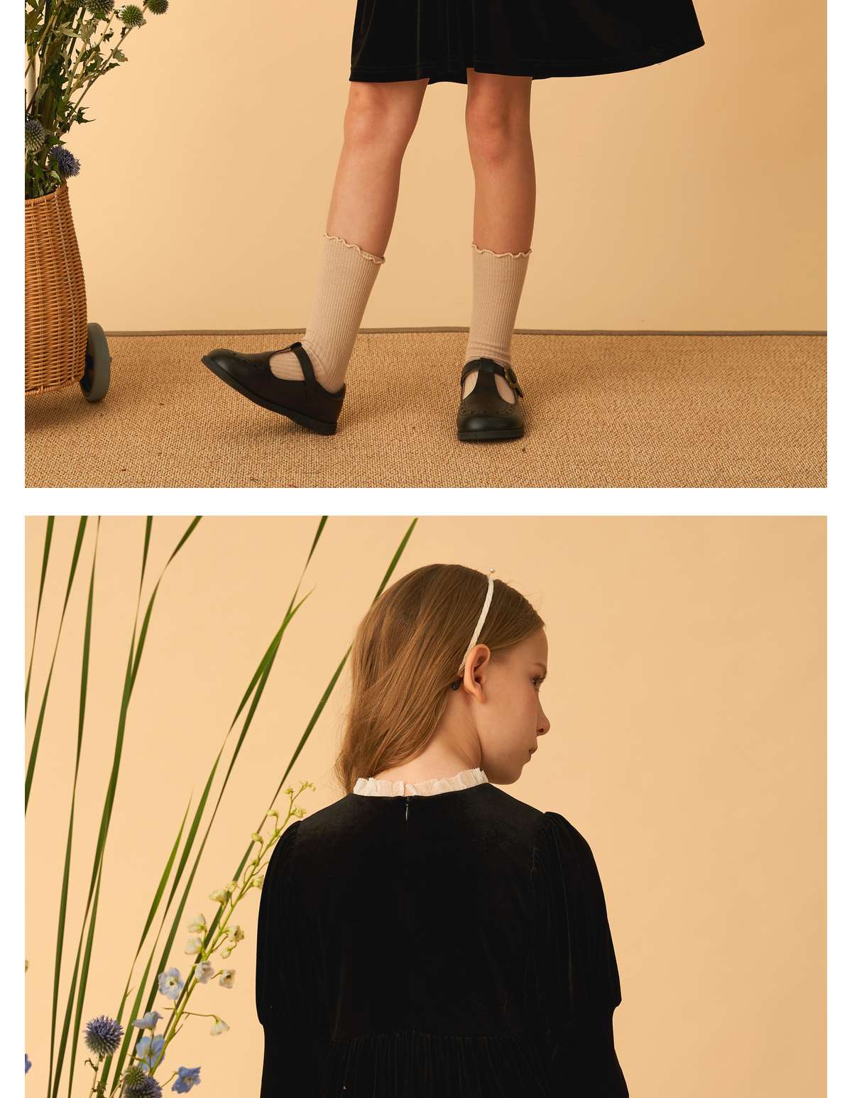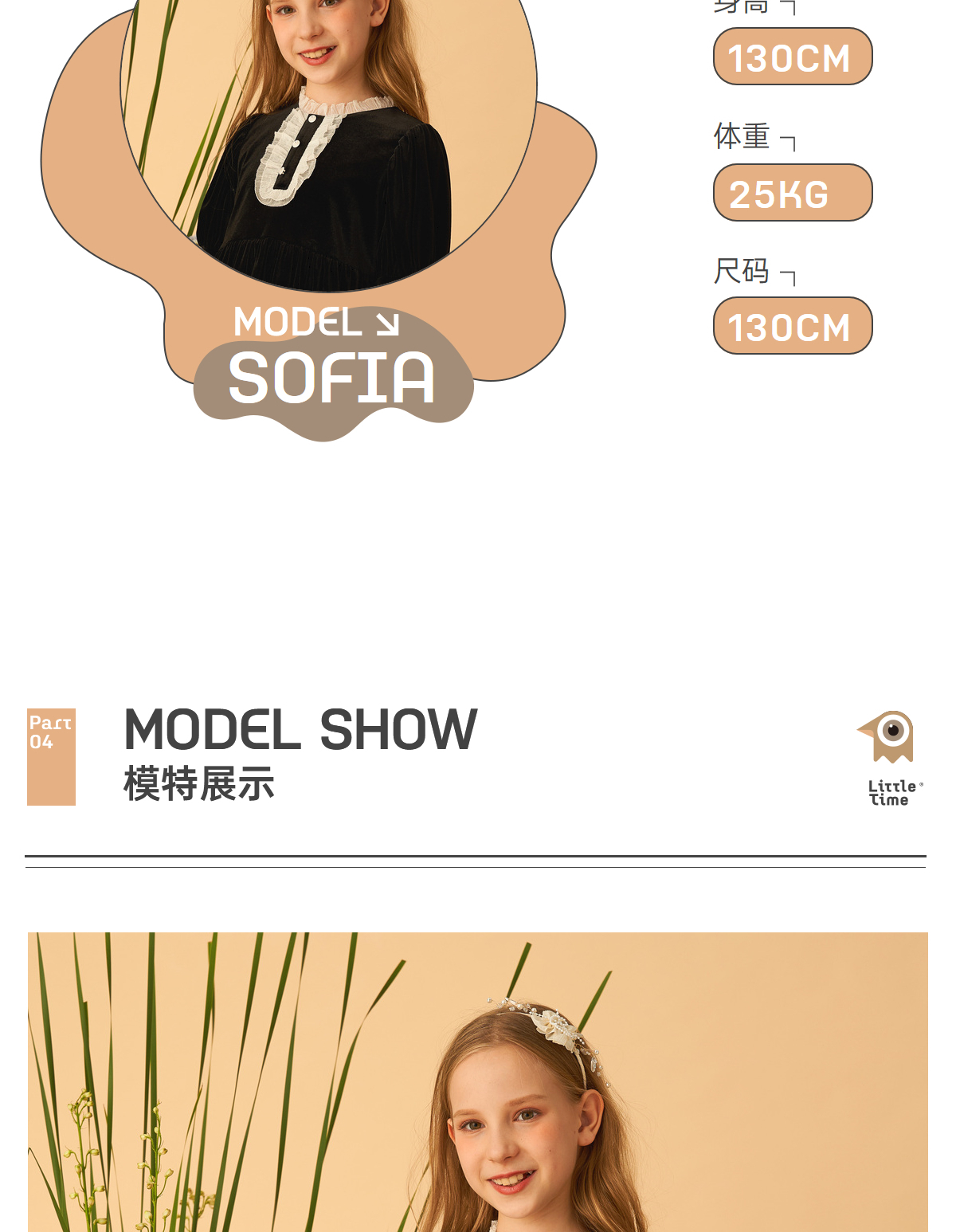 littletime秋季女童赫本风小黑裙2022新款女大童灯笼袖丝绒连衣裙