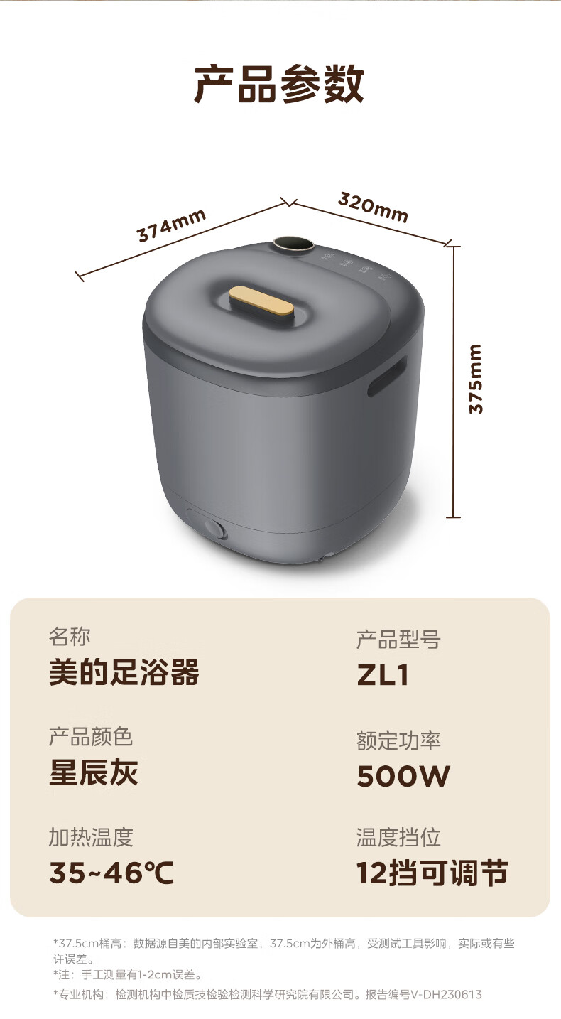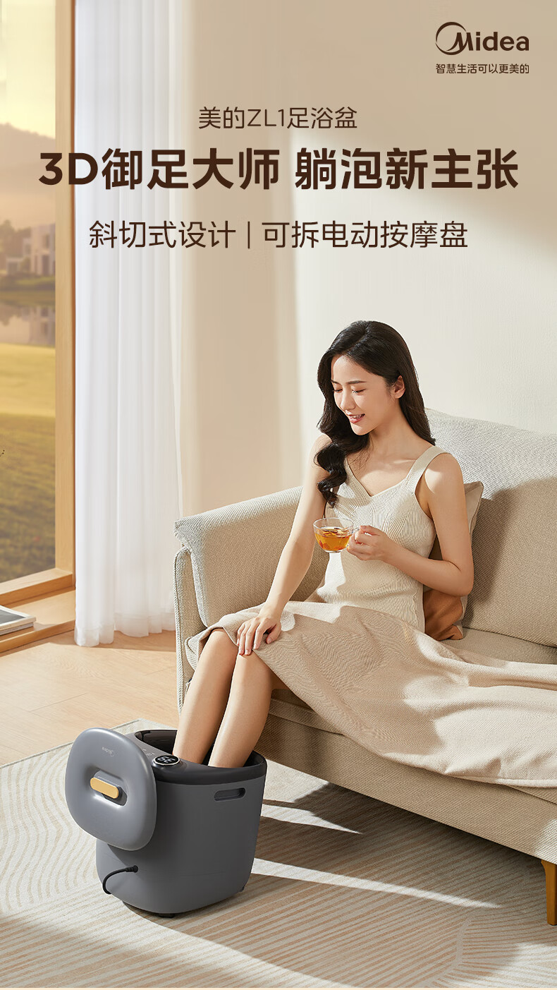 美的 ZL1 泡脚桶足浴盆全自动按摩洗脚盆电动加热恒温足疗高深桶中秋送长辈父母送女友高端生日礼物