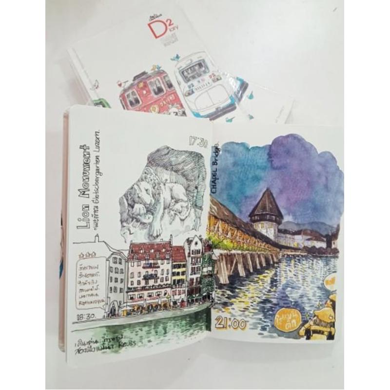 Diary 2 (D2) หนังสือภาพสีน้ำ บันทึกการเดินทางในชุด " ศศิ สเก๊ตช์บุ๊ค การเดินทางของพระจันทร์ 34 วันในยุโรป หนังสือชุดนี้เล่าตั้งแต่การเดรียมตัวเดินทาง จนถึงเรื่องและภาพประทับใจ โดยการใช้ภาพสเก๊ตช์และสีน้ำ