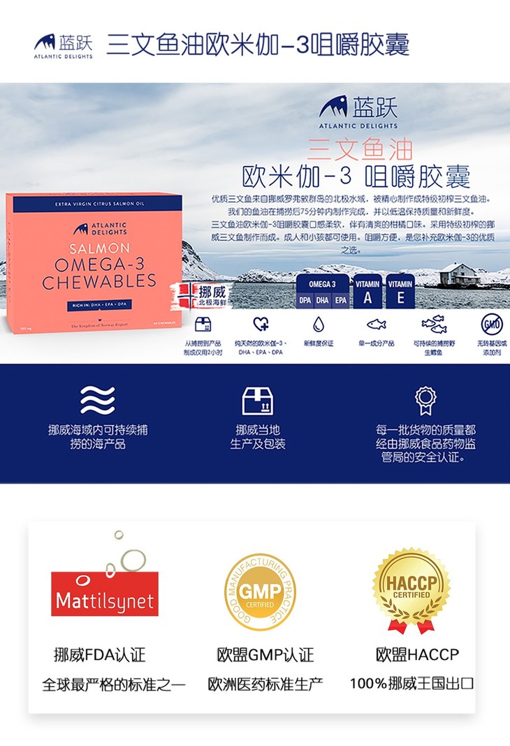 【保税仓】挪威蓝跃Atlantic delights 三文鱼欧米伽- 60粒