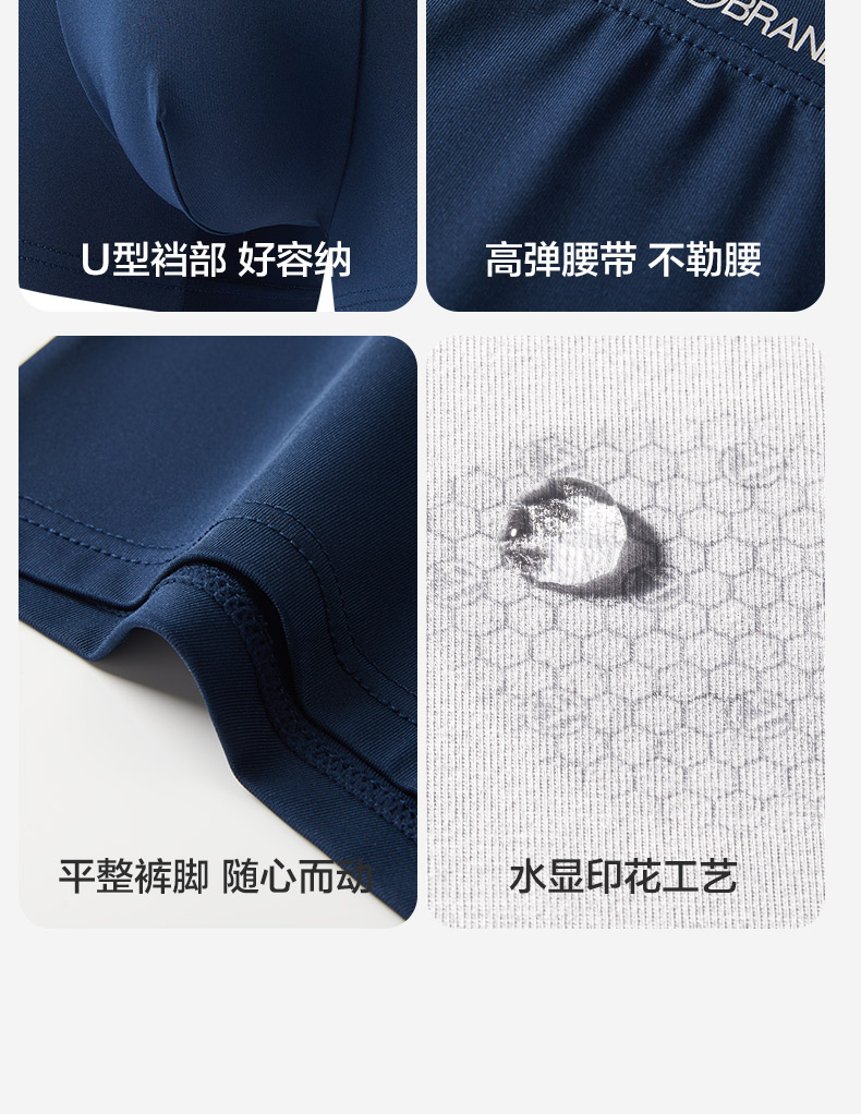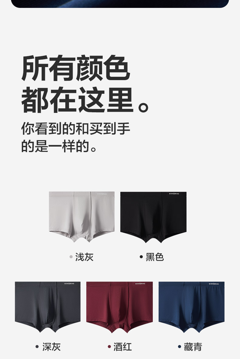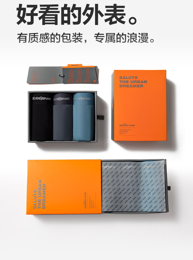 【礼盒3条装】柒牌男士内裤四角短裤抗菌消臭牛奶丝内裤吸湿排汗中腰平角短裤衩 124F70890