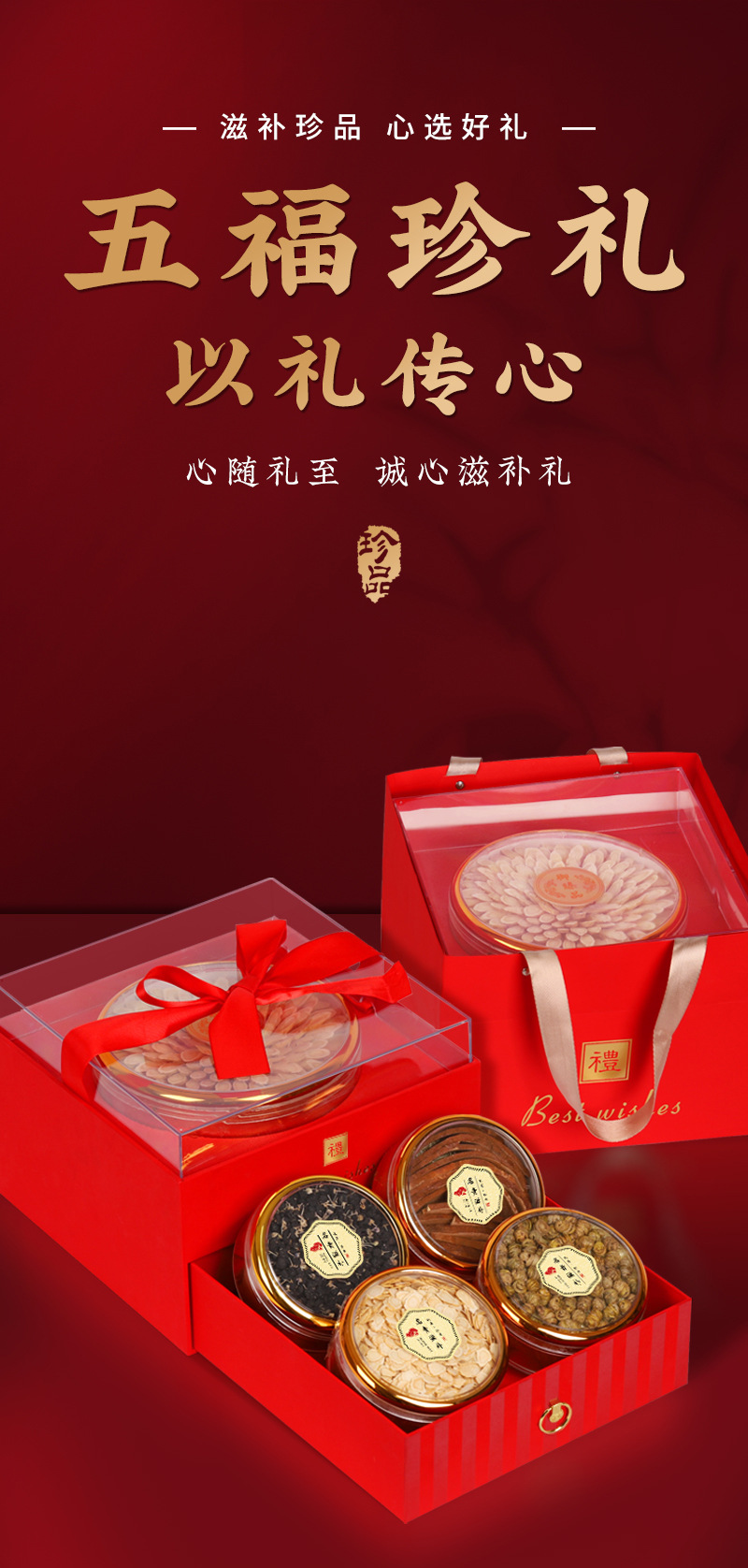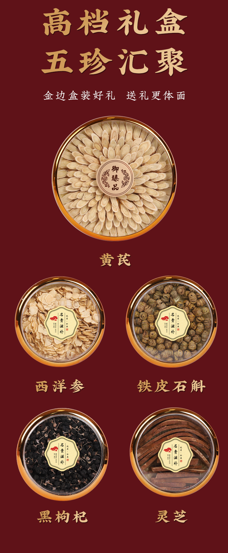 【五福珍礼节日滋补】春节新年送礼佳品 黄芪西洋参灵芝铁皮石斛黑枸杞 养生滋补礼盒