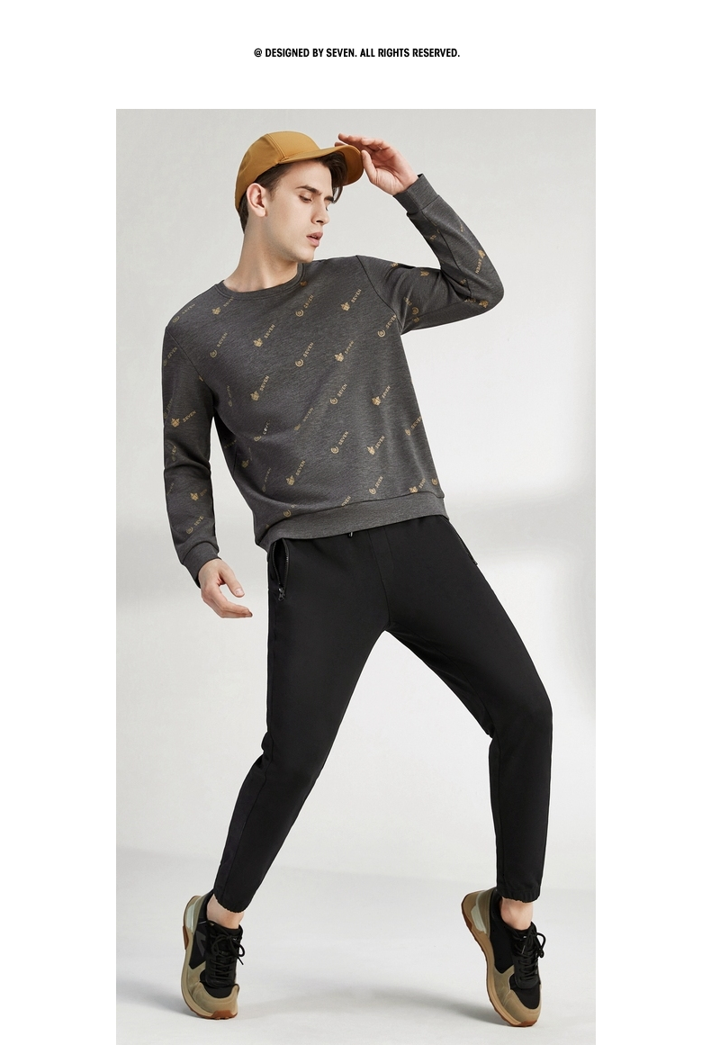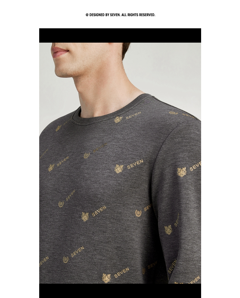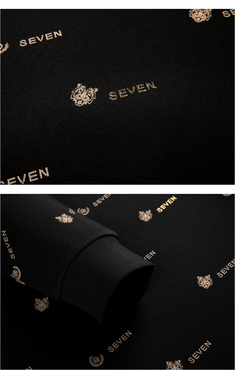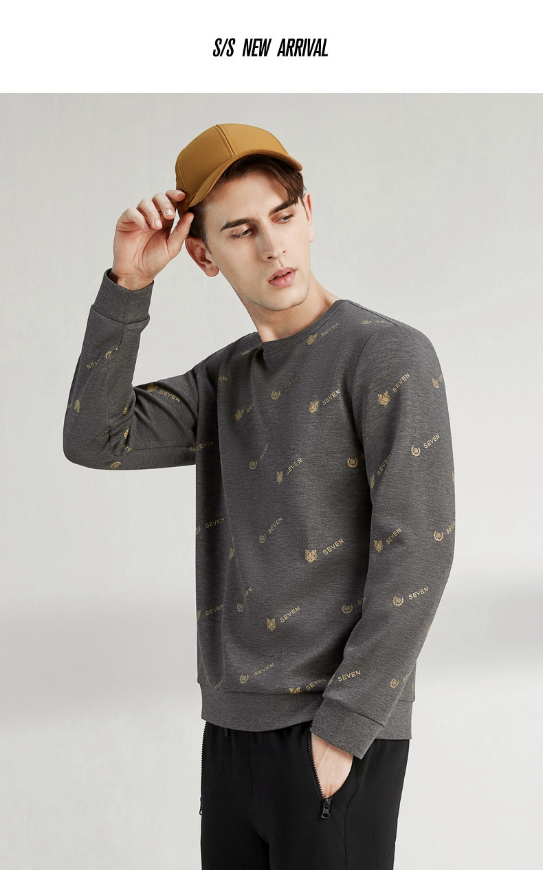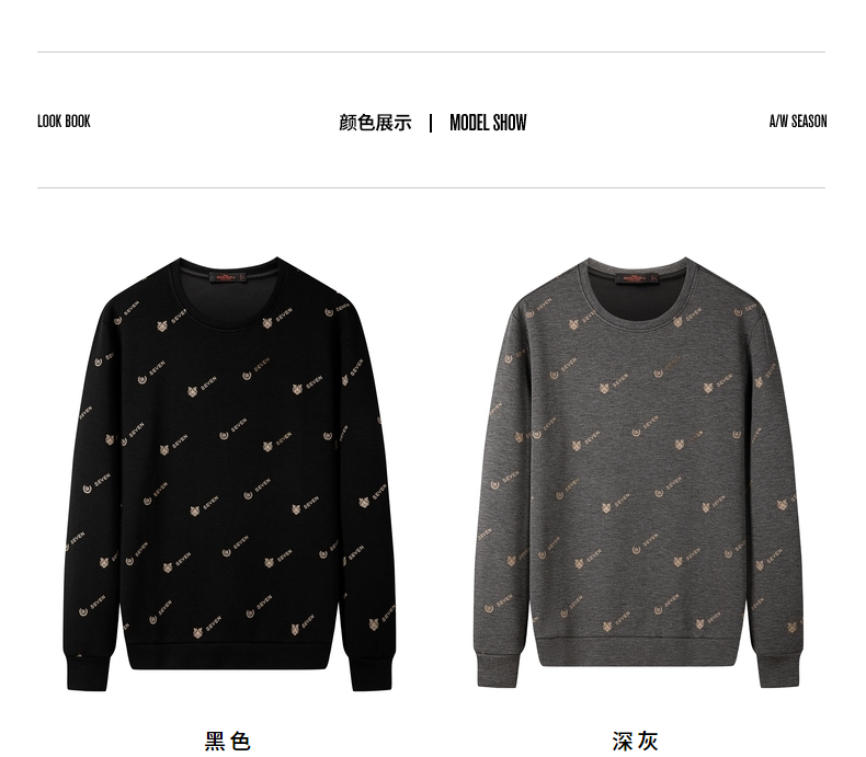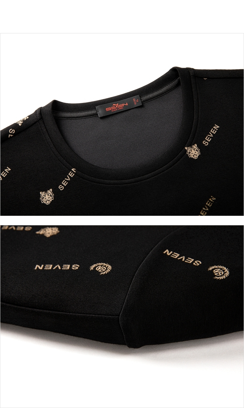 【特价】柒牌卫衣男新款时尚潮流青年老虎圆领印花黑色春秋长袖套头衫 122W70150