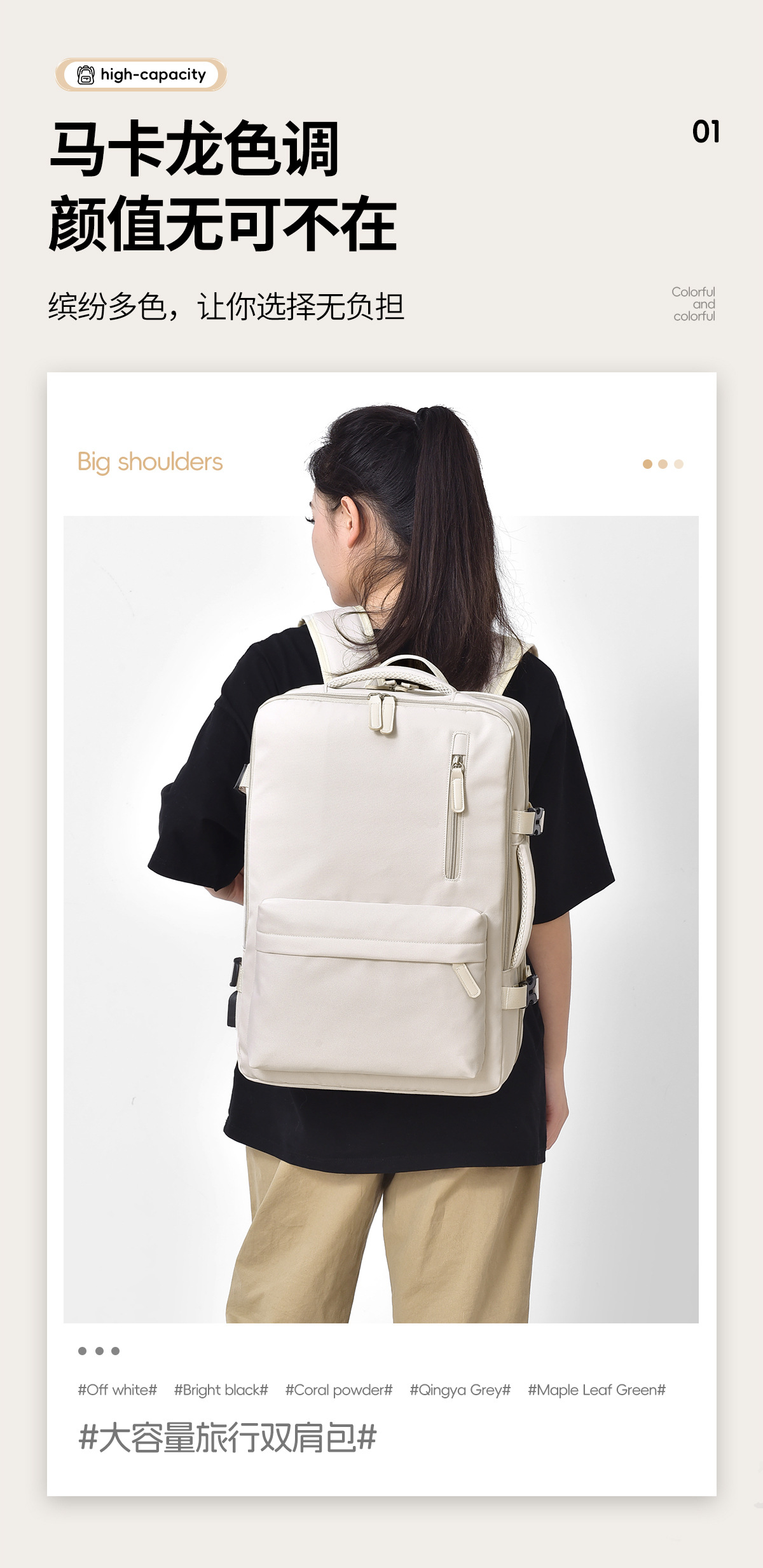 国庆假期出游【马卡龙色扩容双肩包】男女生大容量轻便旅行背包 多功能大学生书包