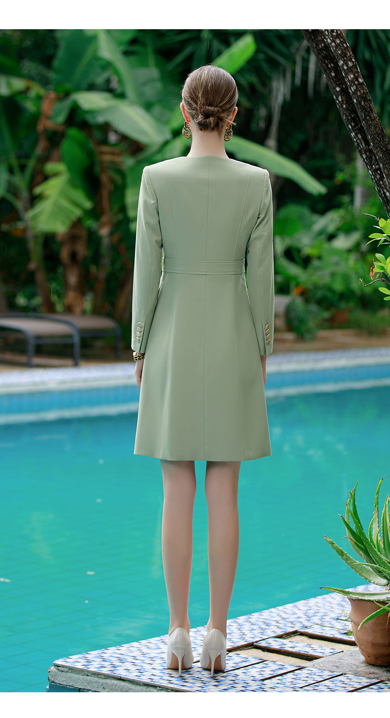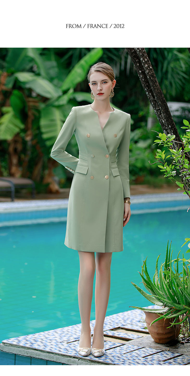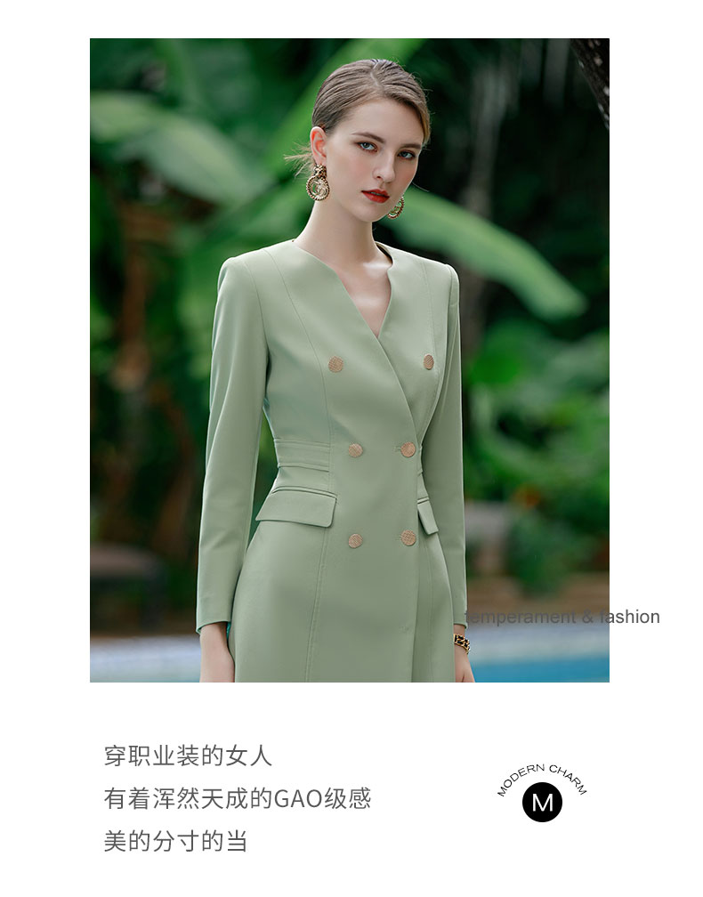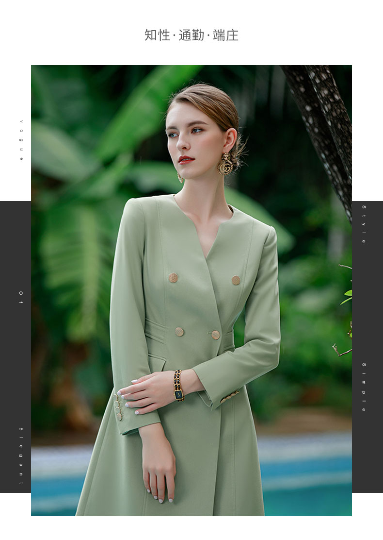 IWY/御姐范西装连衣裙女春绿色高级感正式场合a字裙播音主持人正装Q839