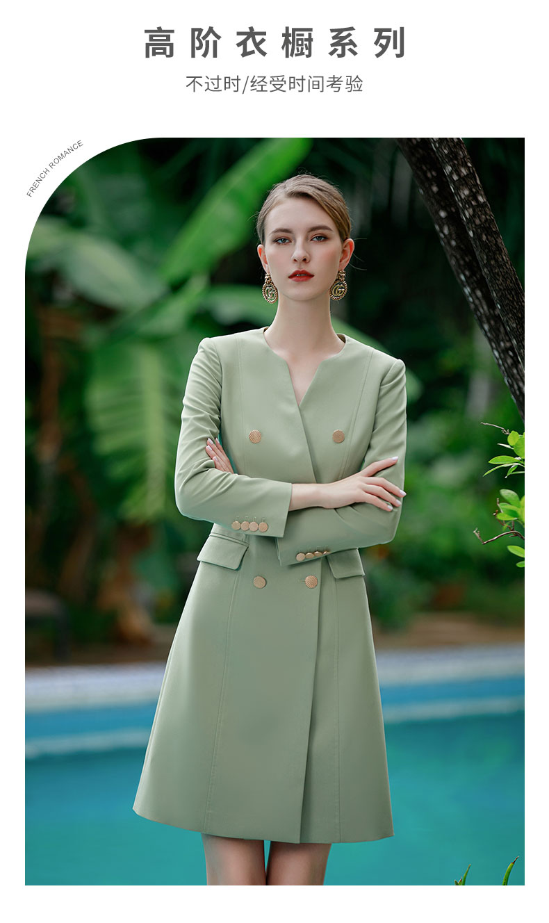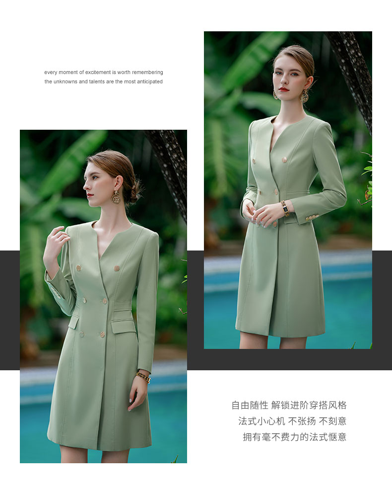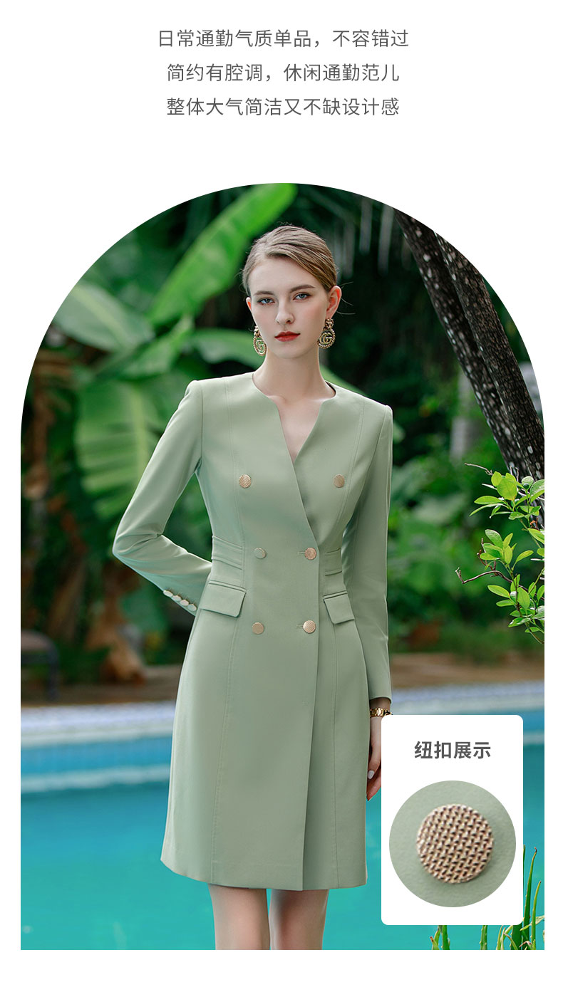 IWY/御姐范西装连衣裙女春绿色高级感正式场合a字裙播音主持人正装Q839