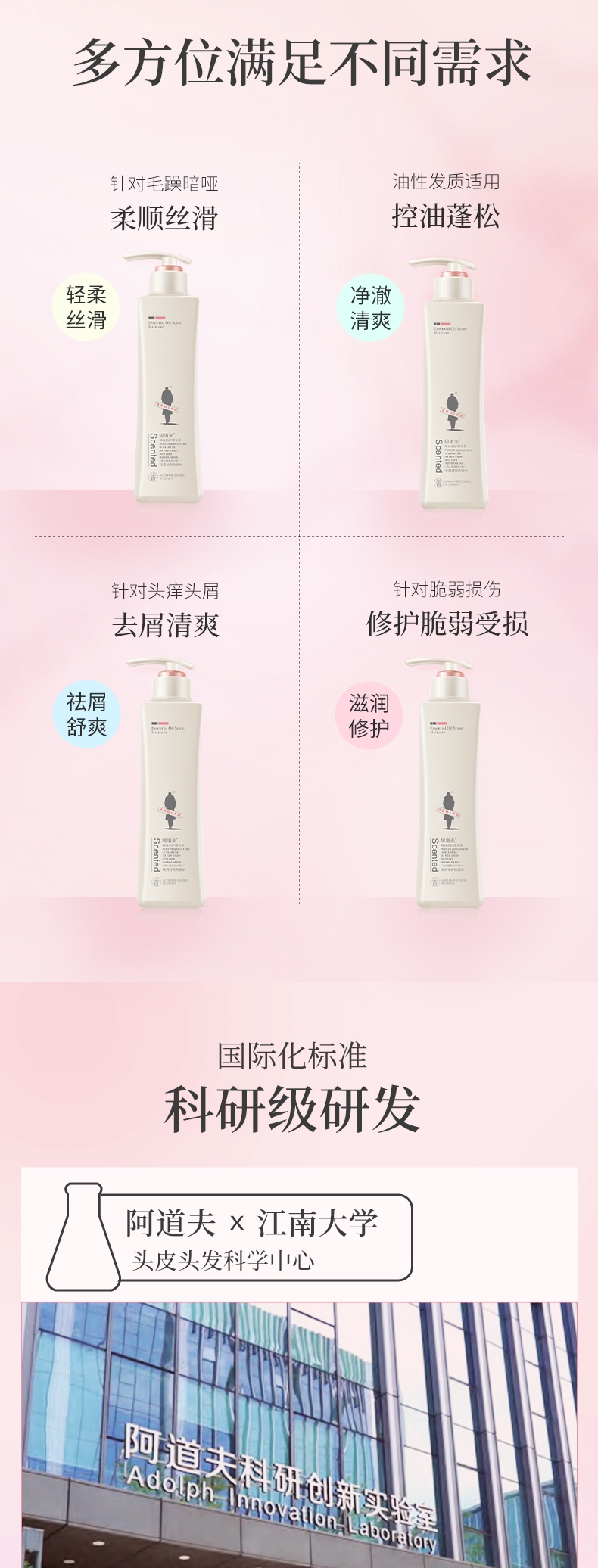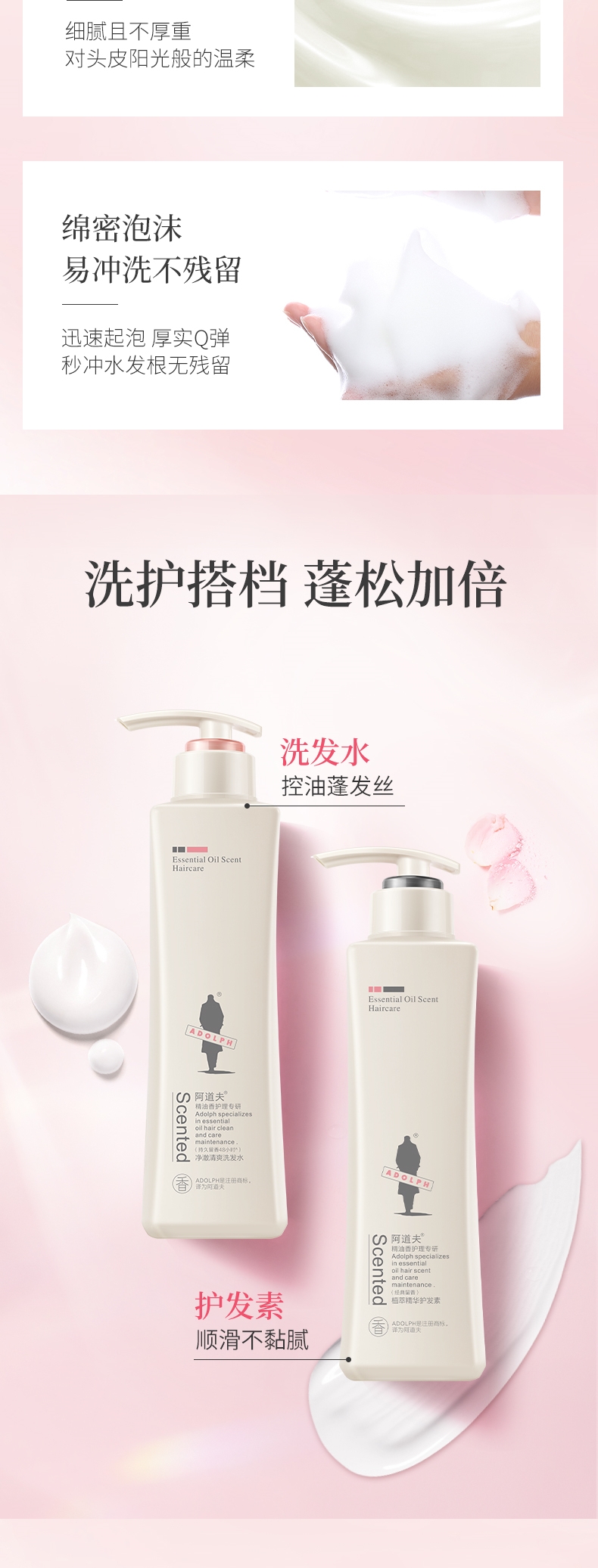 阿道夫精油香护理专研洗发水248ml 净澈清爽