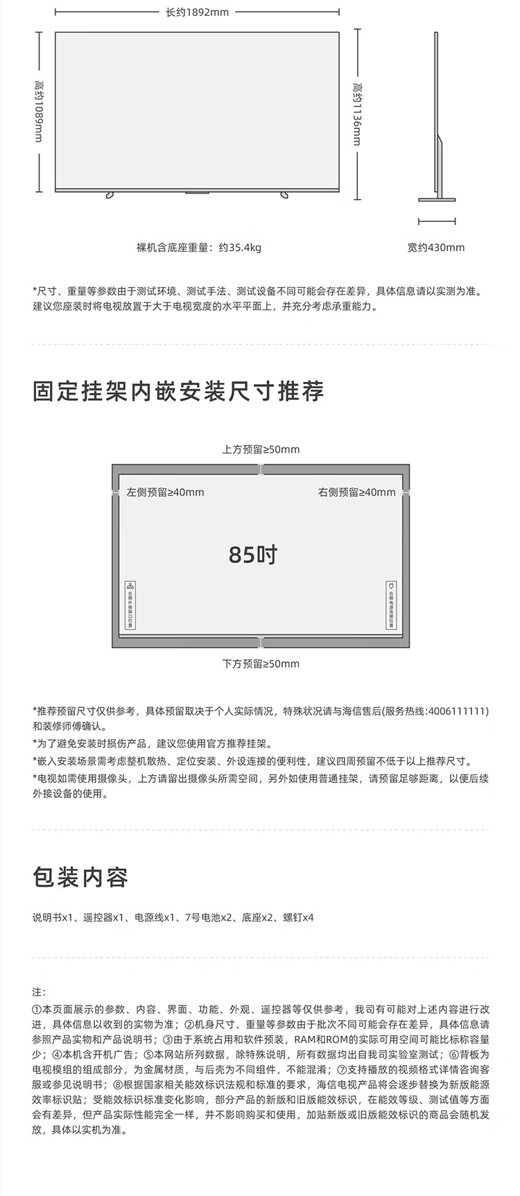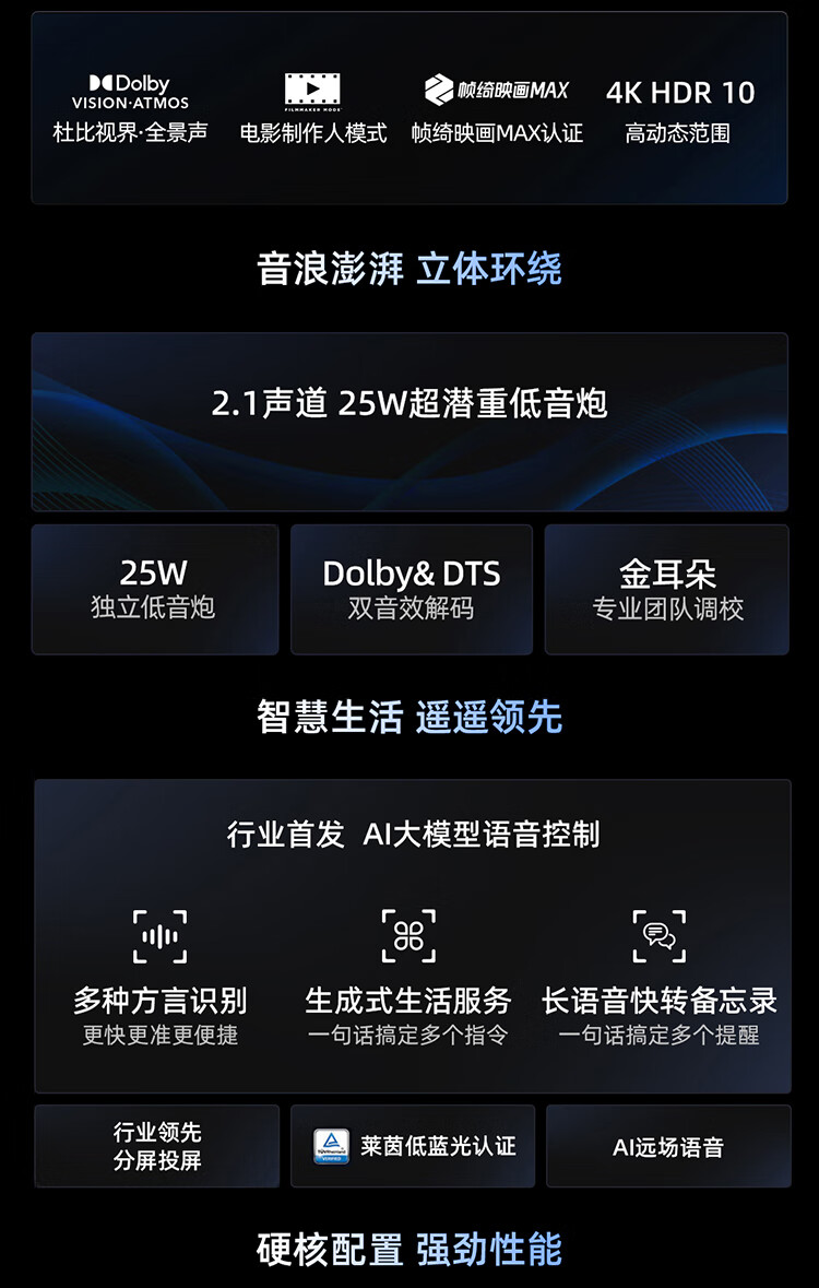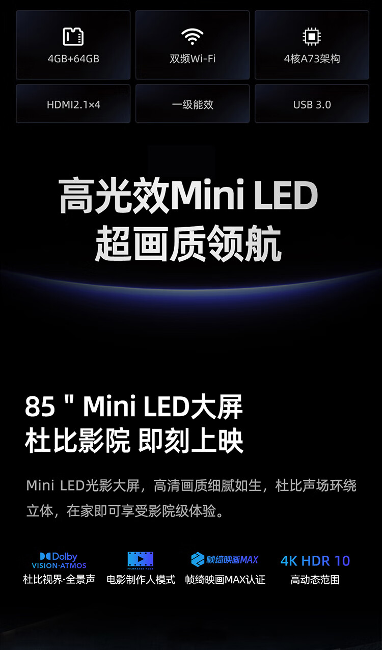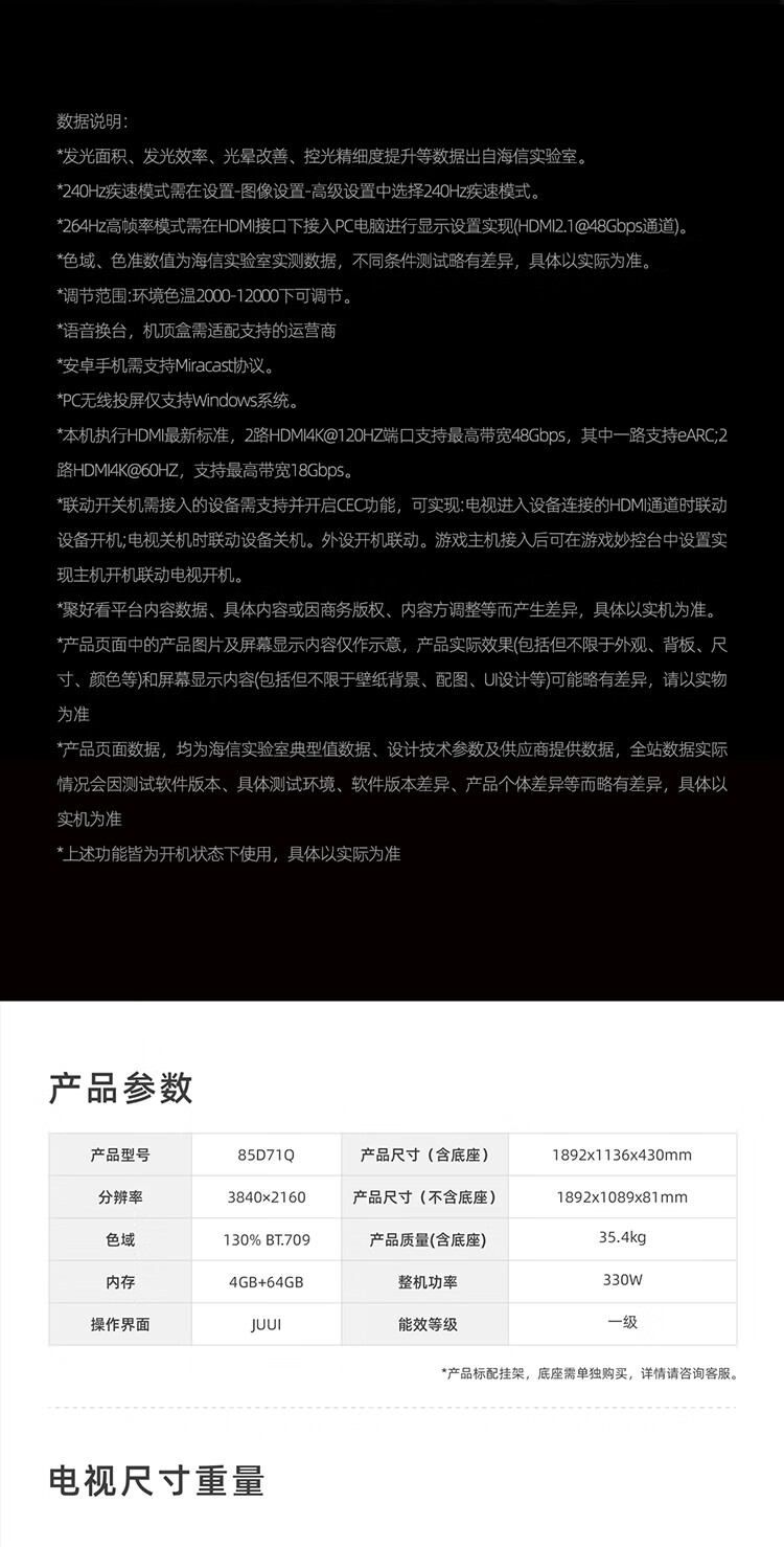 海信海信电视 85D71Q Mini LED 一级能效 264Hz高刷 352分区 1200nits 2.1声道 节能补贴以旧换新