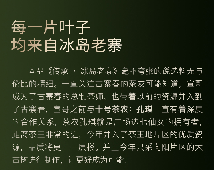 【2025年春茶】【冰岛老寨】普洱茶界的天花板,茶人梦寐以求的冰岛老寨!每一片叶子都来自冰岛老寨10号茶农古茶园,单株级采摘制作标准!带NFC防伪 357克/饼,5饼/提,拍5发6 拍20发25