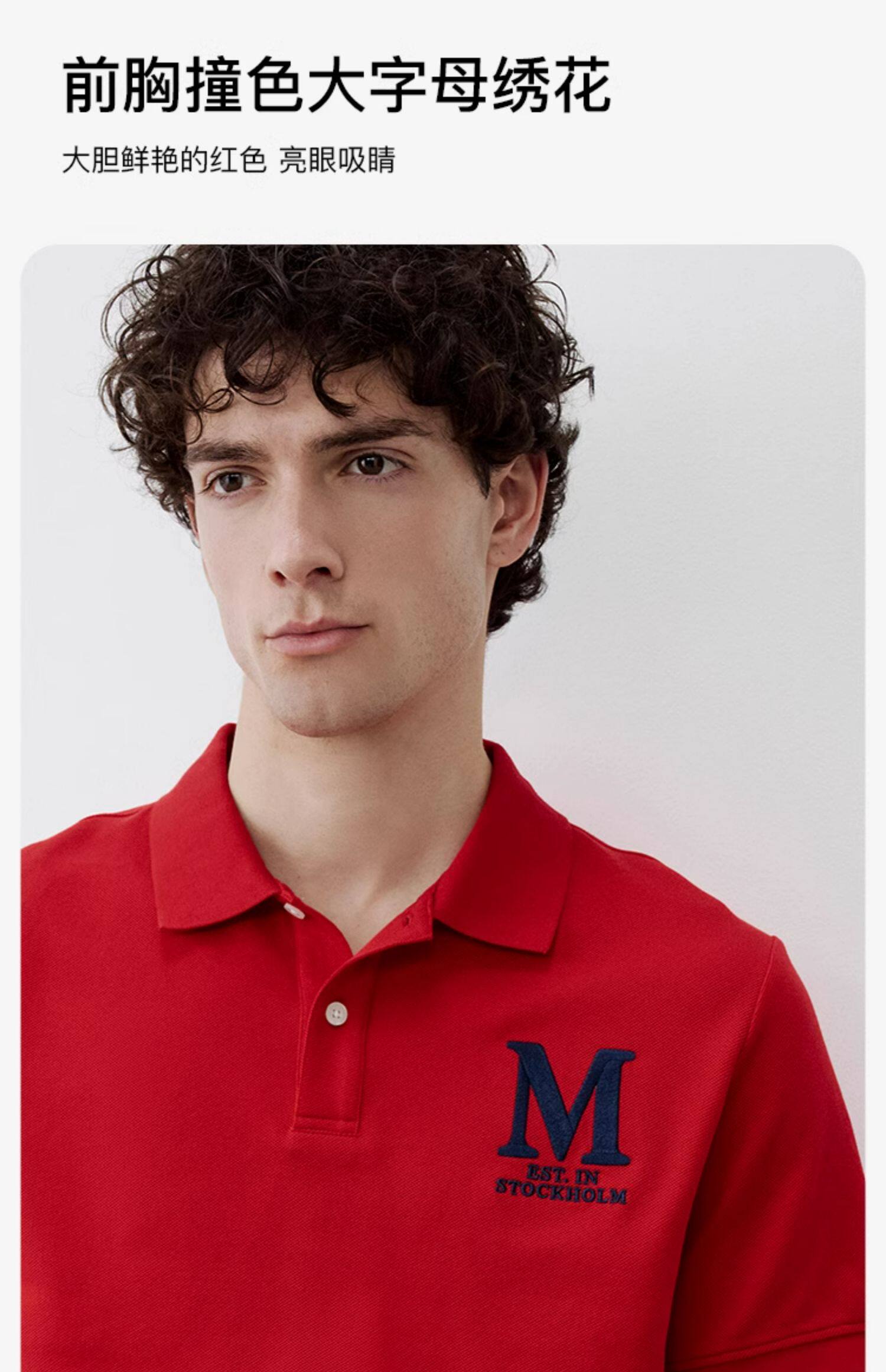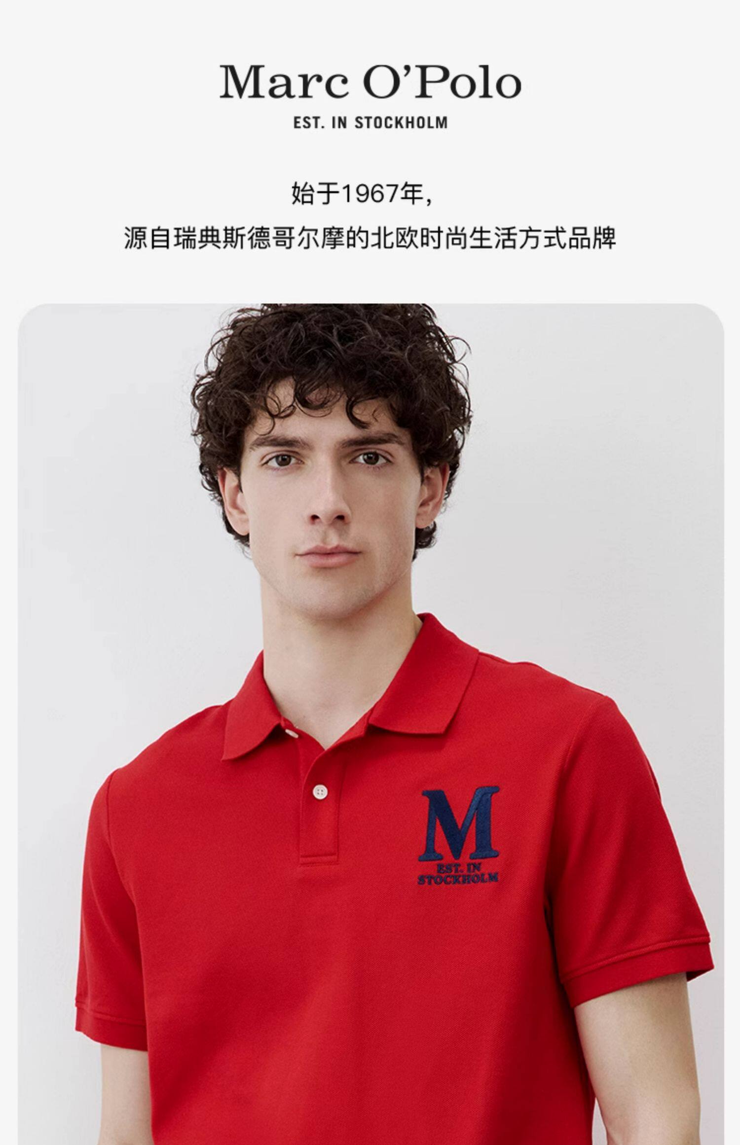 Marc O'Polo/MOP 夏季新款休闲字母绣花短袖宽松透气通勤Polo衫男