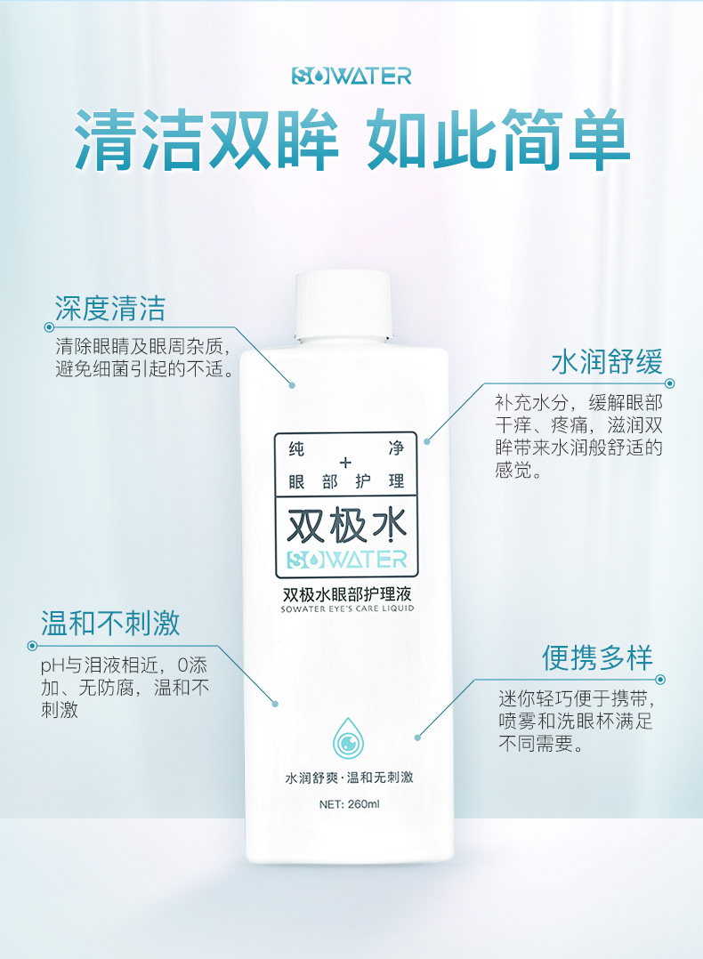 双极水眼部护理液 3瓶套组 0添加无刺激无依赖 抗炎杀菌去痒 缓解眼部疲劳 眼睛护眼
