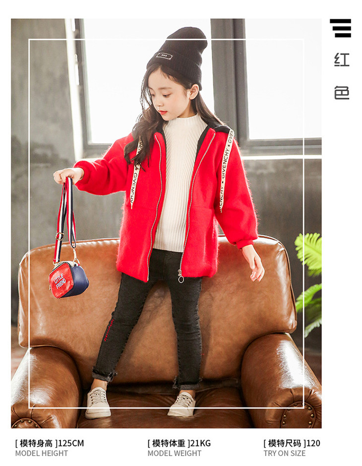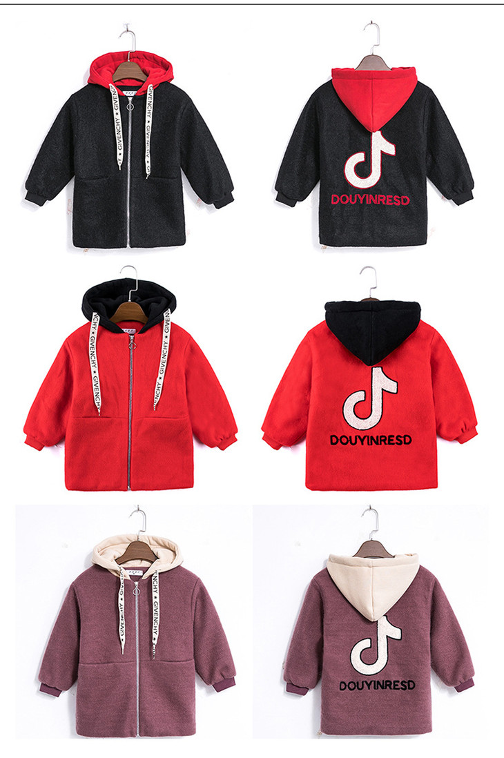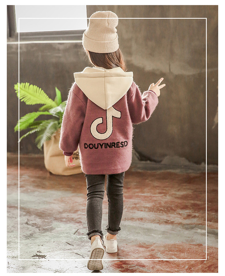 【童装】.冬款女童儿童中大童装抖音呢子夹棉加厚外套