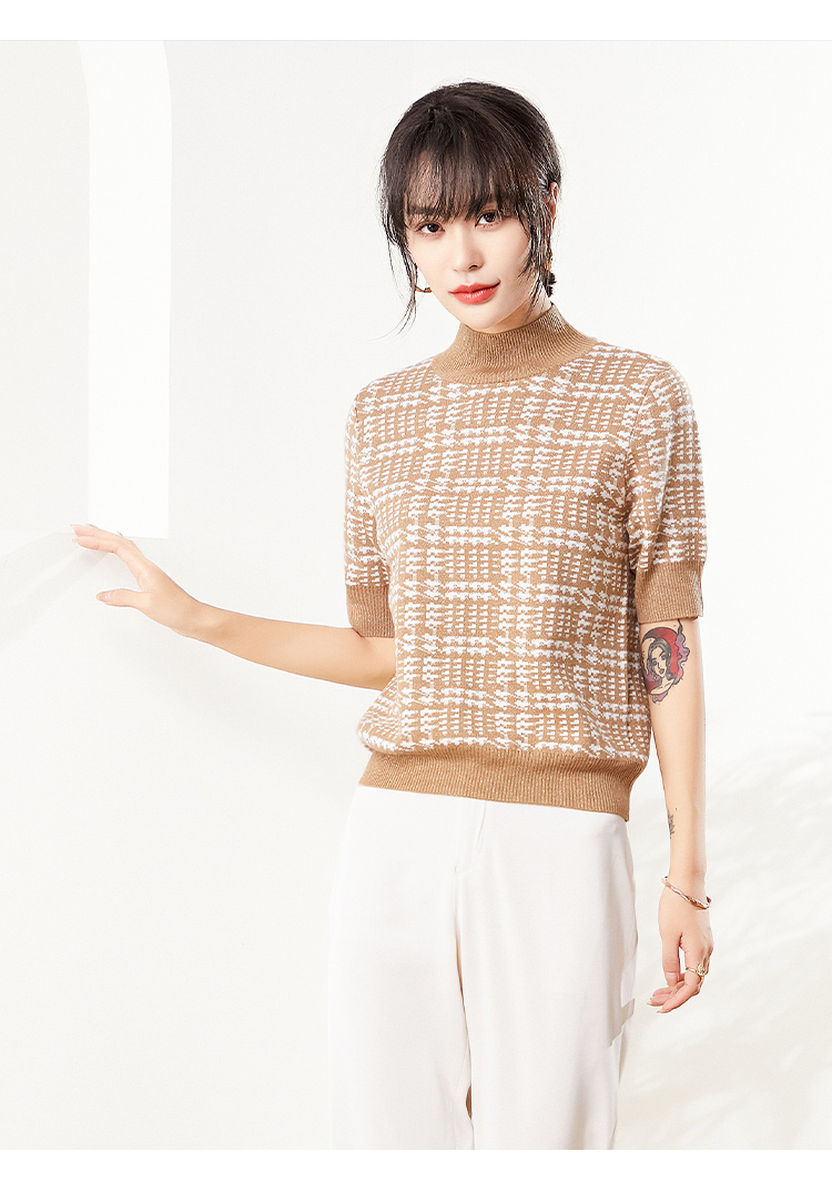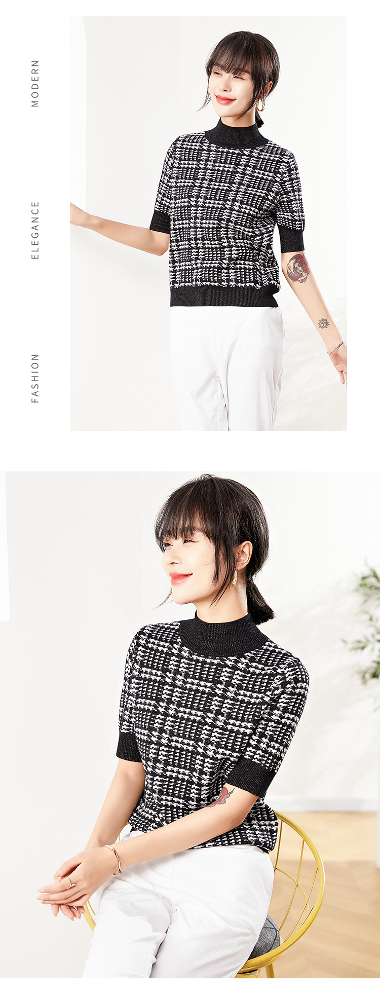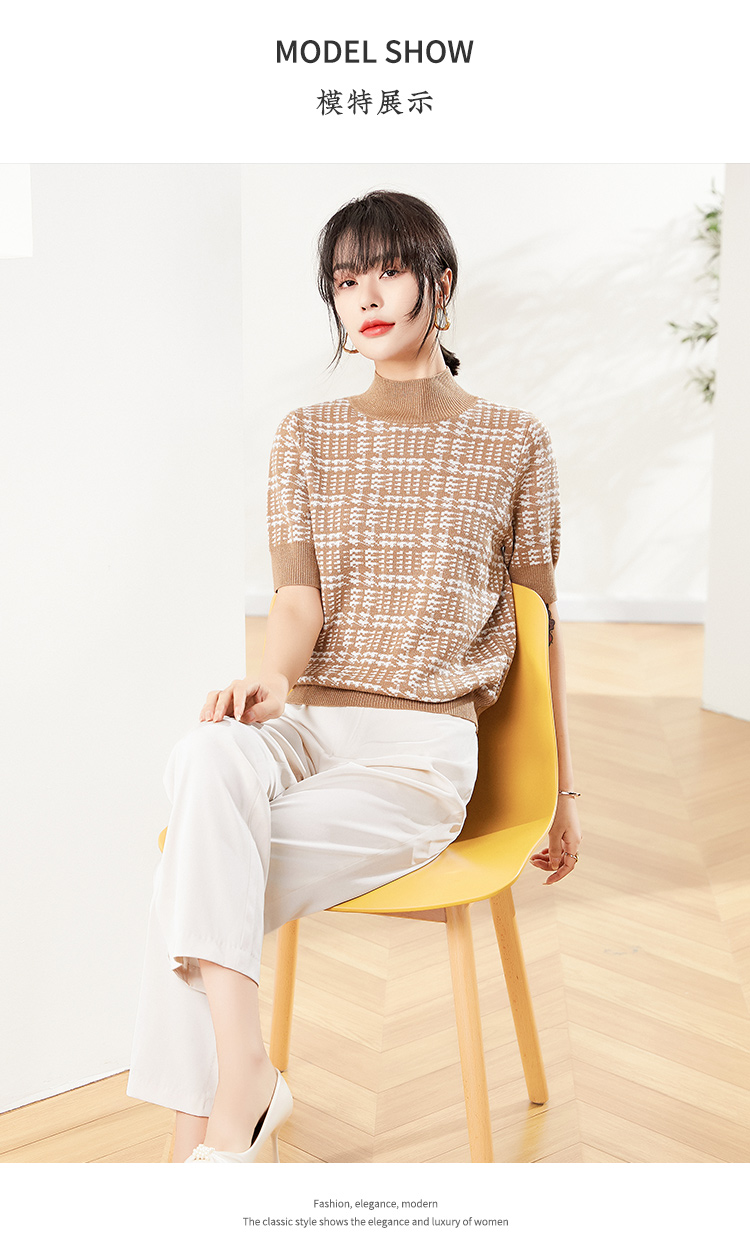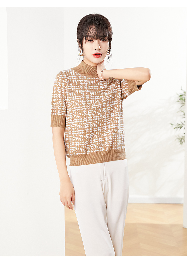佐尔美夏季新款纯色简约气质五分袖针织毛衫E91ZM34
