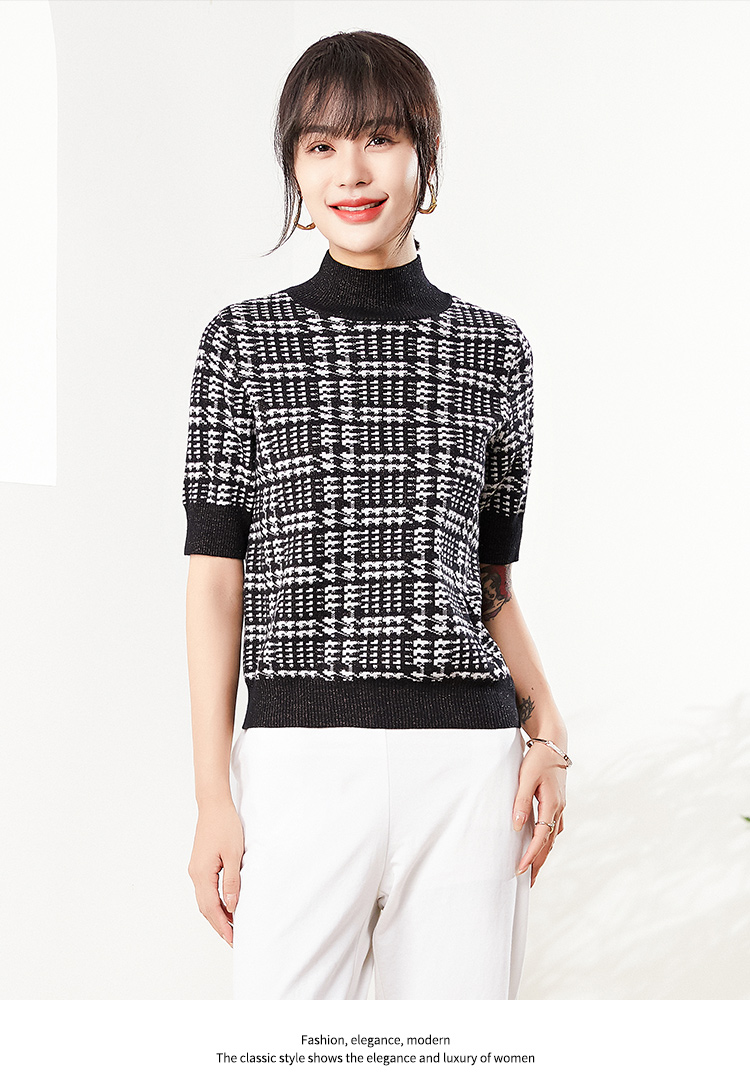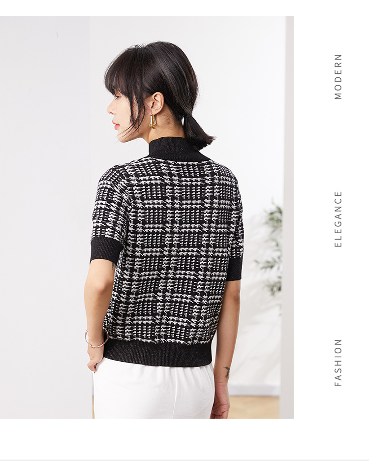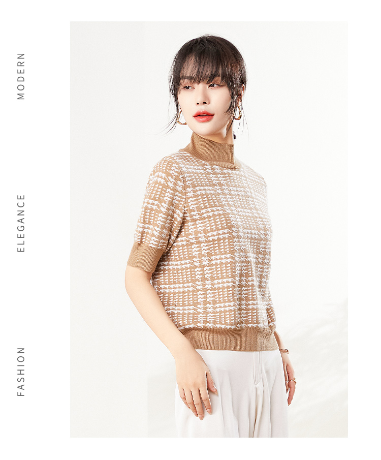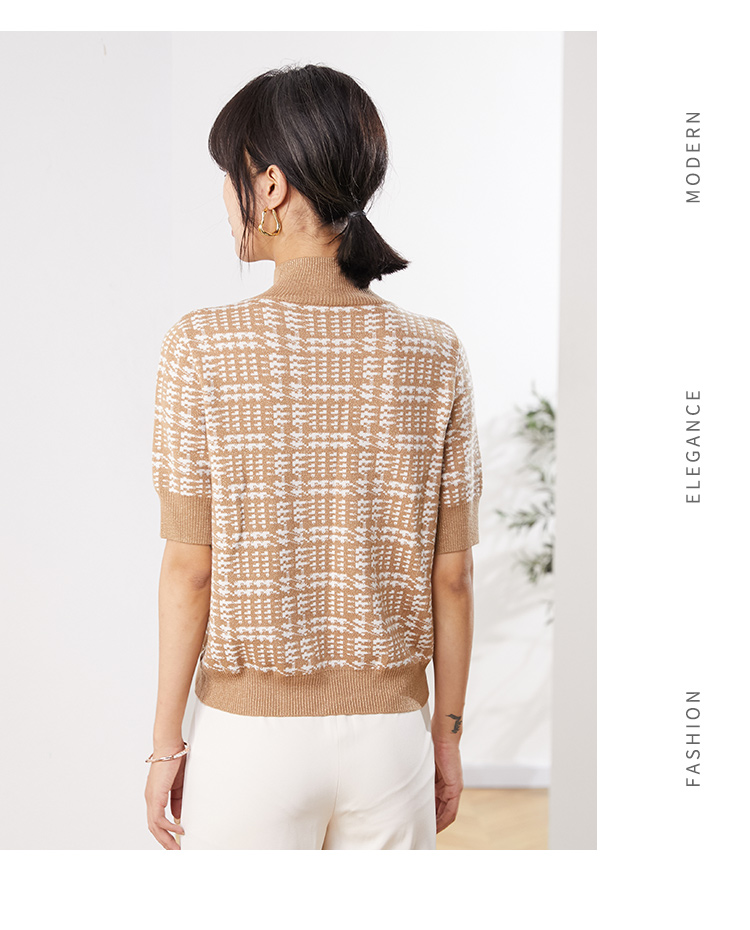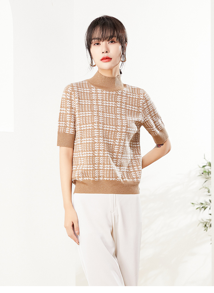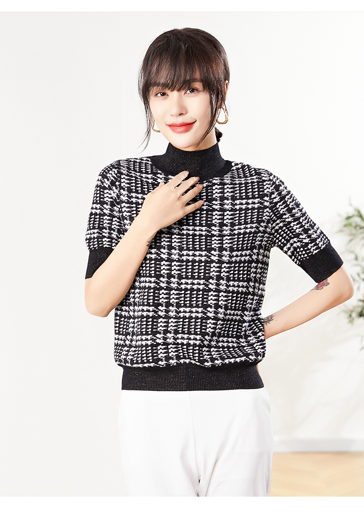 佐尔美夏季新款纯色简约气质五分袖针织毛衫E91ZM34